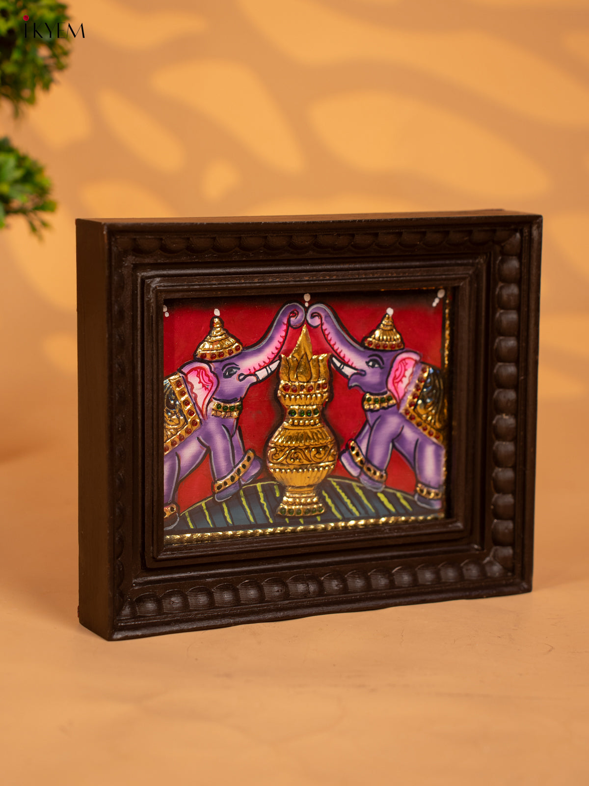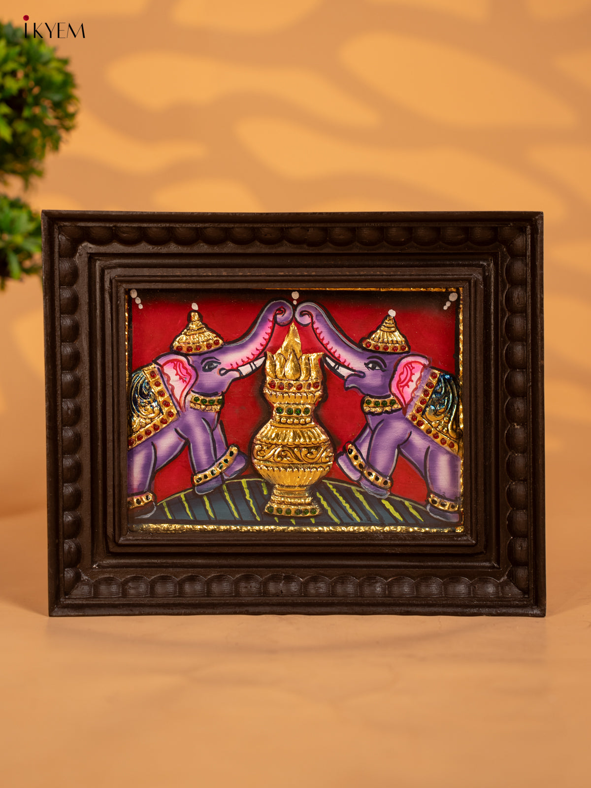 Elephant and kalasam - Tanjore Painting - (11 × 9) - KB17116