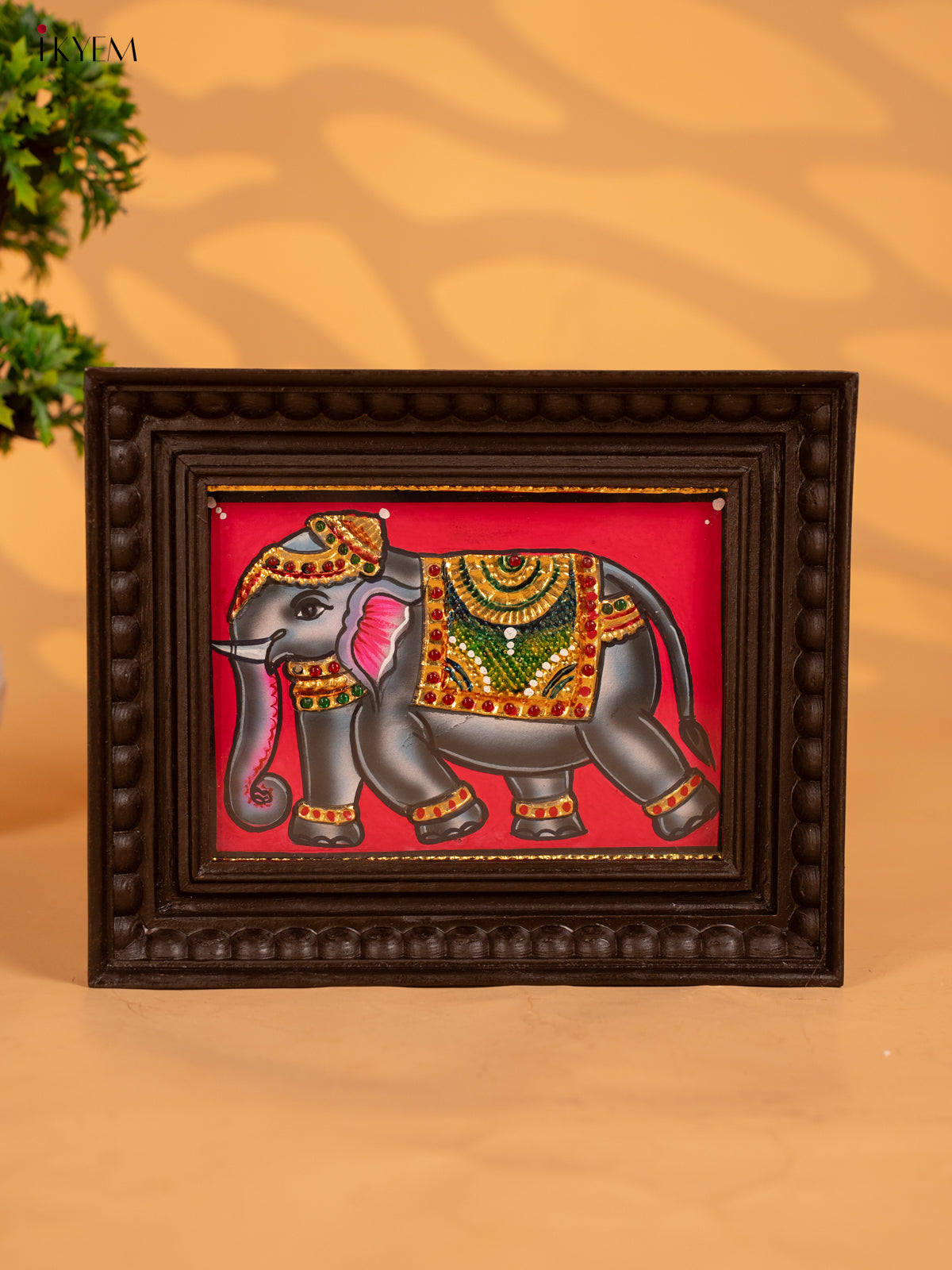 Grey Elephant- Tanjore Painting- (9x11) - KB17118