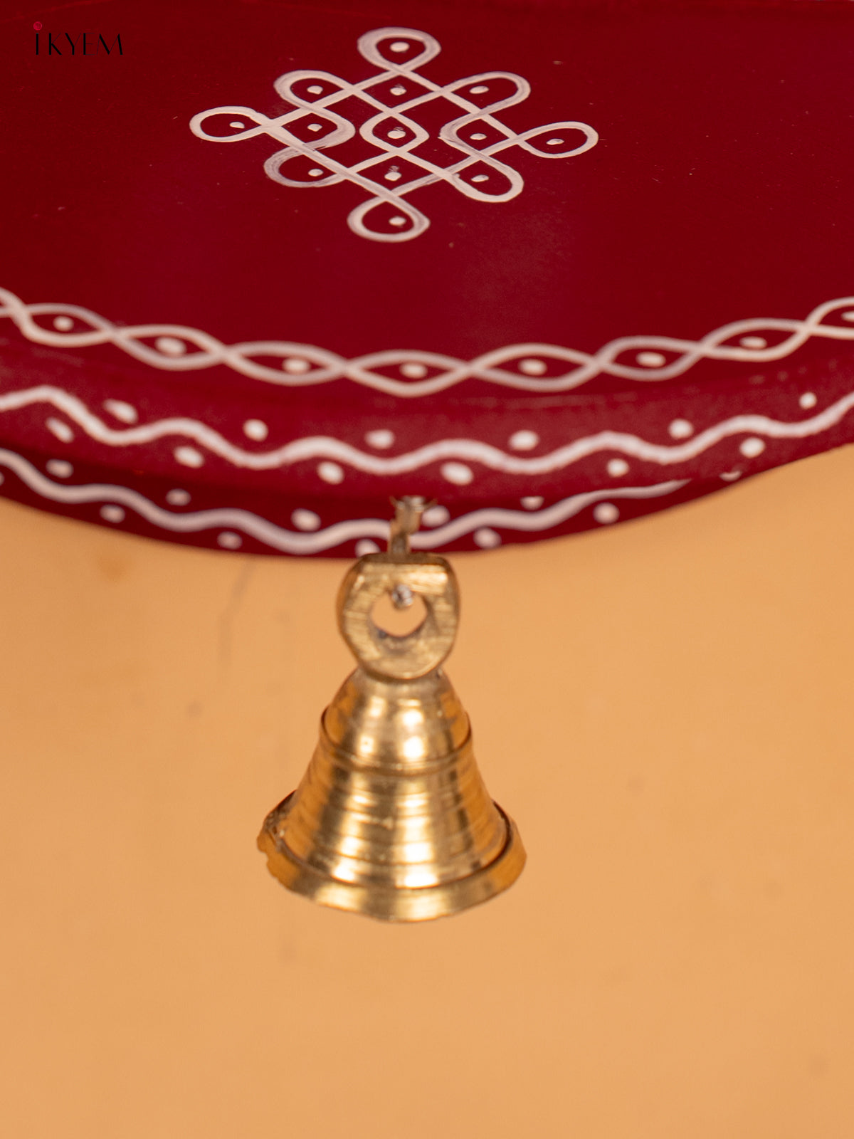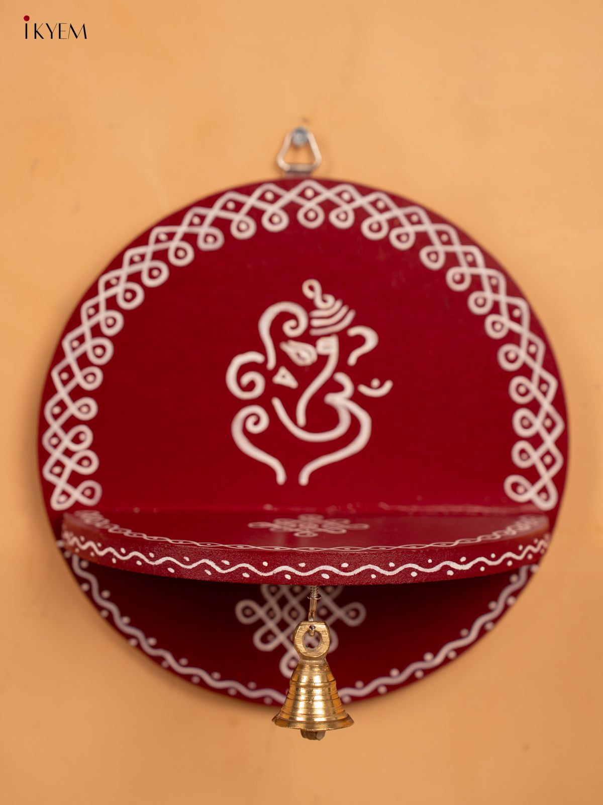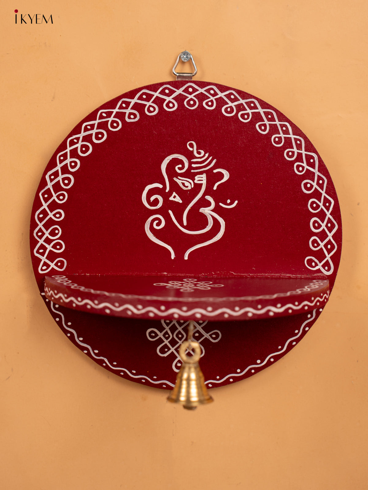 Hand Painted Round Wall Shelf with Brass Bell - Maroon - KB17158