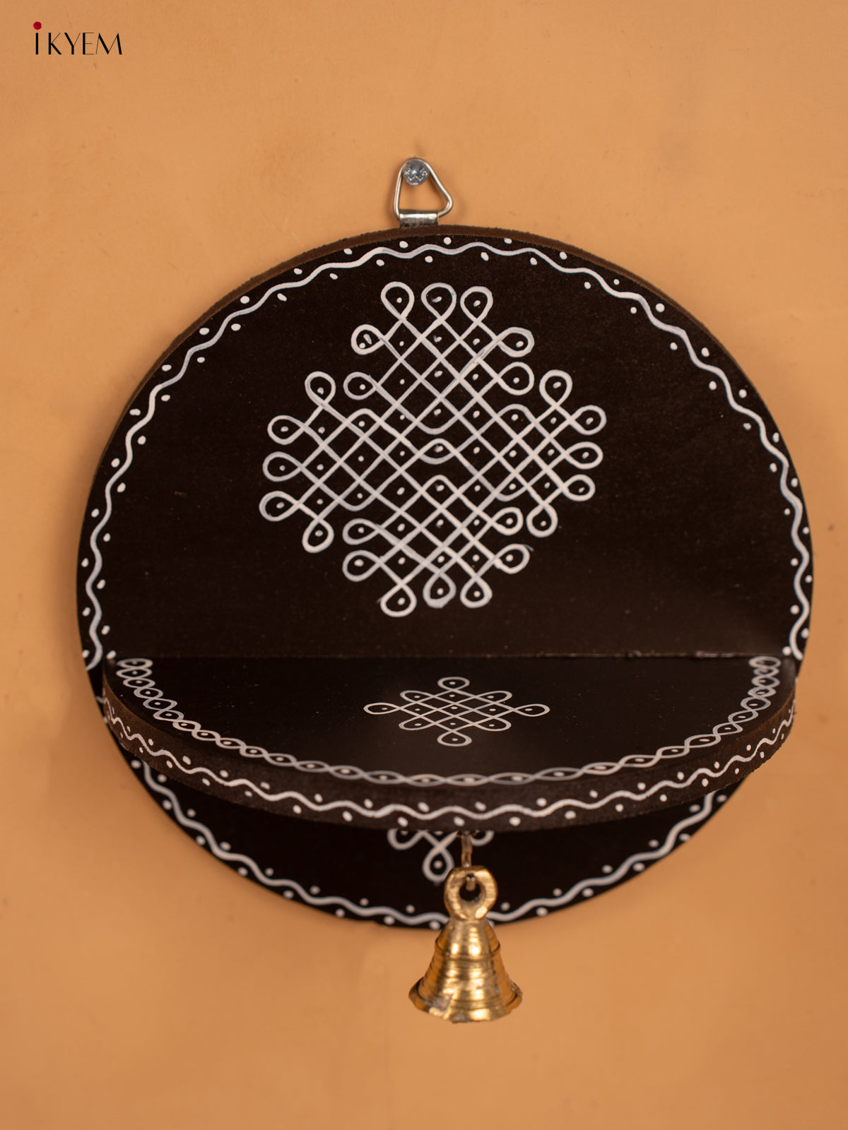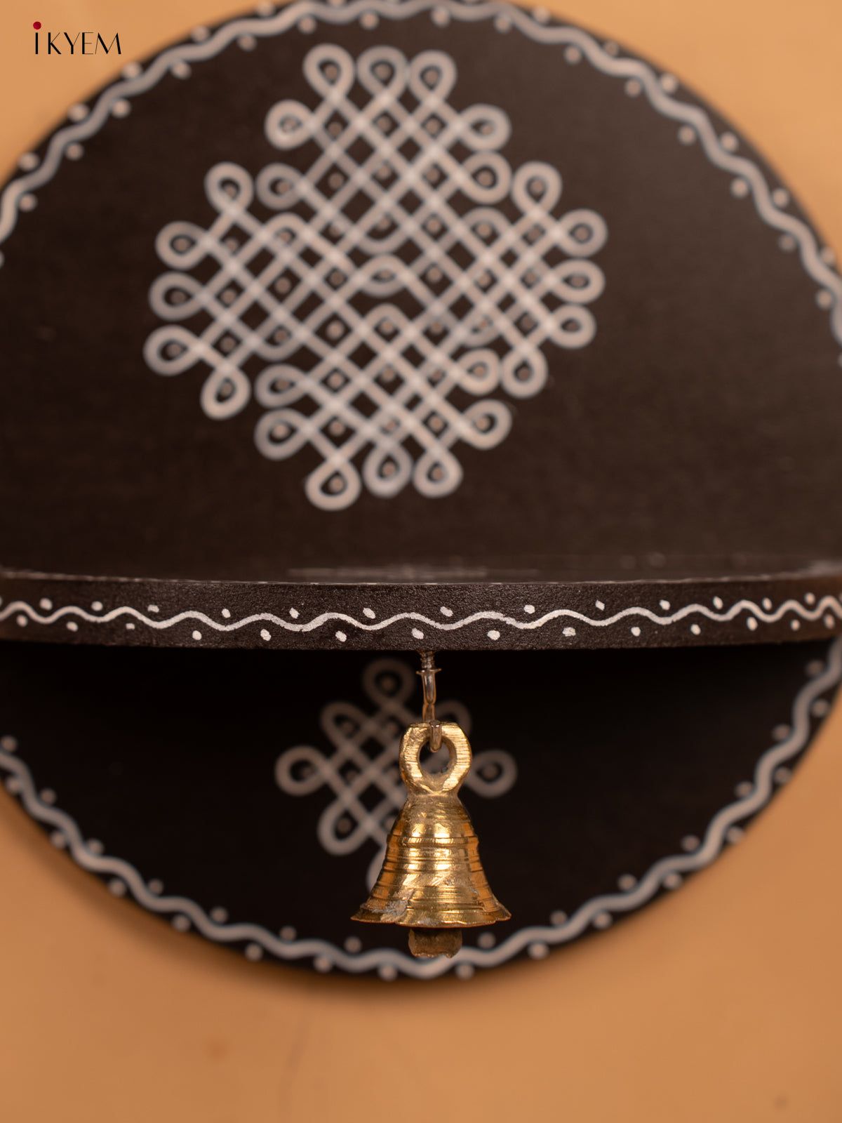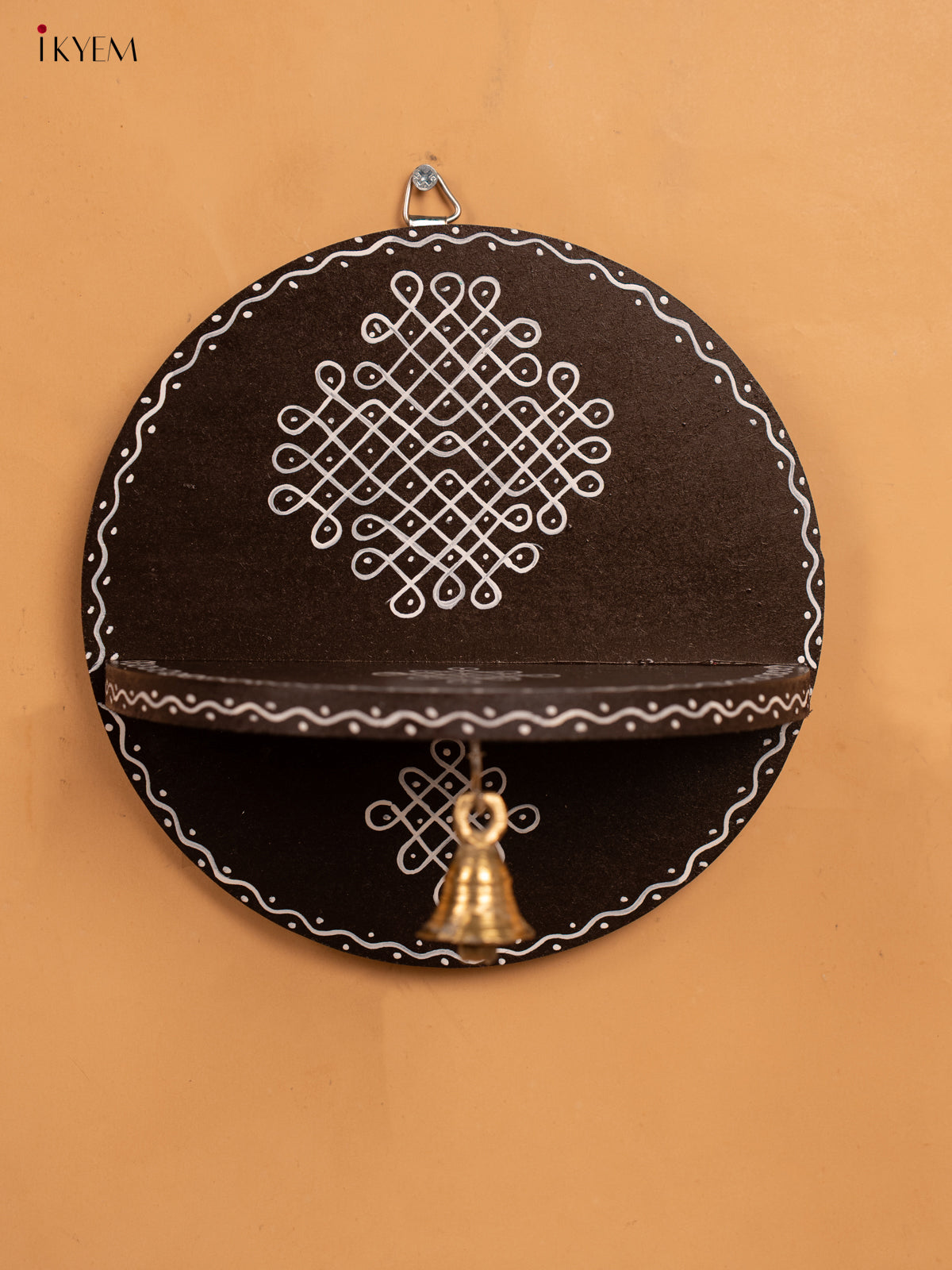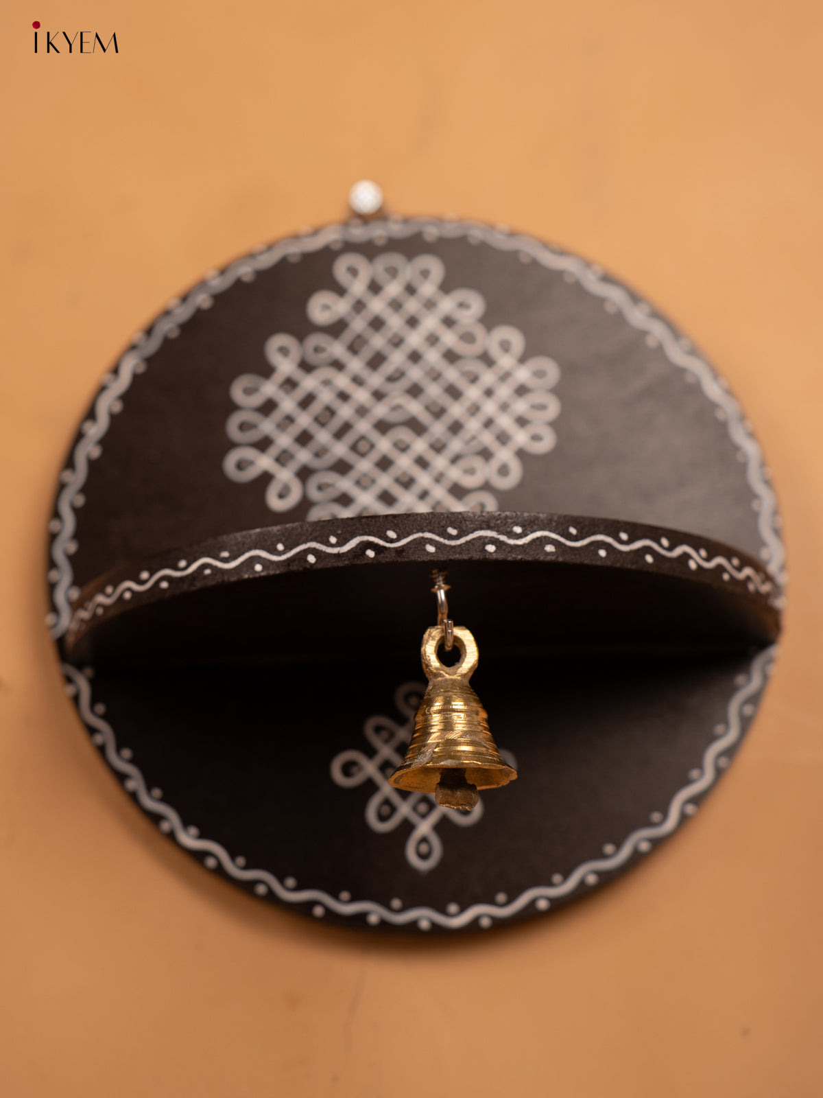 - This Hand Painted Round Wall Shelf with Brass Bell is a stunning addition to any home decor.