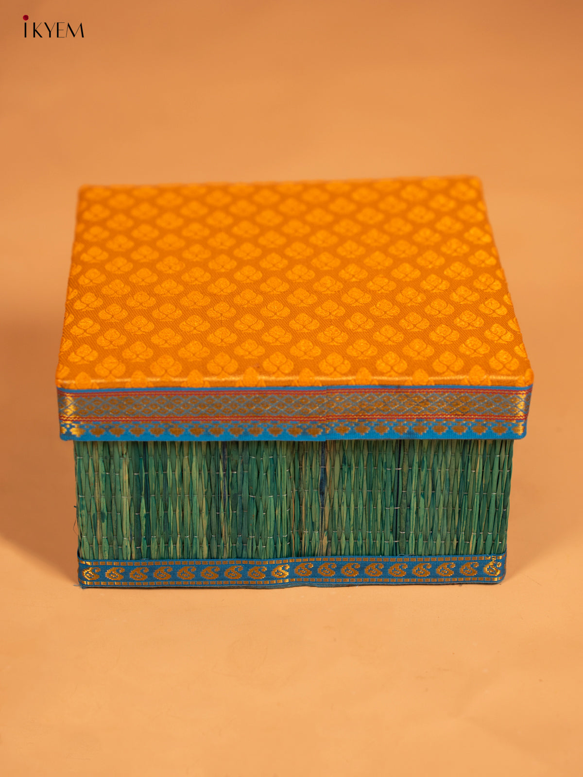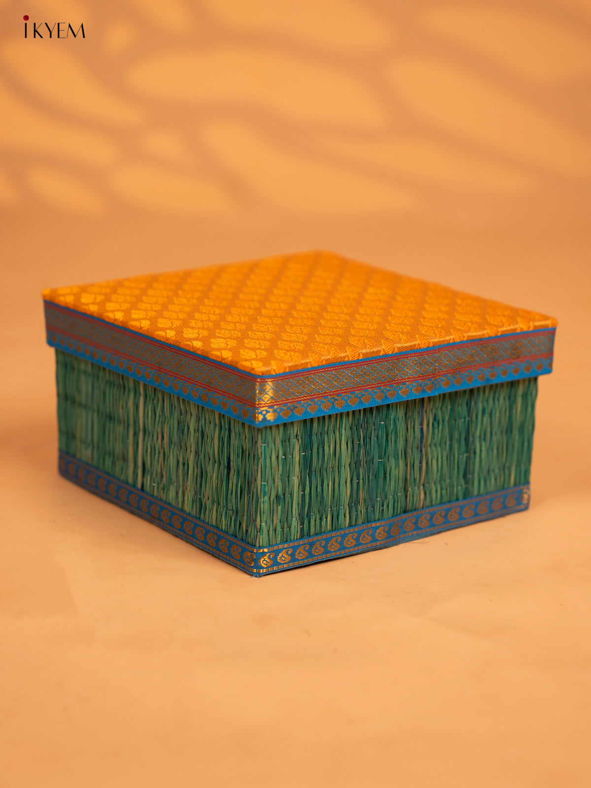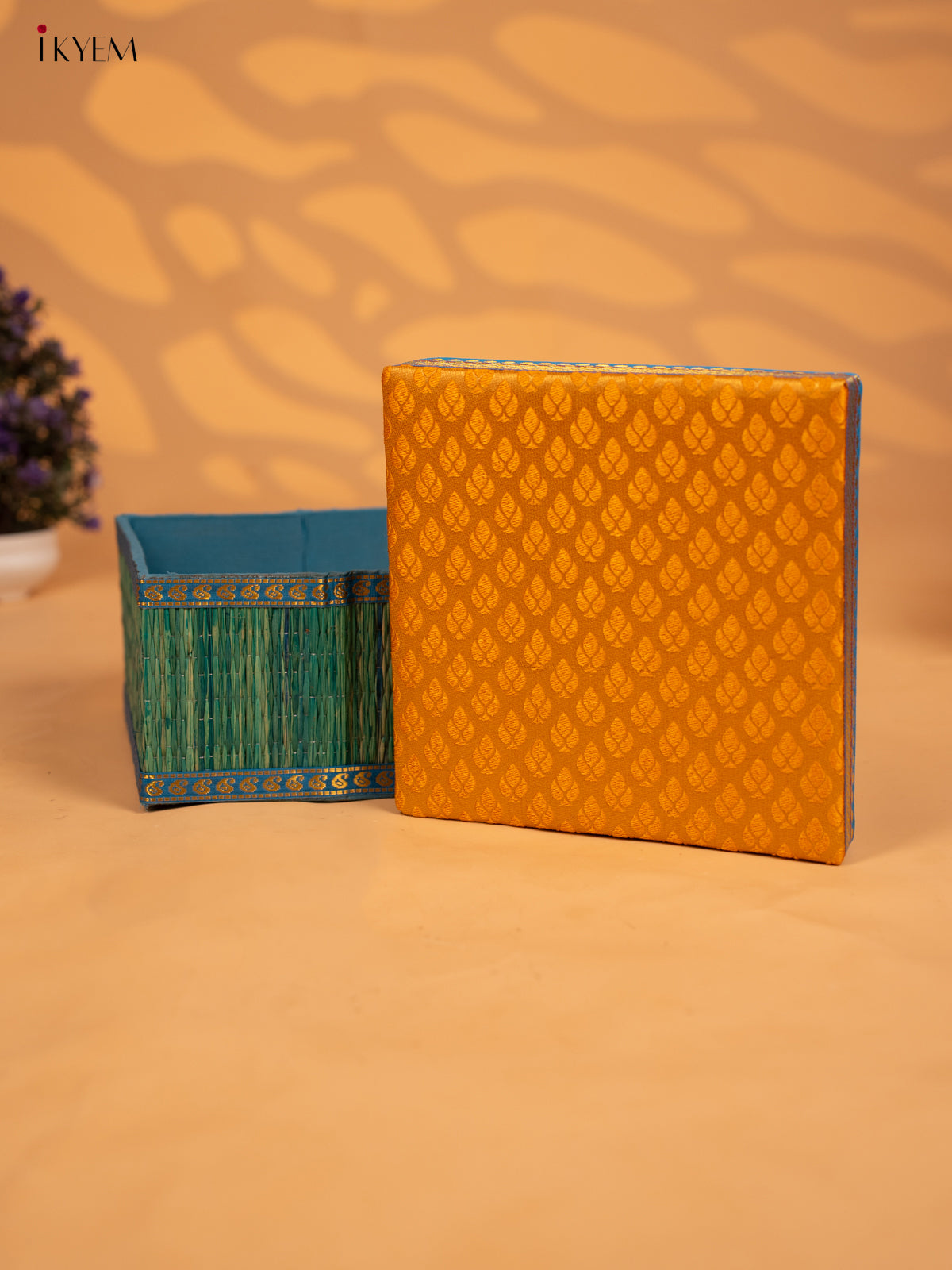 Decorative Foldable Korai Box with Raw Silk Top - (8×8) - Yellow - KB17162