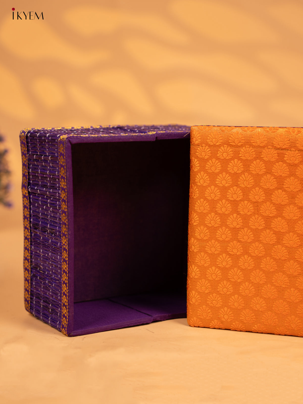 Decorative Foldable Korai Box with Raw Silk Top (8×8)- Orange - KB17166