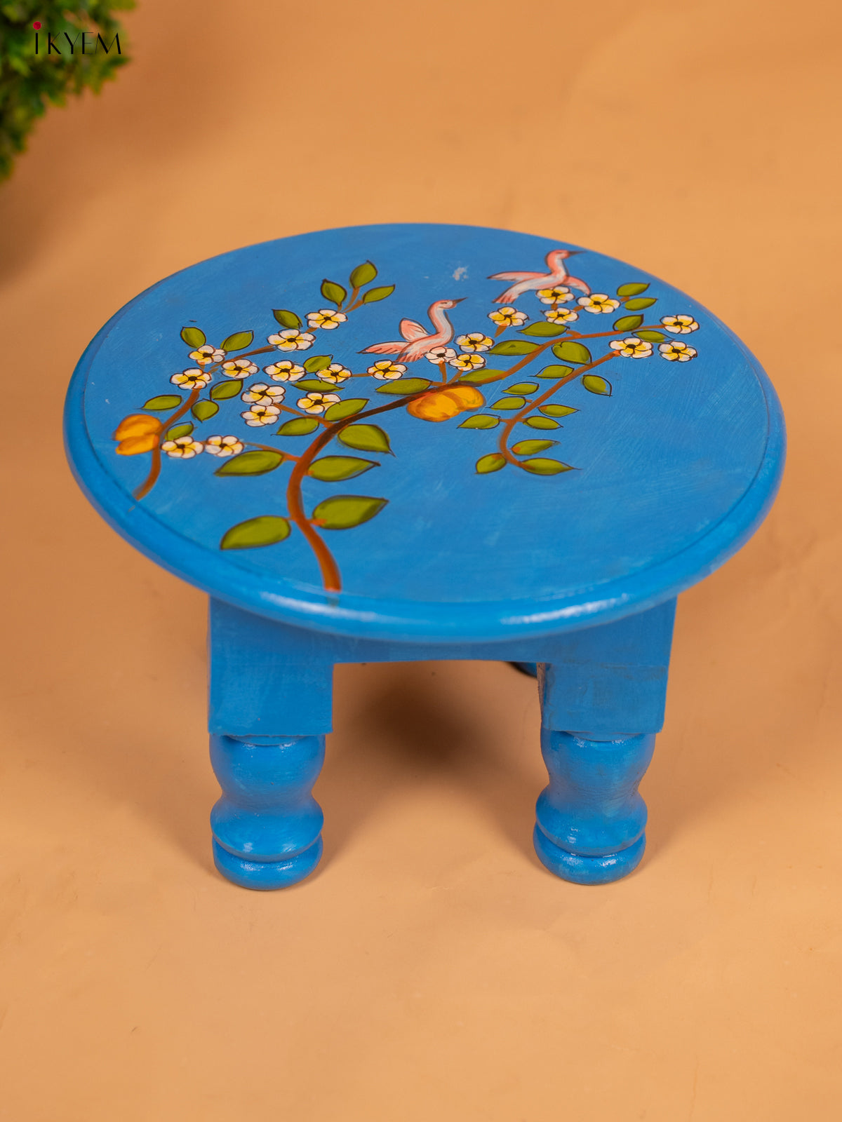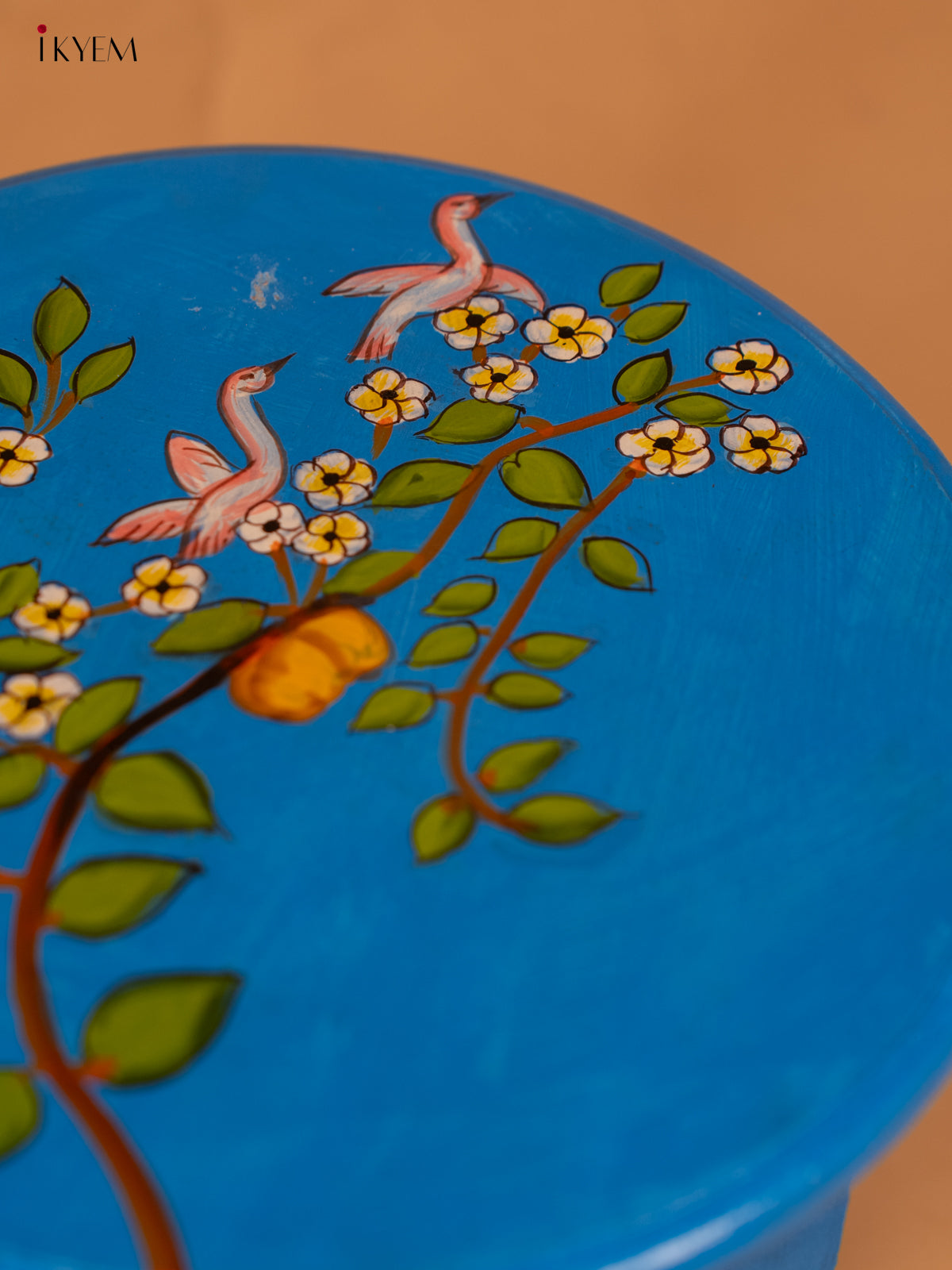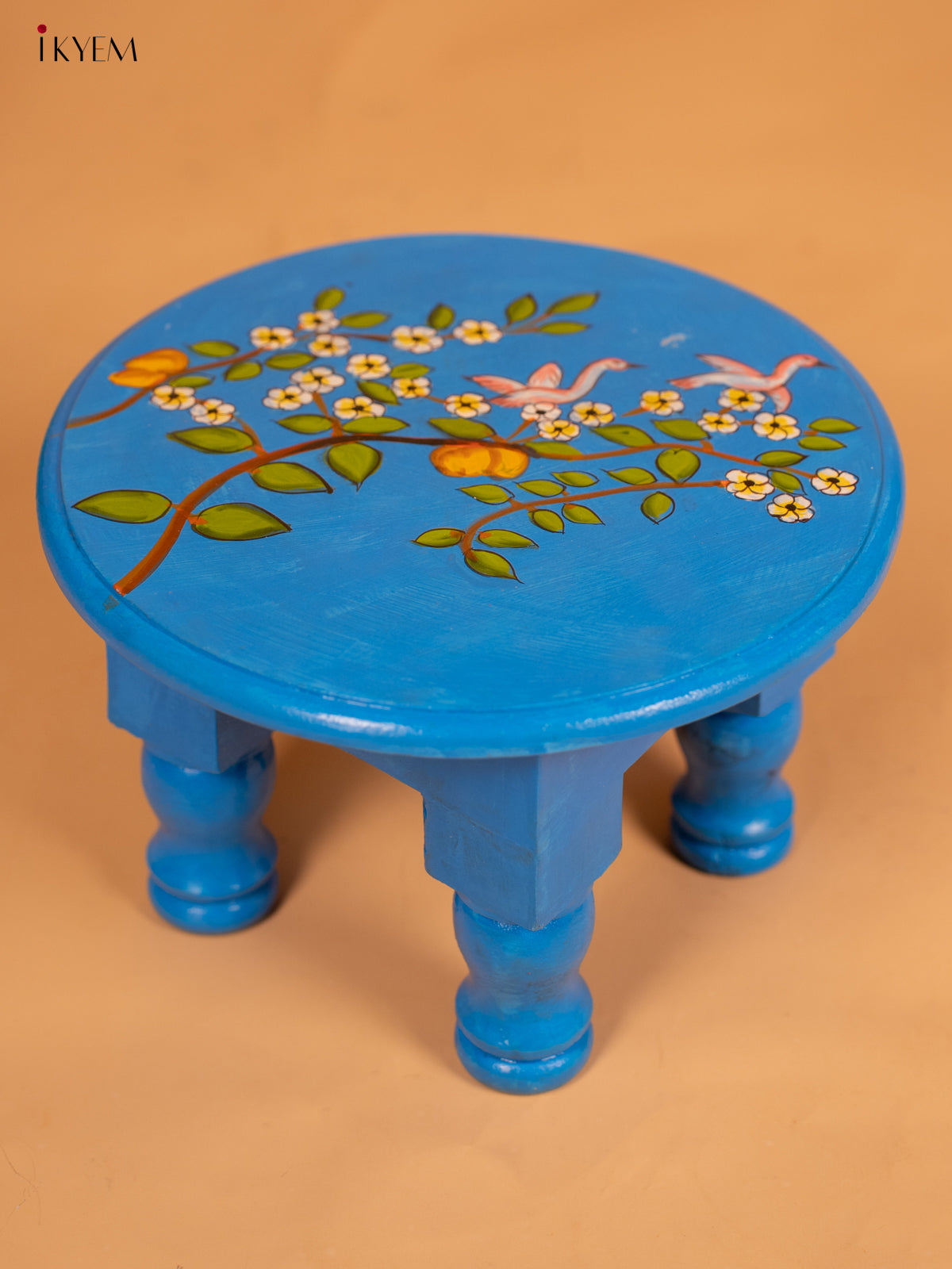 Hand Painted Wooden Round Stool (10inch) - Floral - KB17179