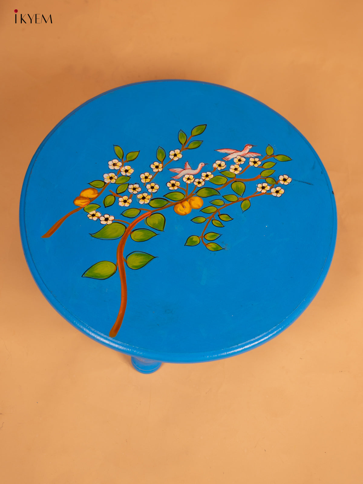 Hand Painted Wooden Round Stool (15inch) - Floral - KB17180