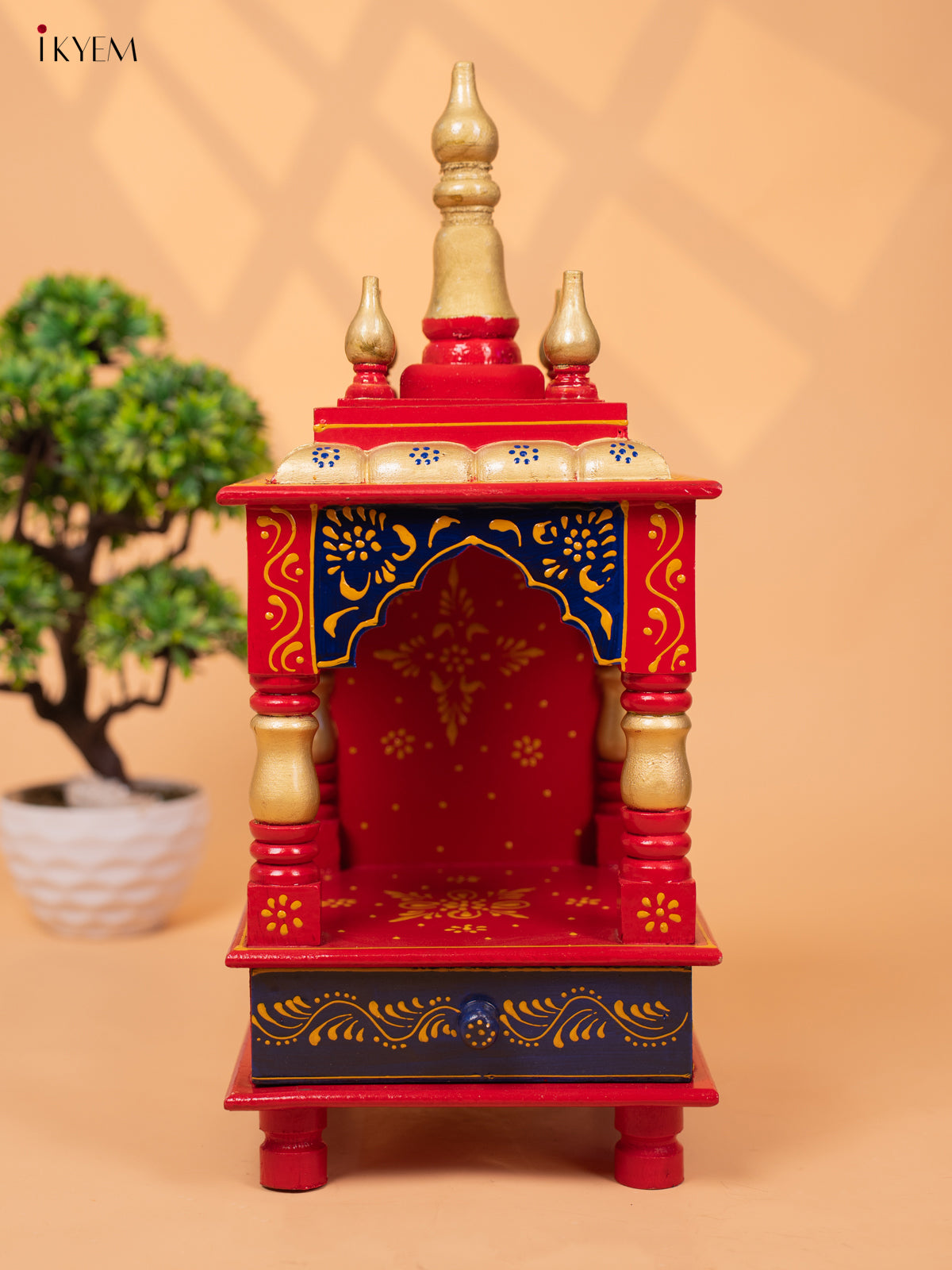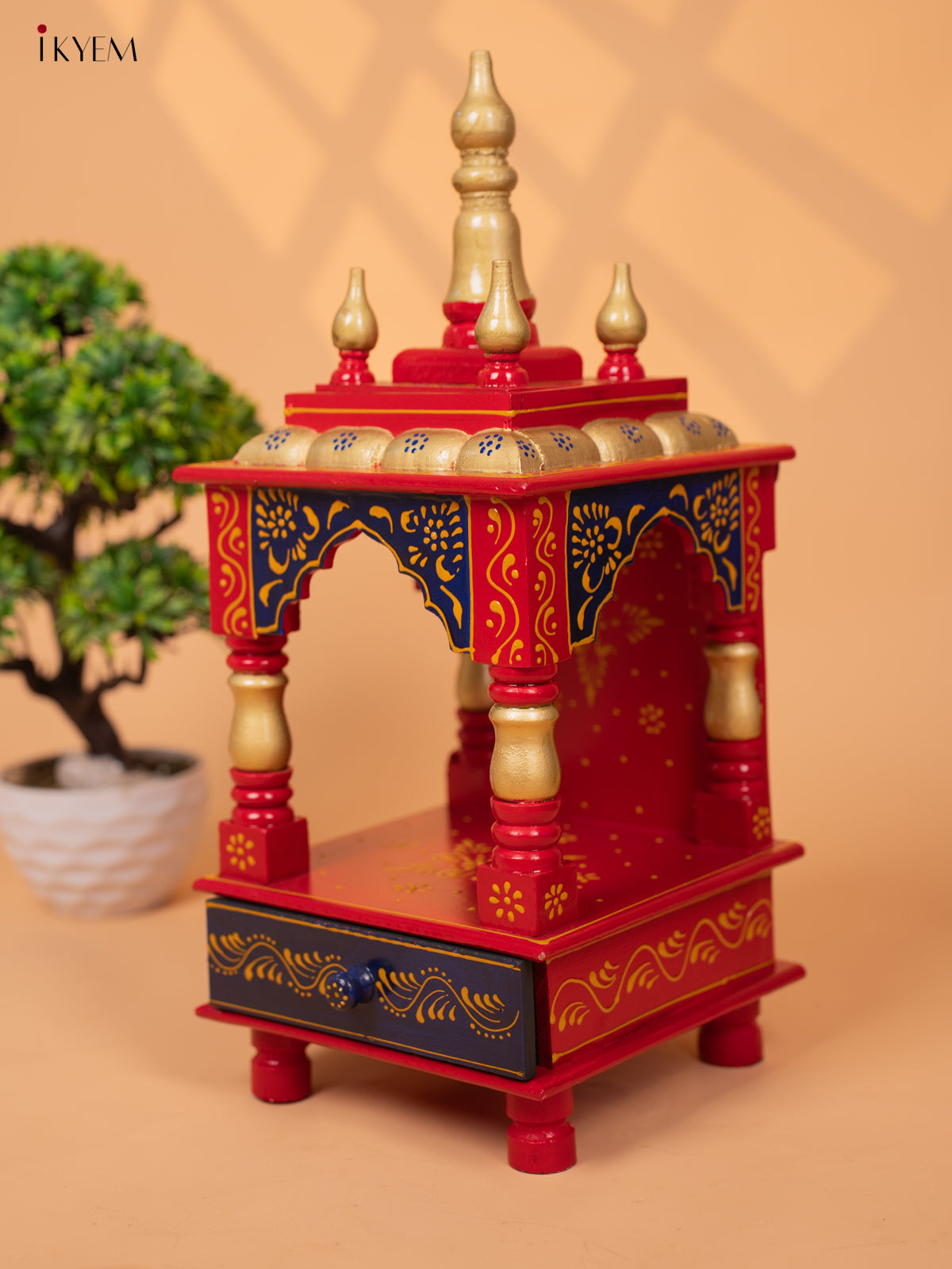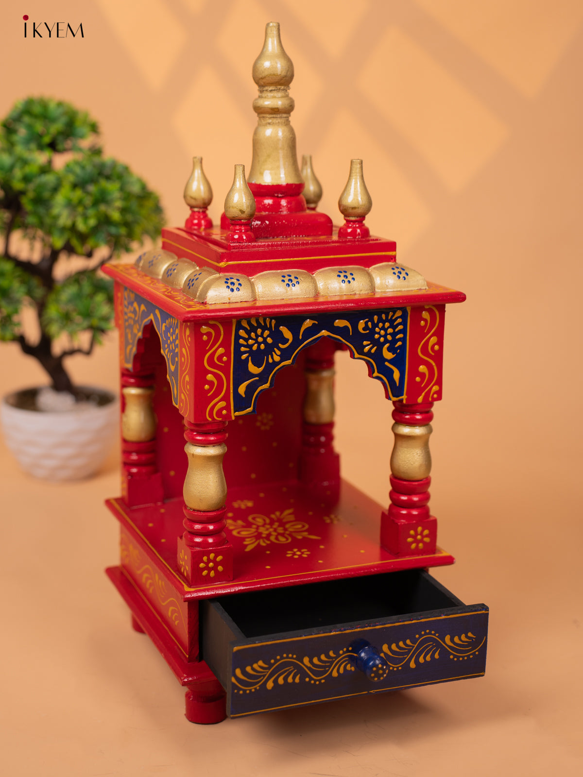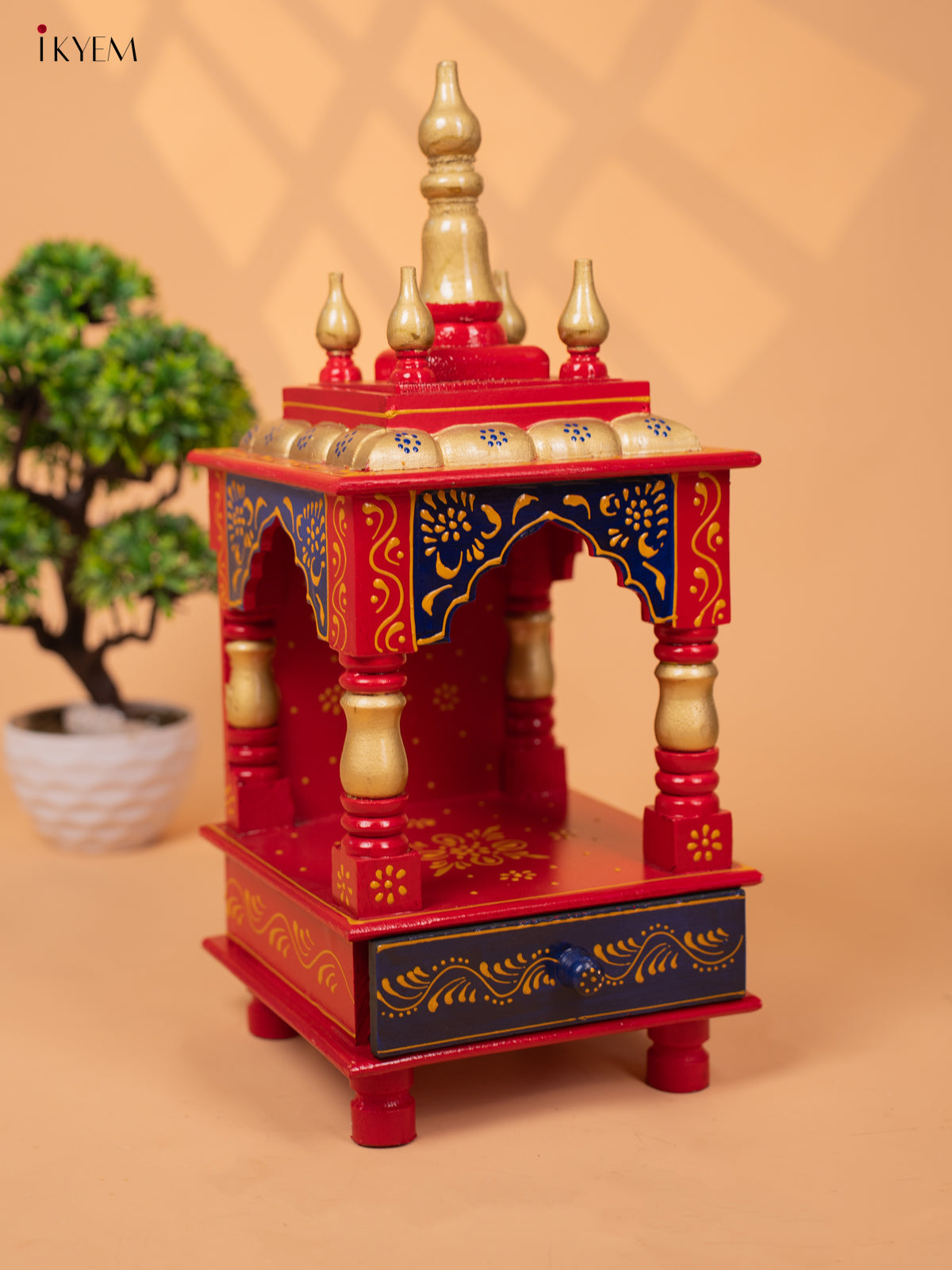 - This Hand Painted Wooden Pooja Mandir with Drawer is the perfect addition to your home temple, adding a touch of style and elegance.