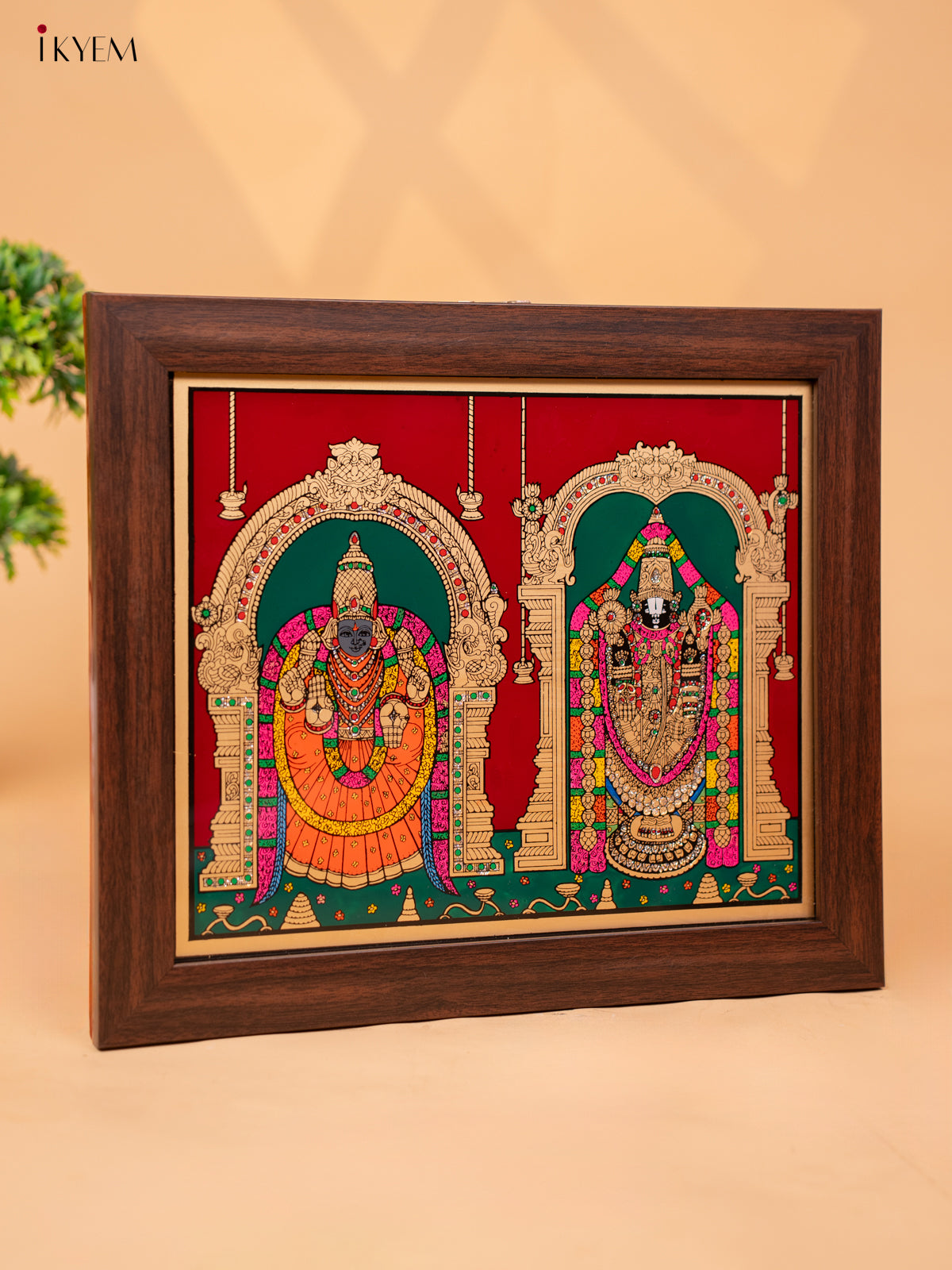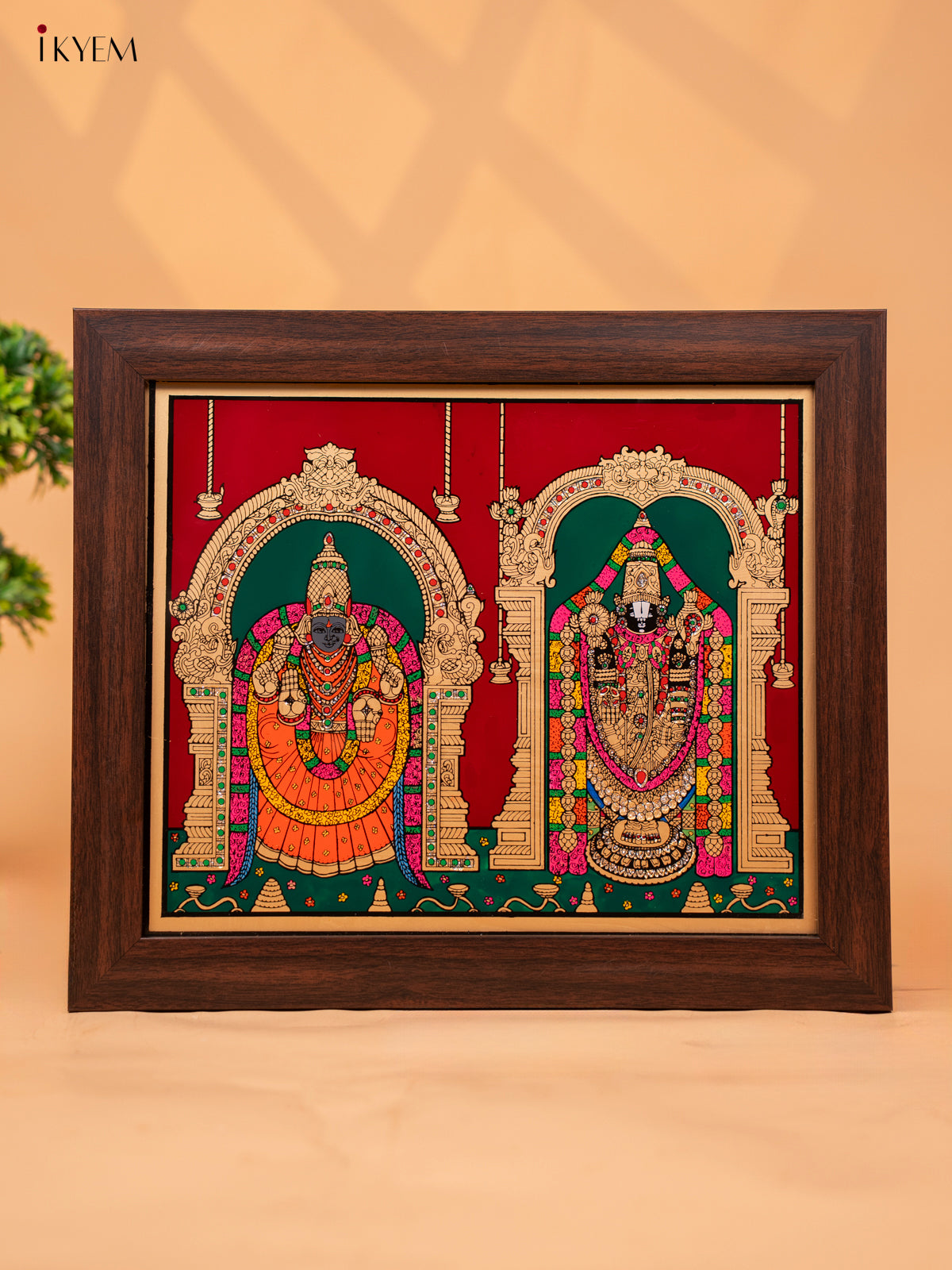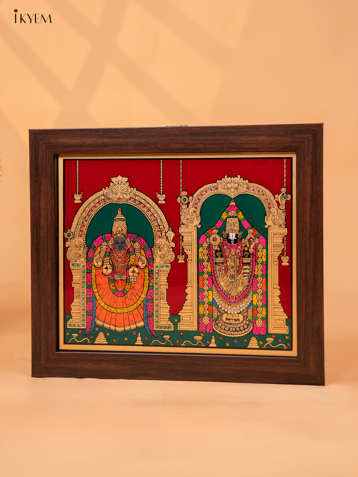 - This Reverse Glass Painted Photo Frame Balaji Padmavathi wall hanging is perfect for adding a touch of tradition and elegance to any space.