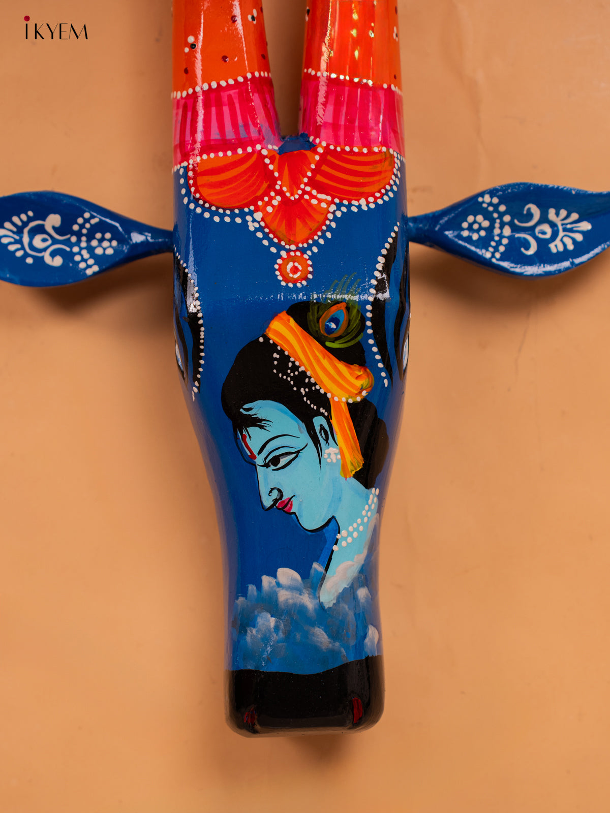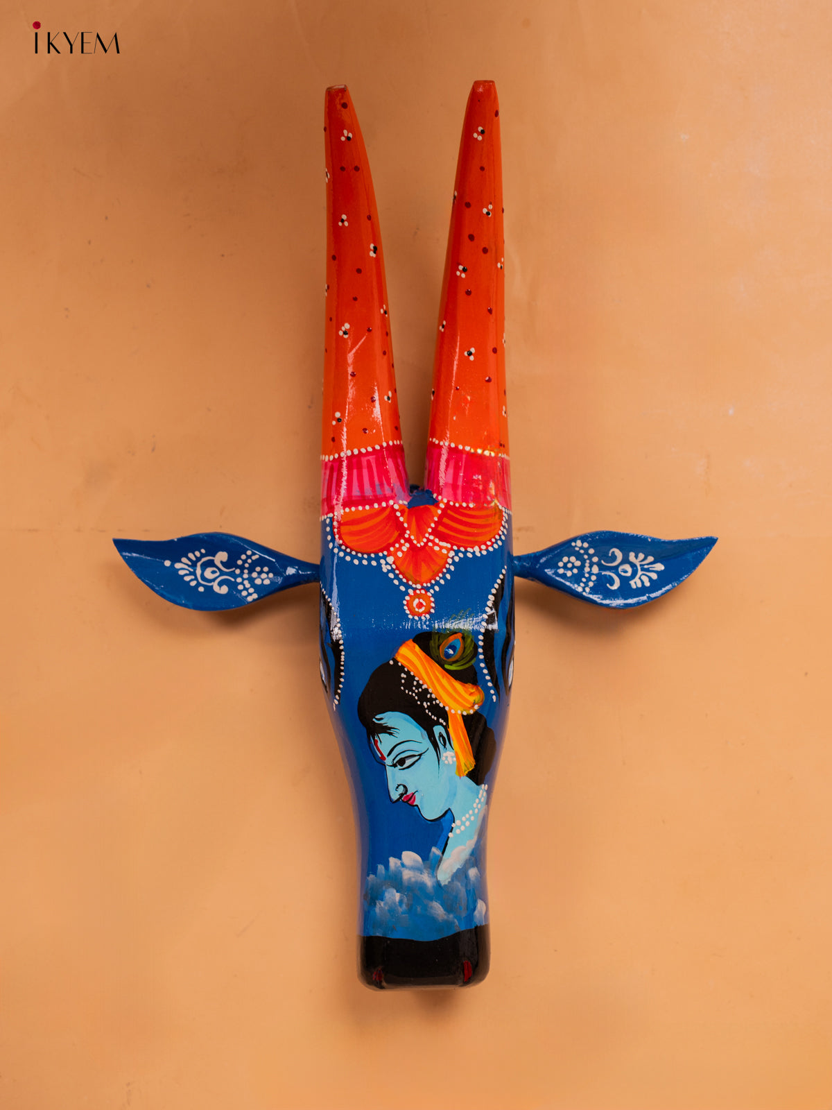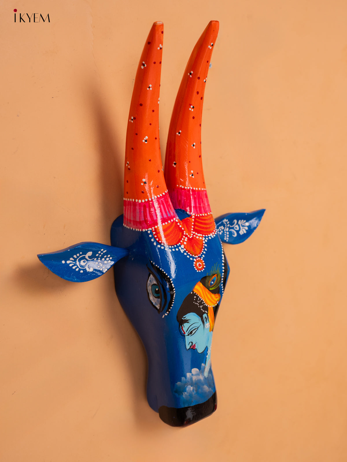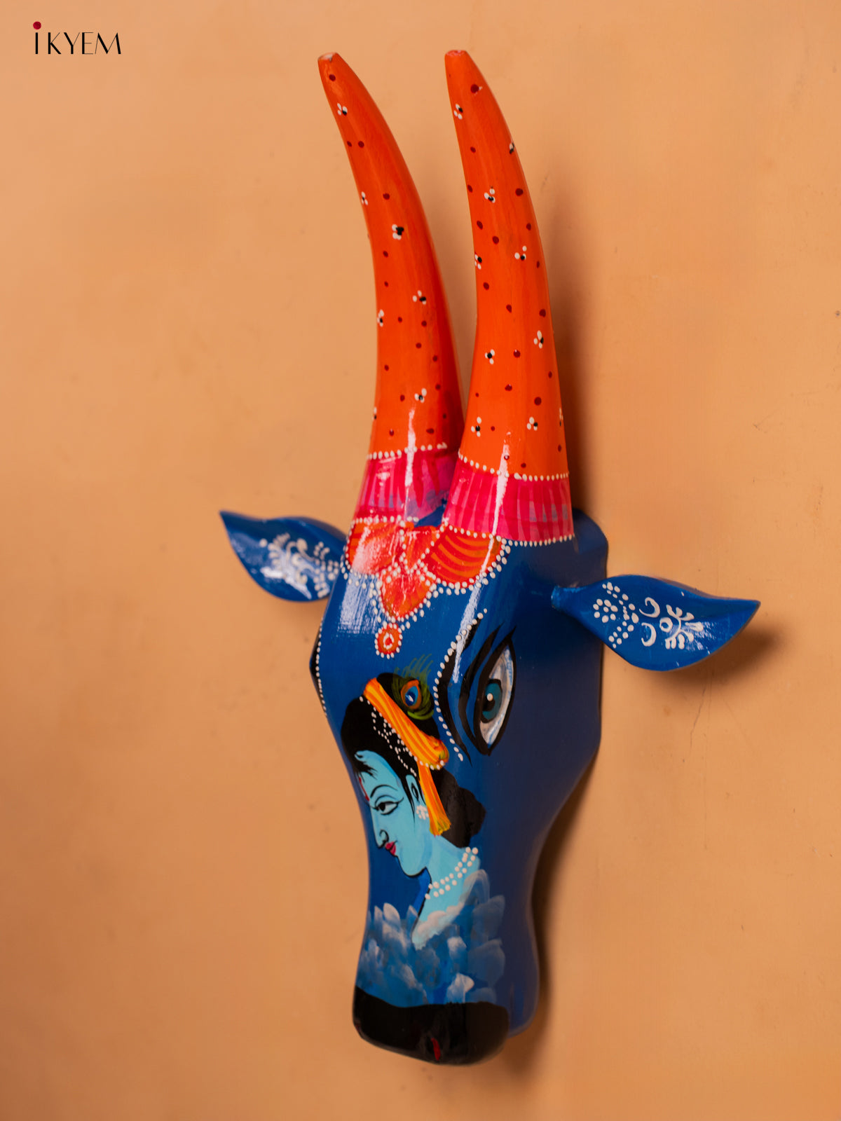 - This Hand Painted Cow Head featuring Krishna is a unique and traditional wall hanging.