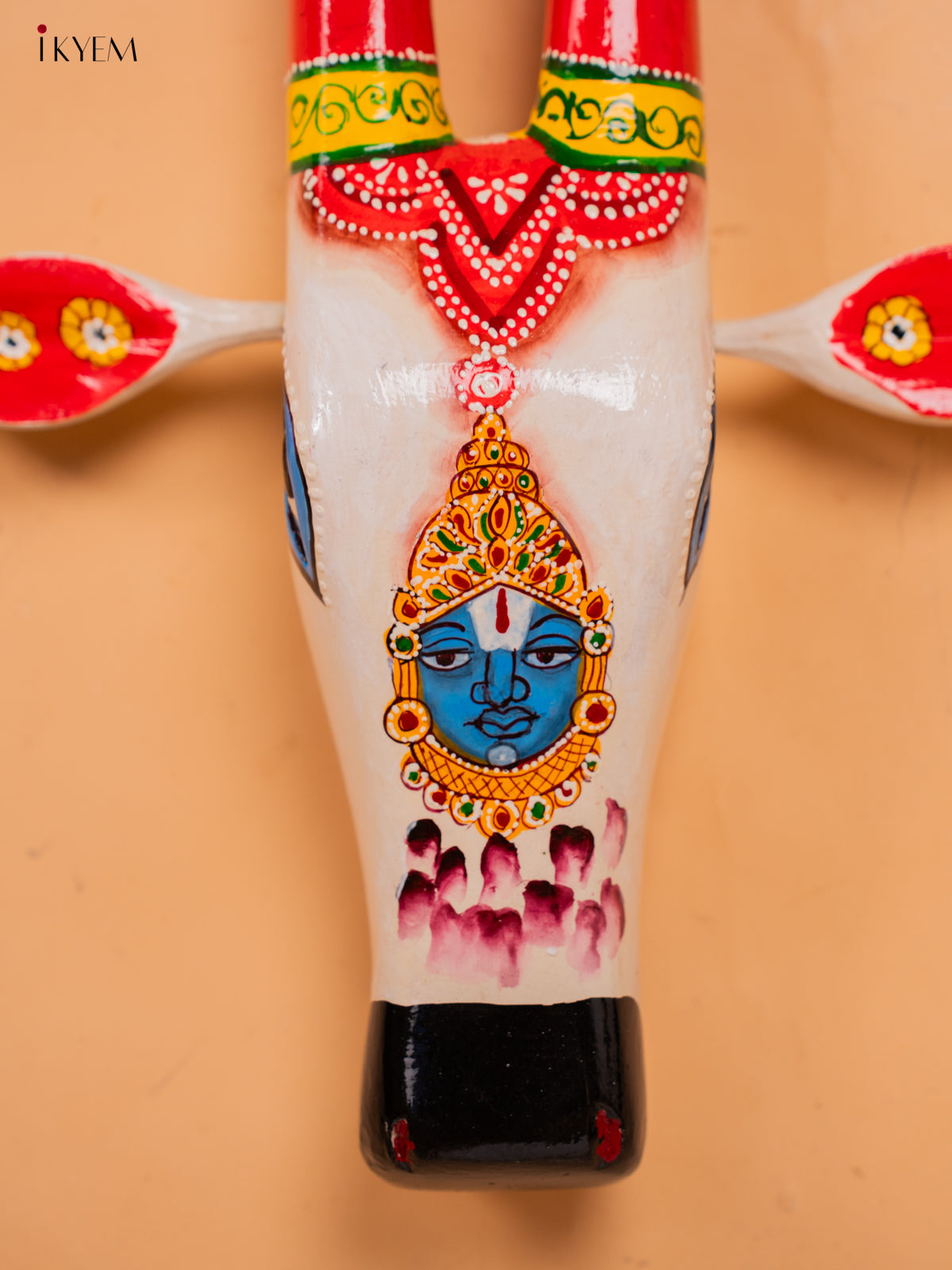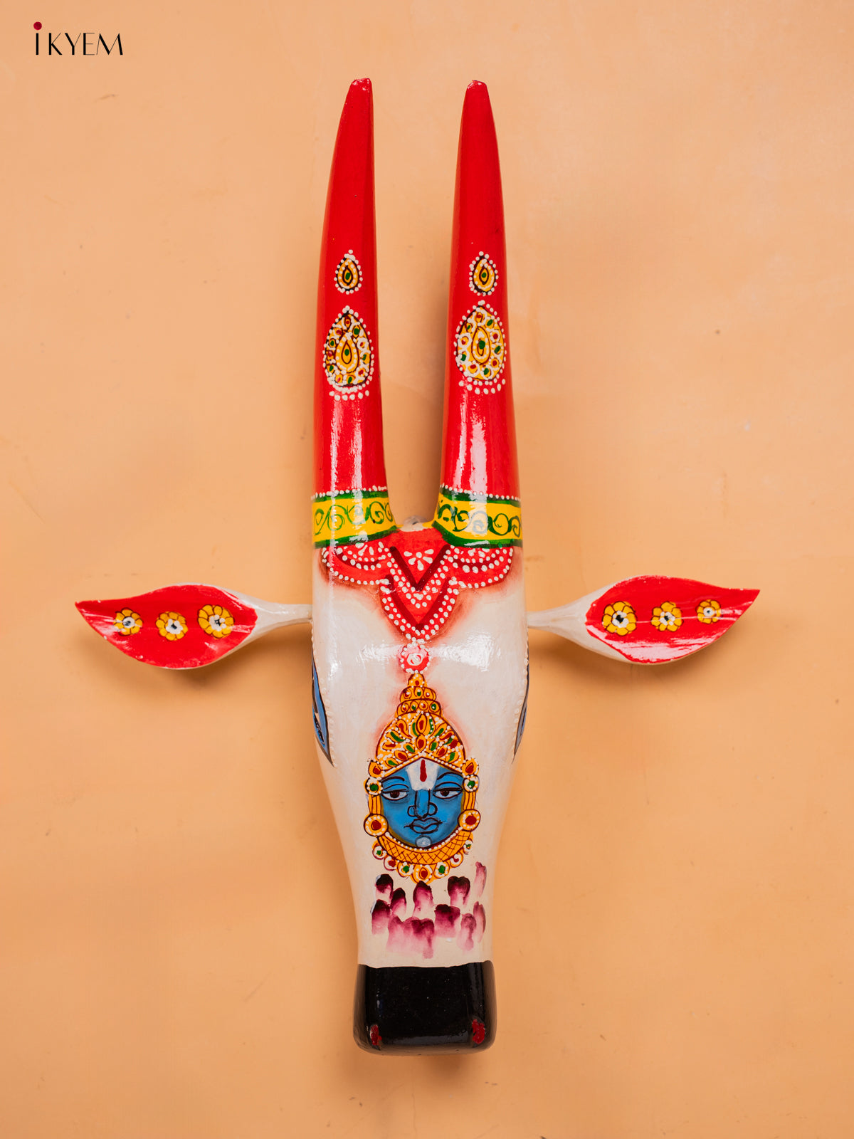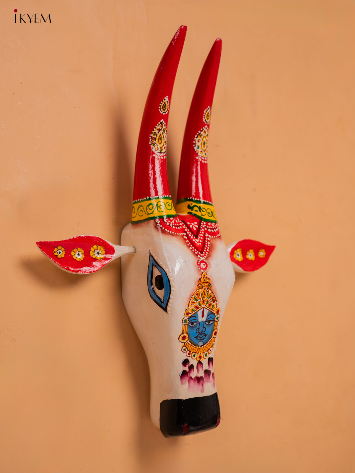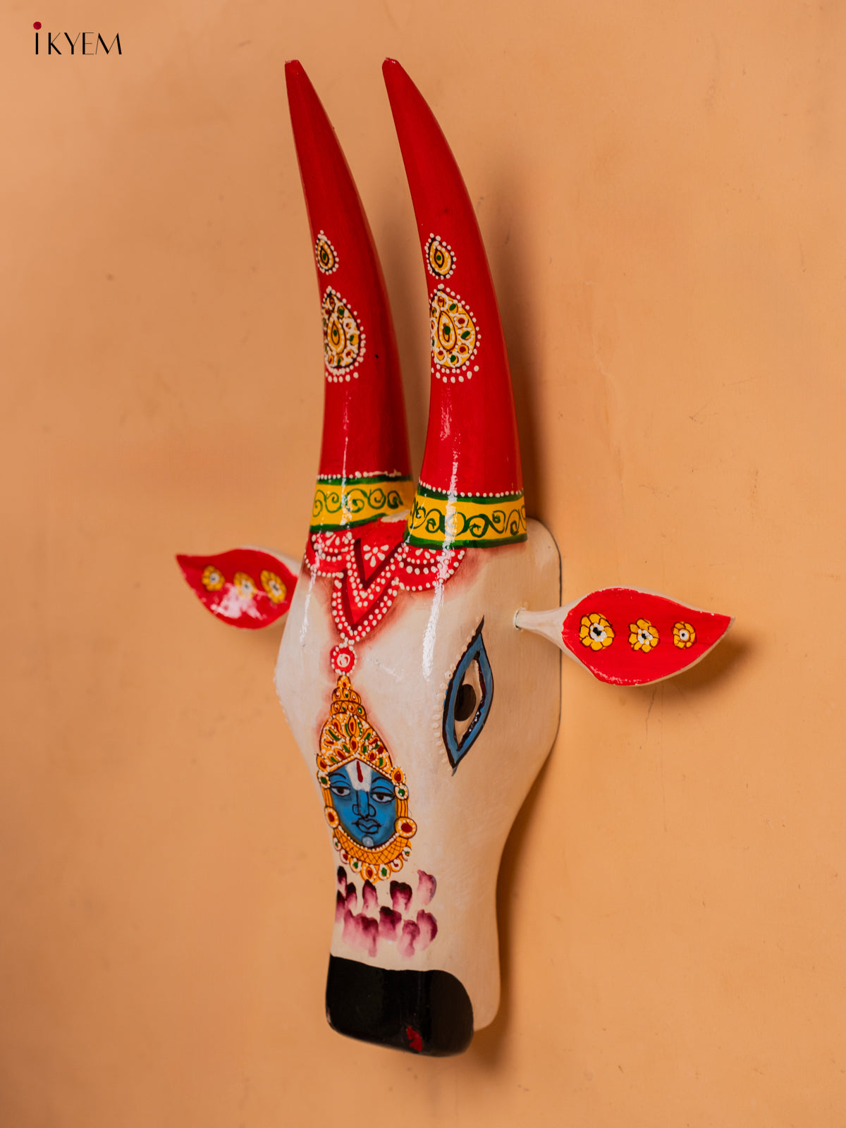 - This Hand Painted Cow Head featuring Lord Balaji is a unique and traditional wall hanging.