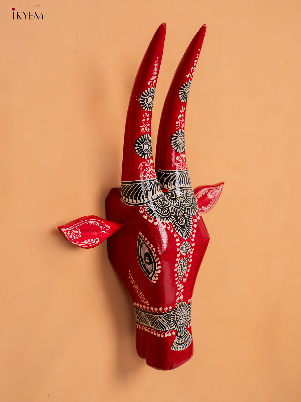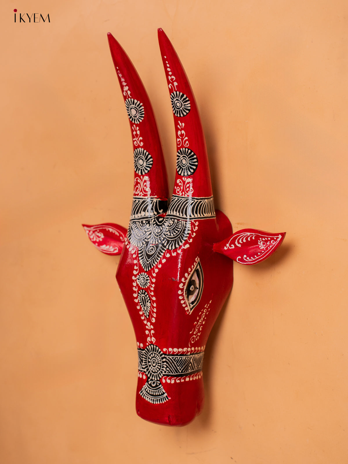 - Add a unique touch to your home decor with our Hand Painted Cow Head in Red.