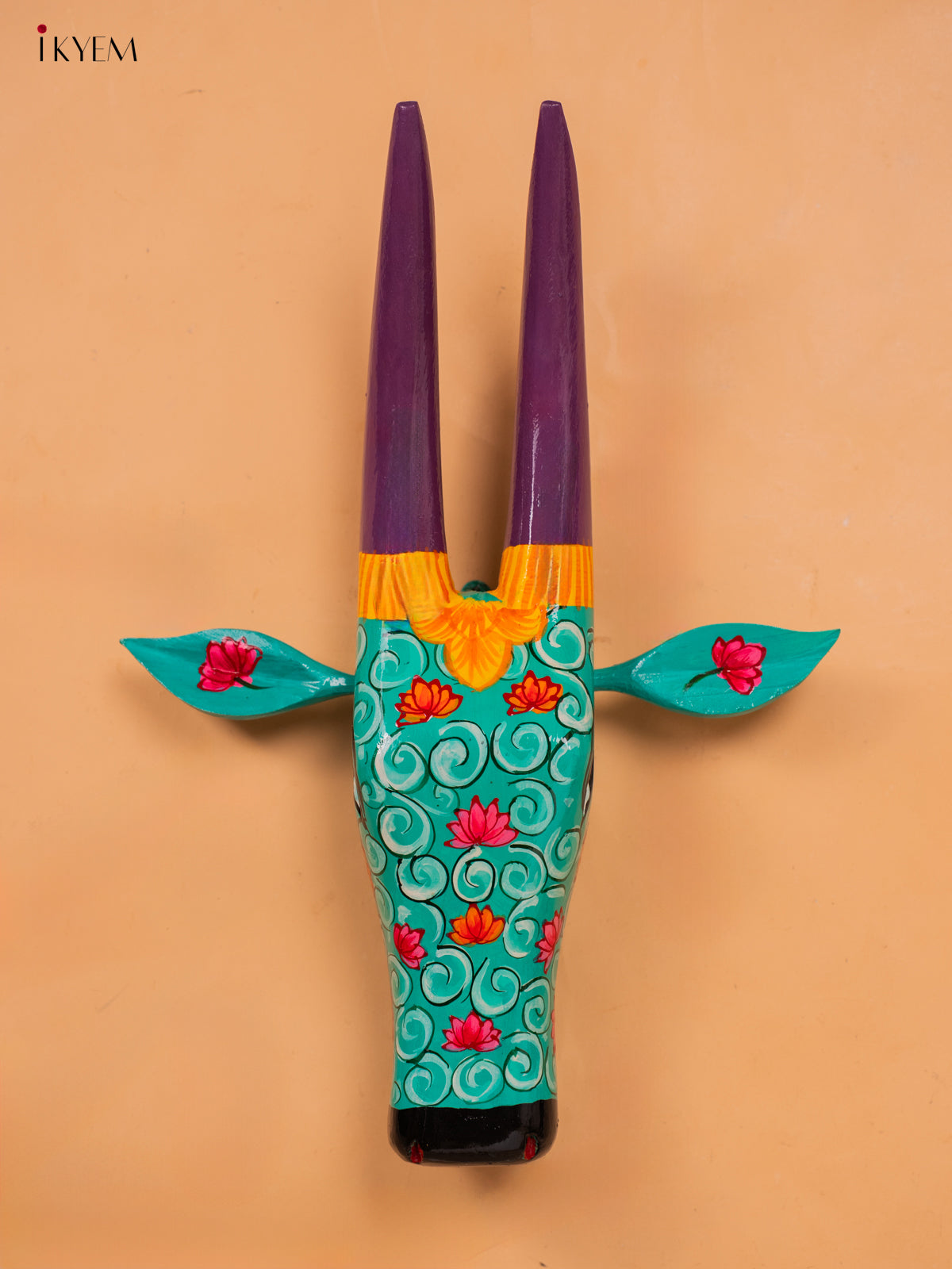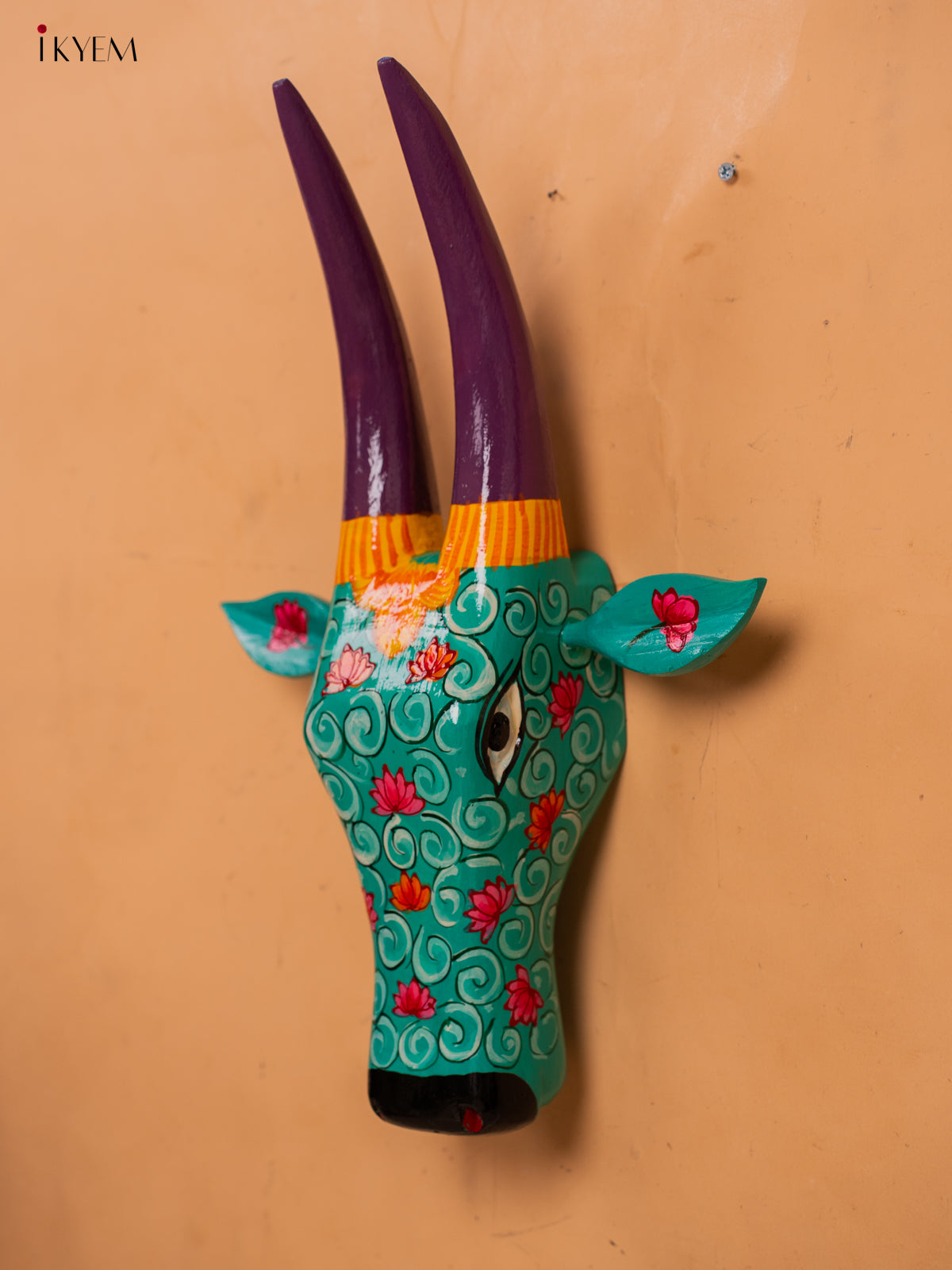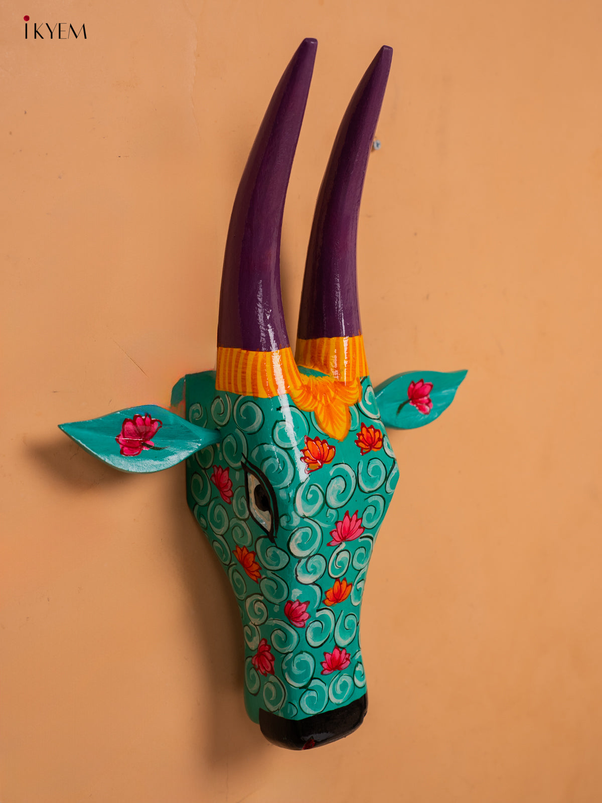 - Add a unique touch to your home decor with our Hand Painted Cow Head in Green.