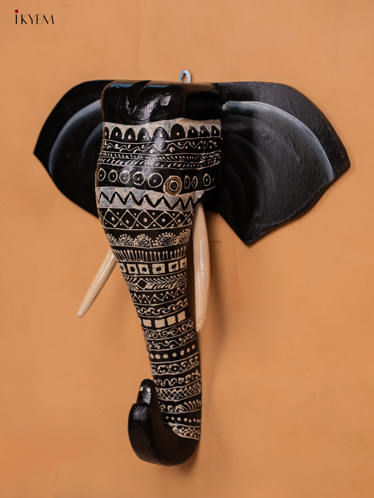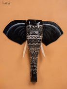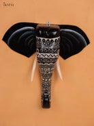 Wooden Hand Painted Elephant Head with Trunk black with white- 15 Inch -KC13120