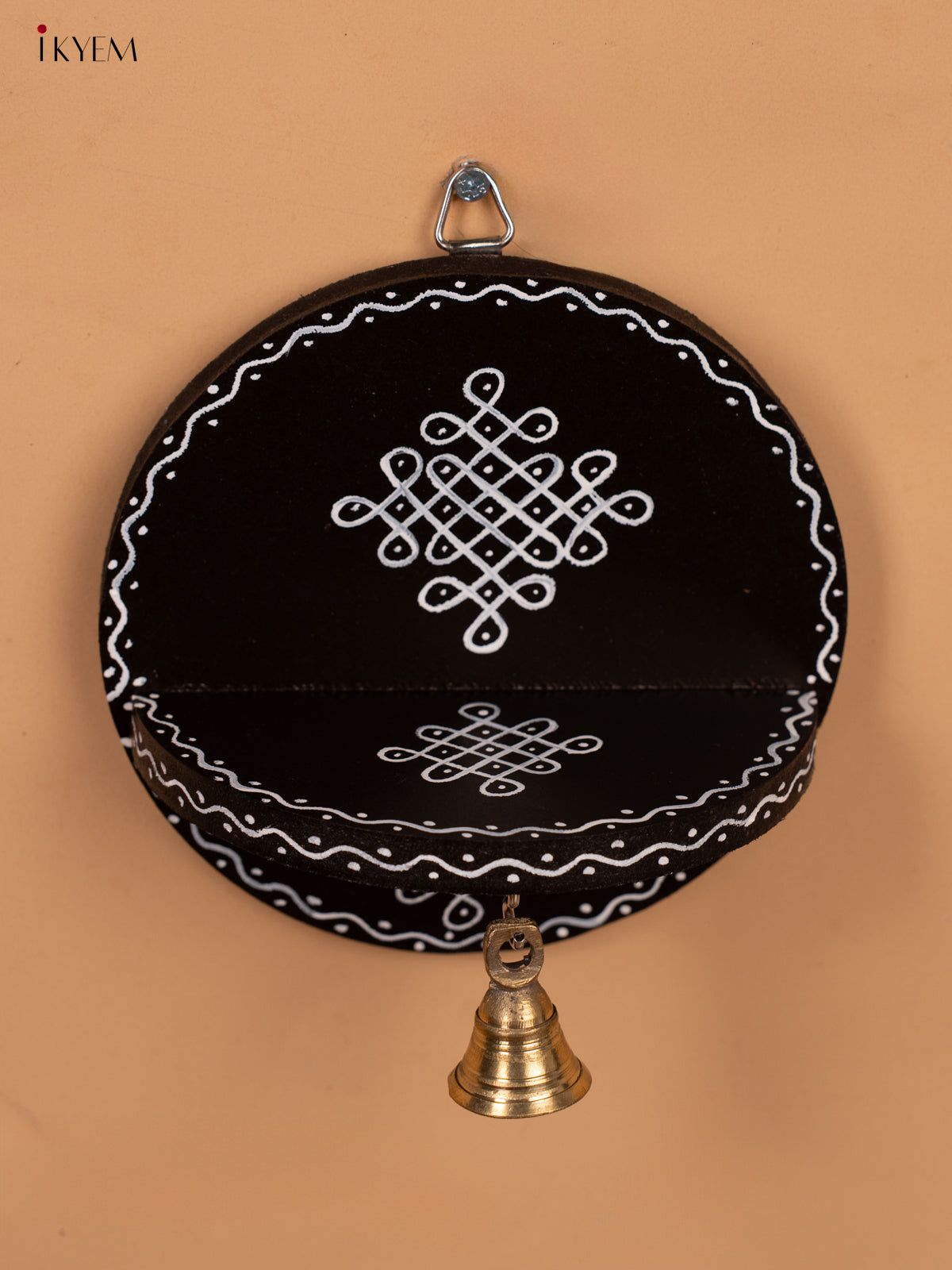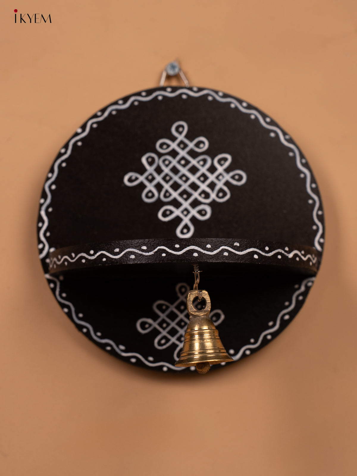 Hand Painted Round Wall Shelf with Brass Bell - Brown -KC20111