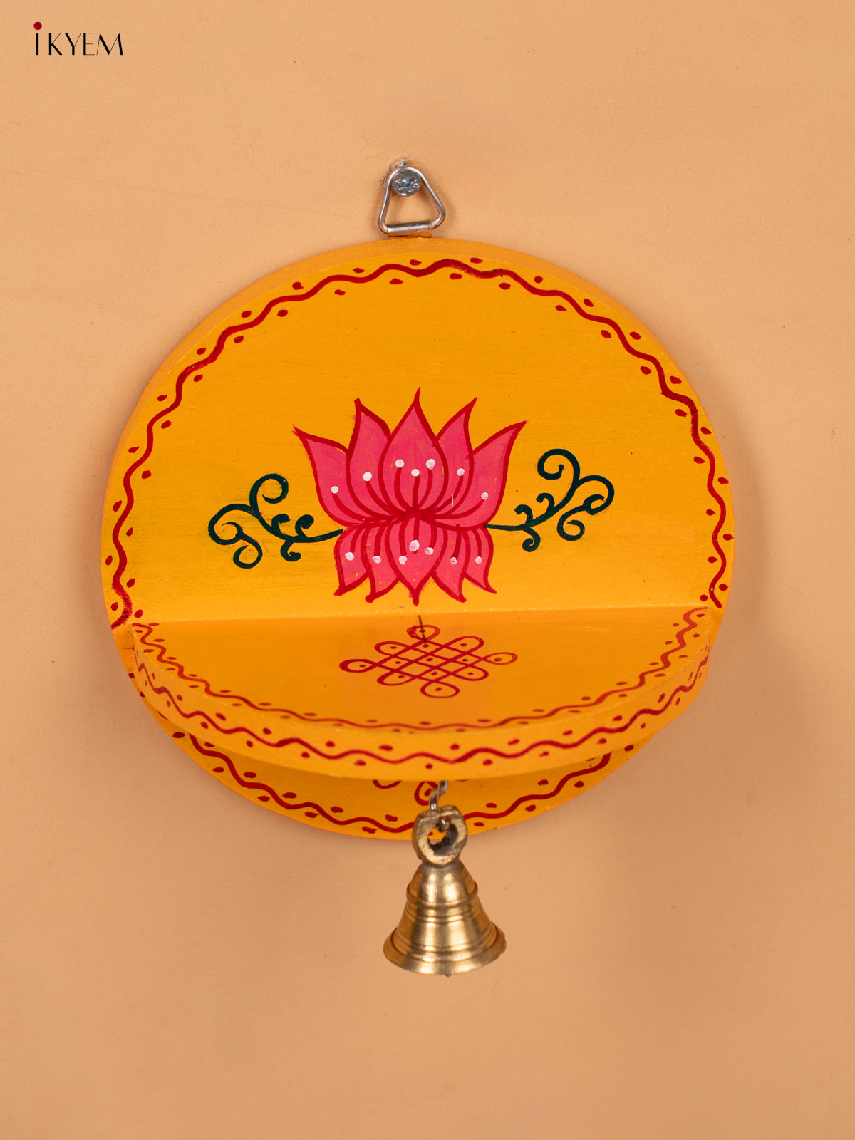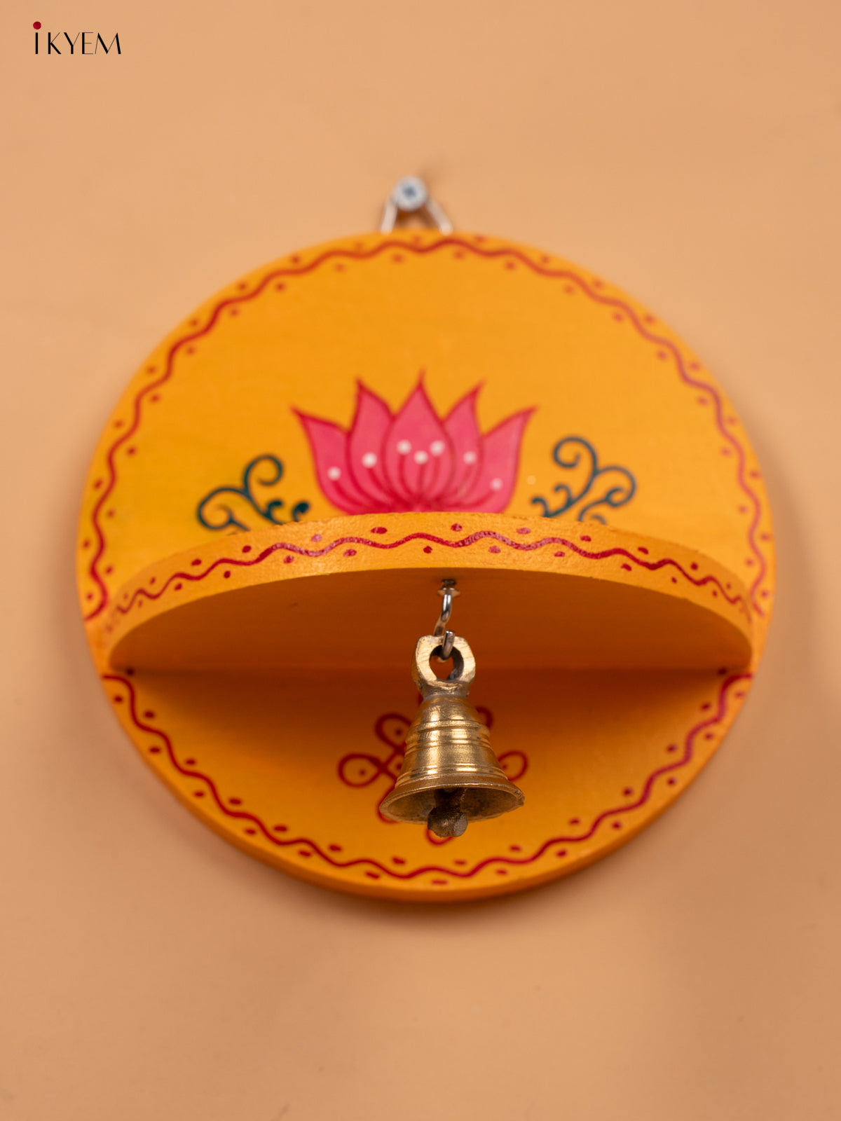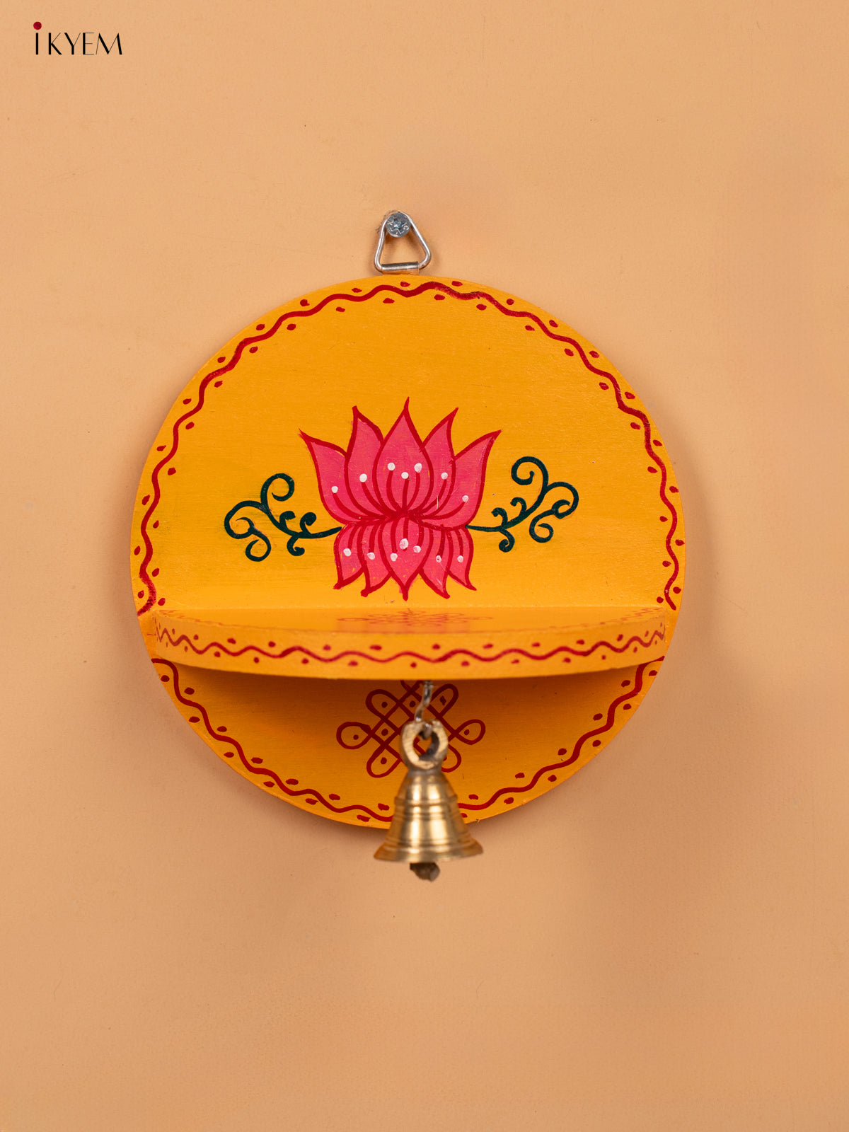 Hand Painted Round Wall Shelf with Brass Bell - Yellow -KC20113