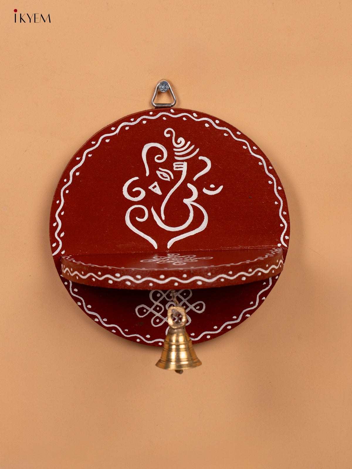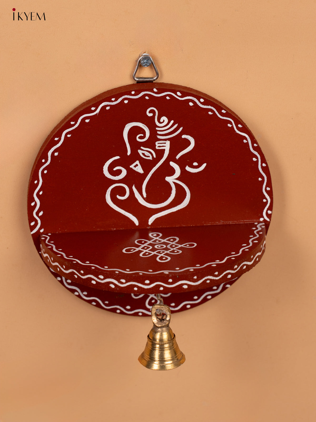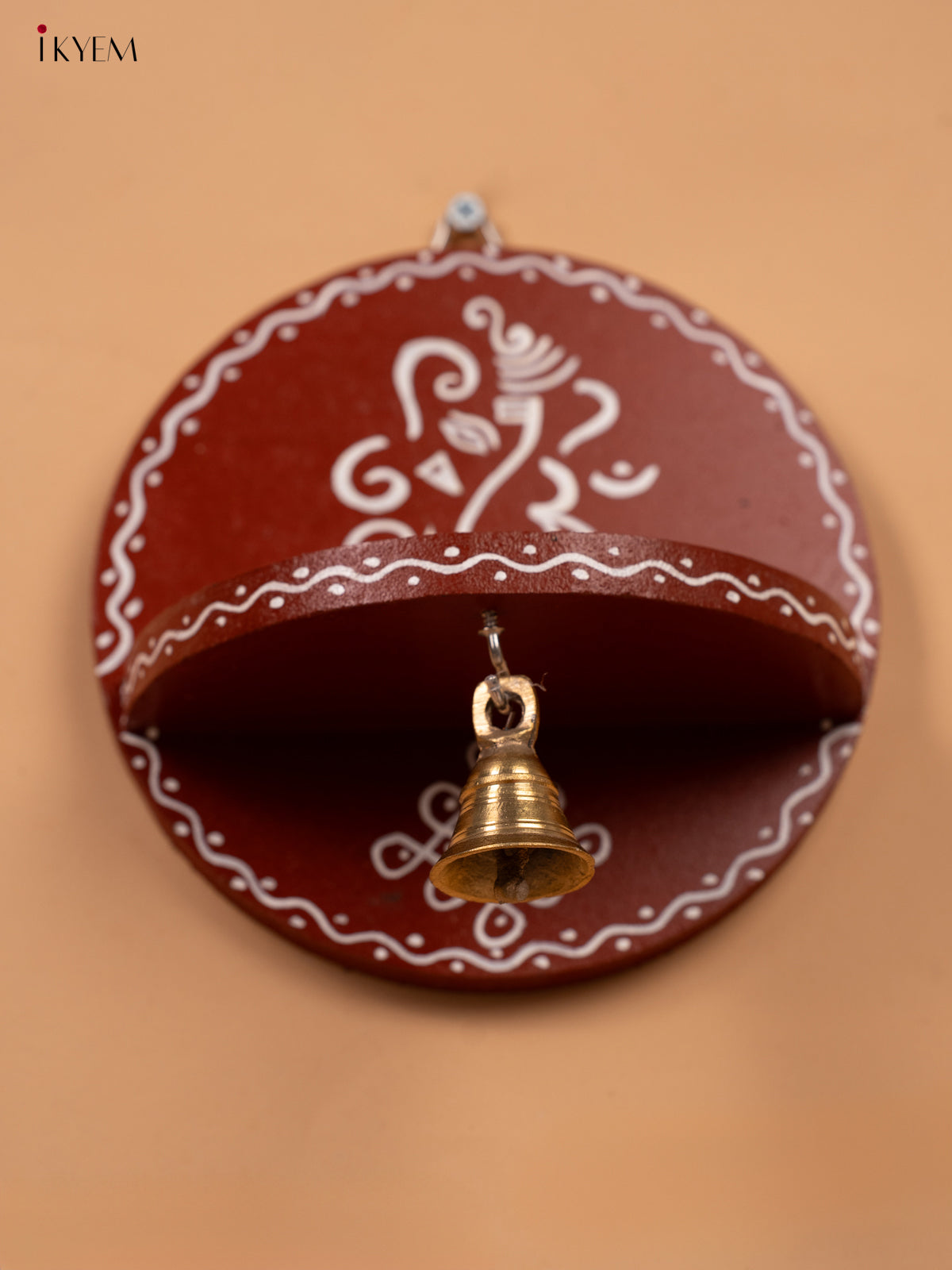 Hand Painted Round Wall Shelf with Brass Bell - Coffee brown-KC20115