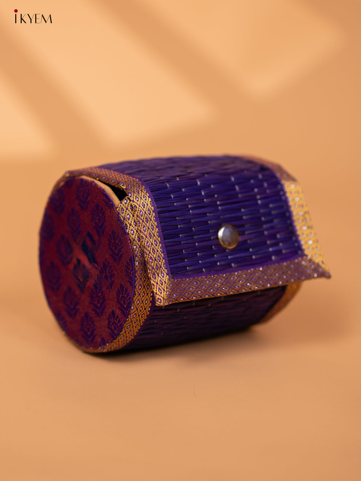 - This Decorative Foldable Korai round bangle Trinket Box with Raw Silk is the perfect addition to any Baby shower, return gift or Navaratri celebration.
