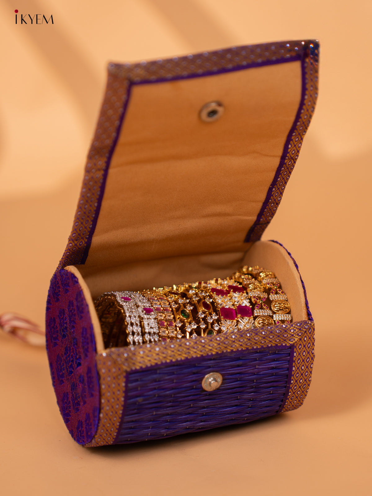 Half Raw Silk with korai Round Bangle box - Dark blue -KC20134