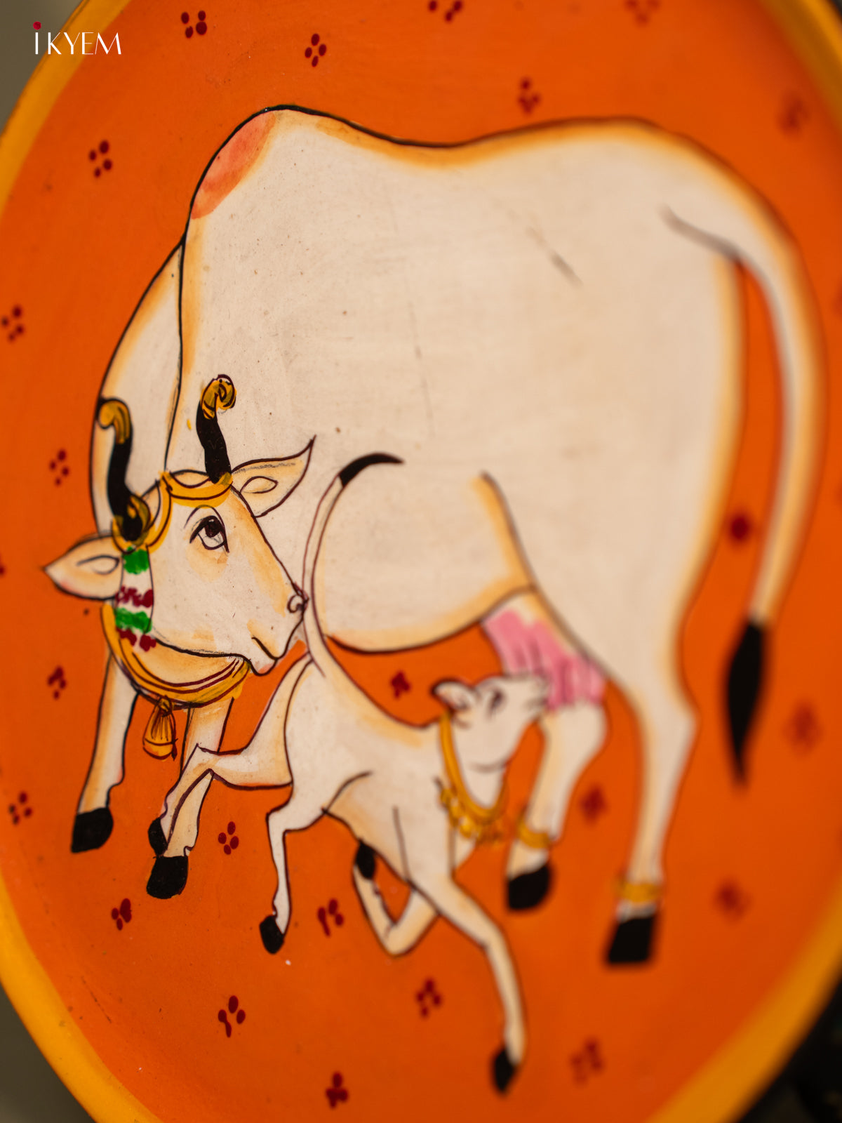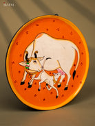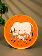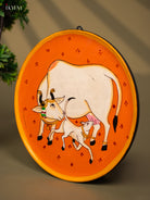 Wooden Hand painted Wall hanging plate - Cow And calf orange-KC22118