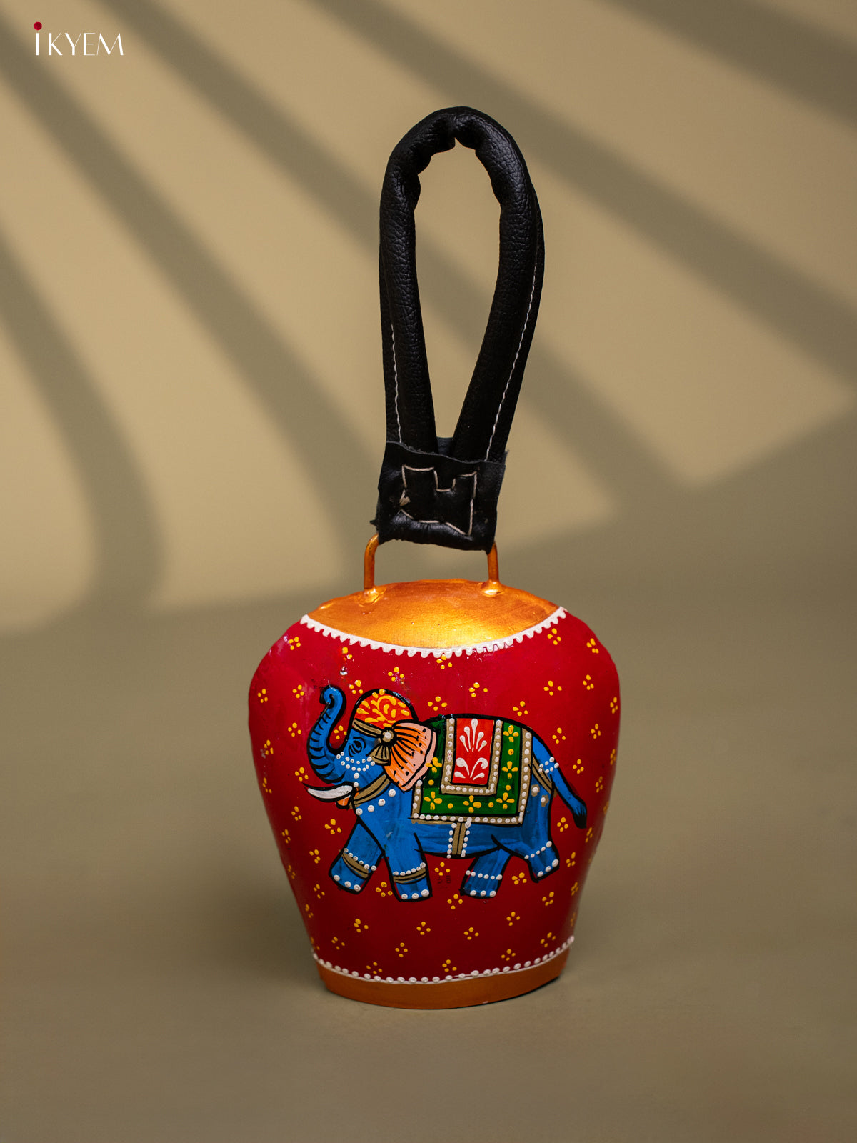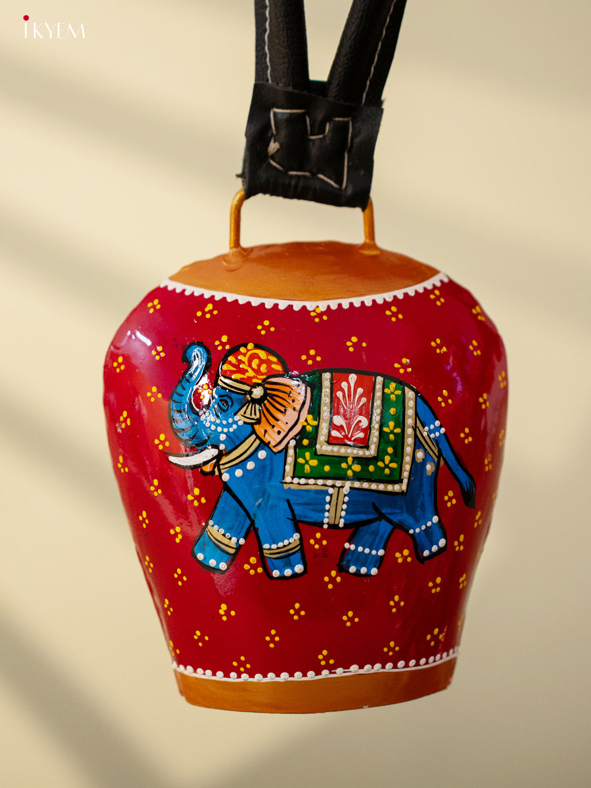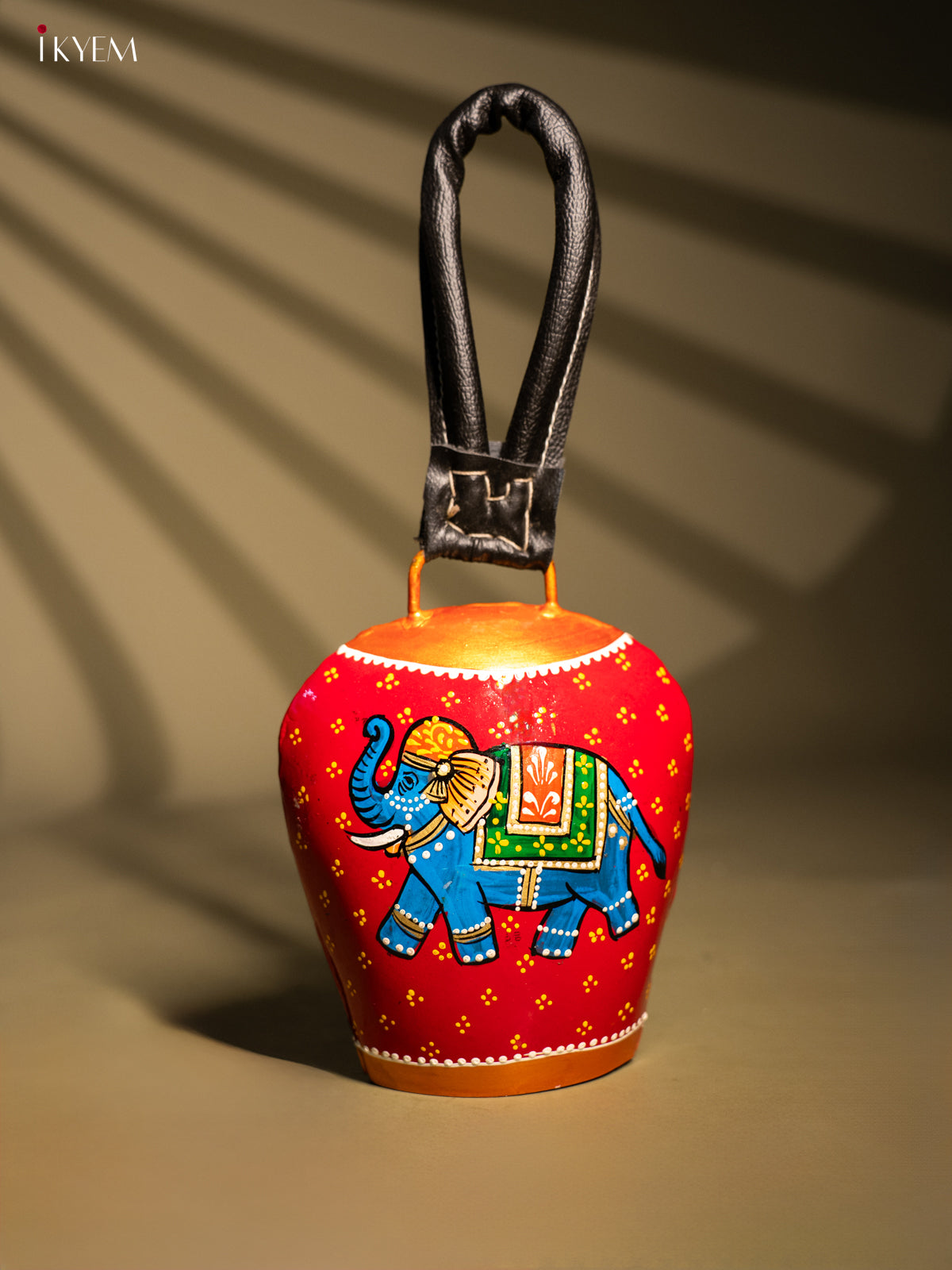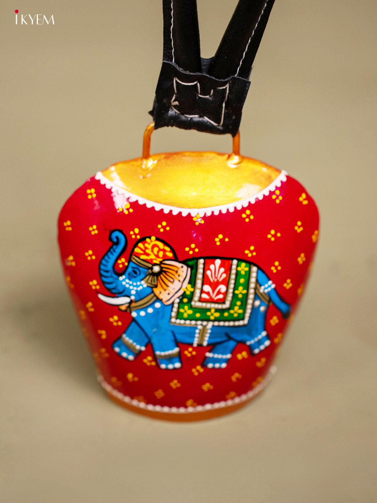Hand Painted Cow Bell with Leather Handle Big - Elephant - KC26113