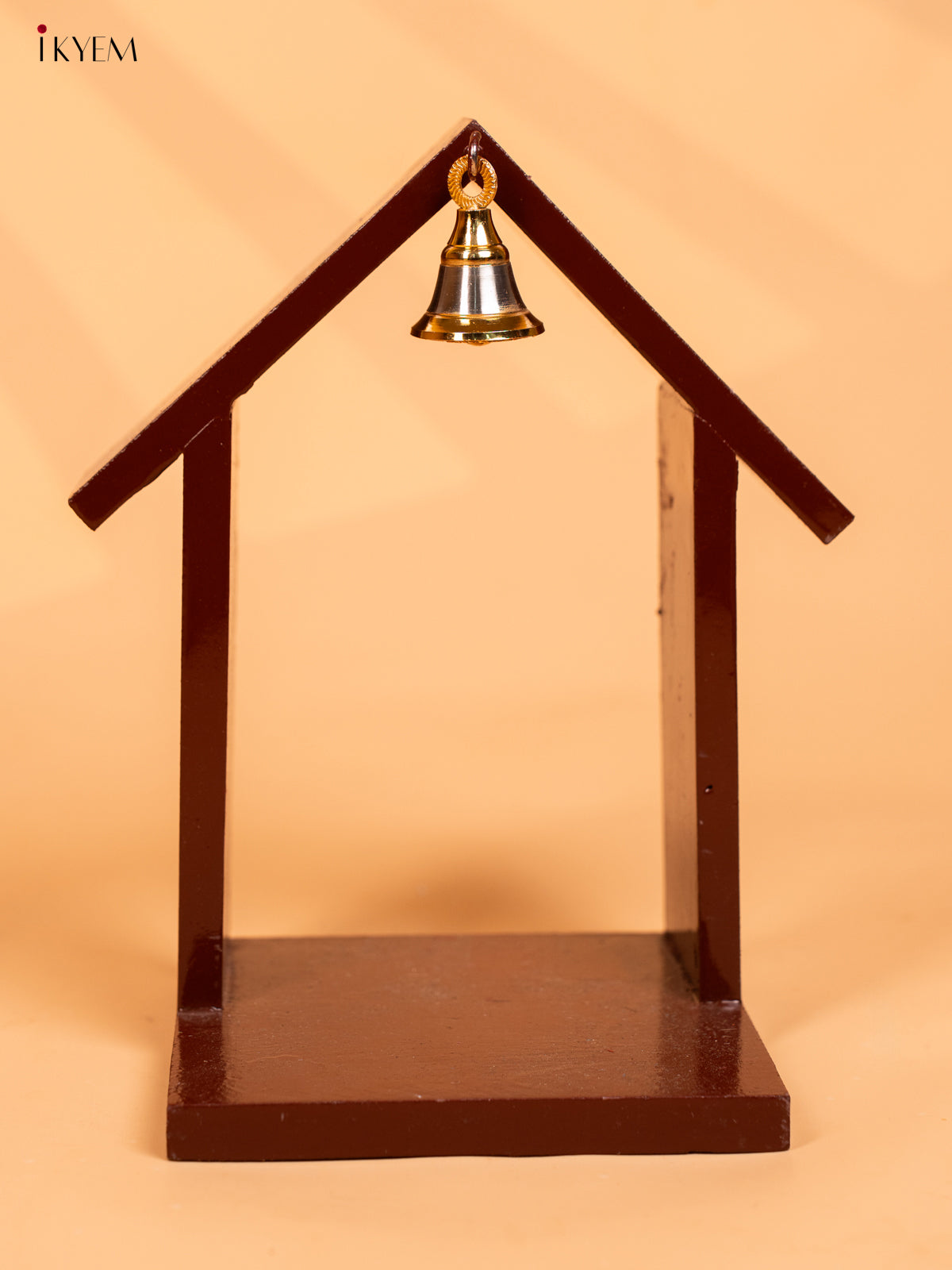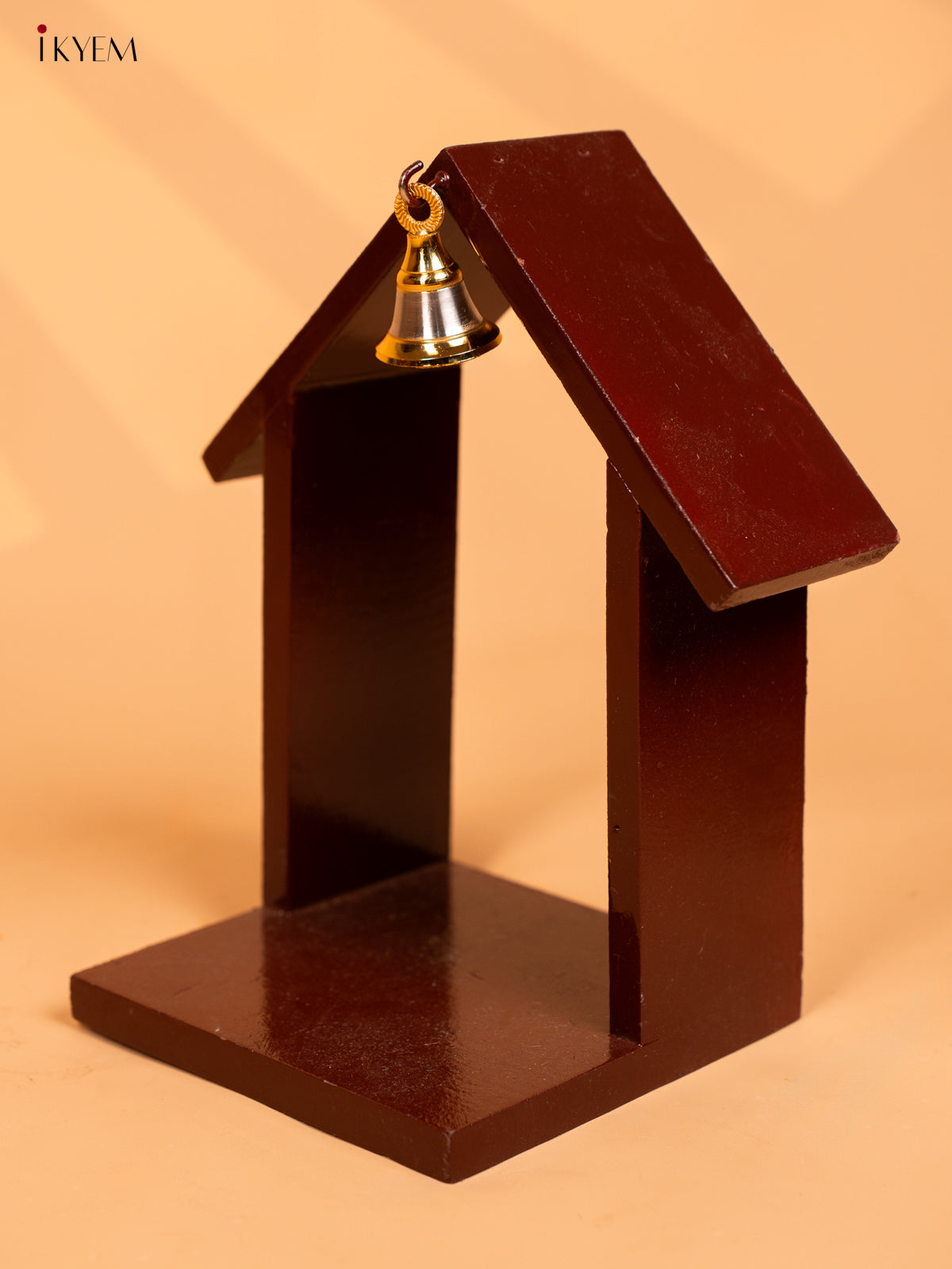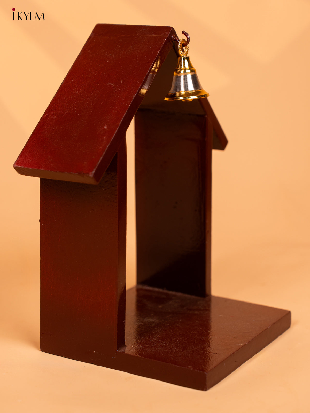 Wooden Vilakku Maadam with Bell - 8 Inch- Maroon - KD01132
