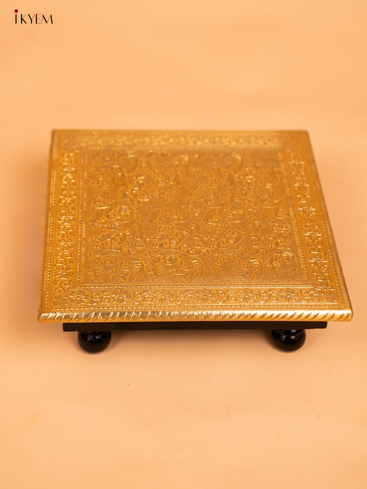 - This wooden Brass Work Pooja Bajot Stool adds elegance and tradition to your pooja decor at home.