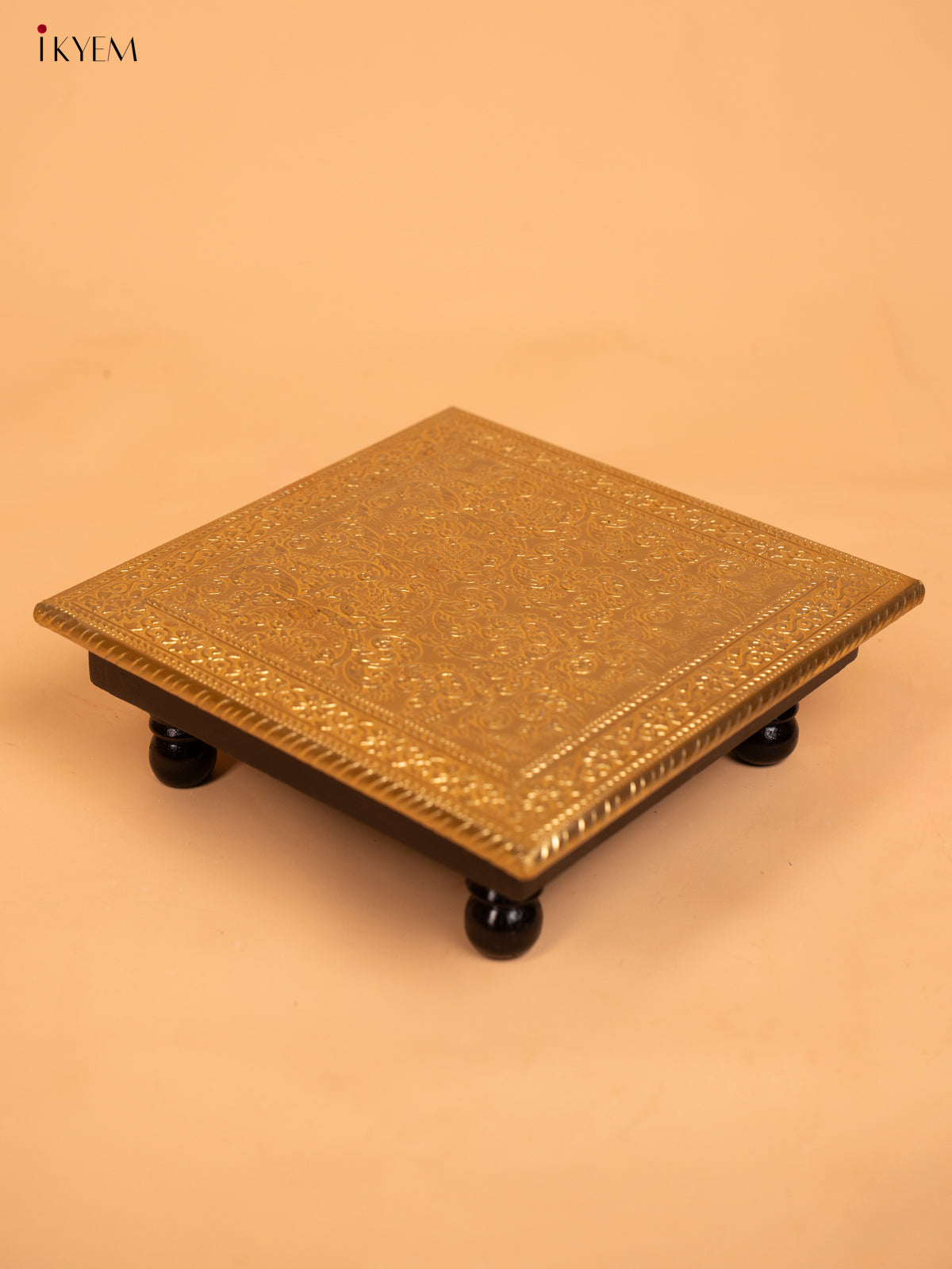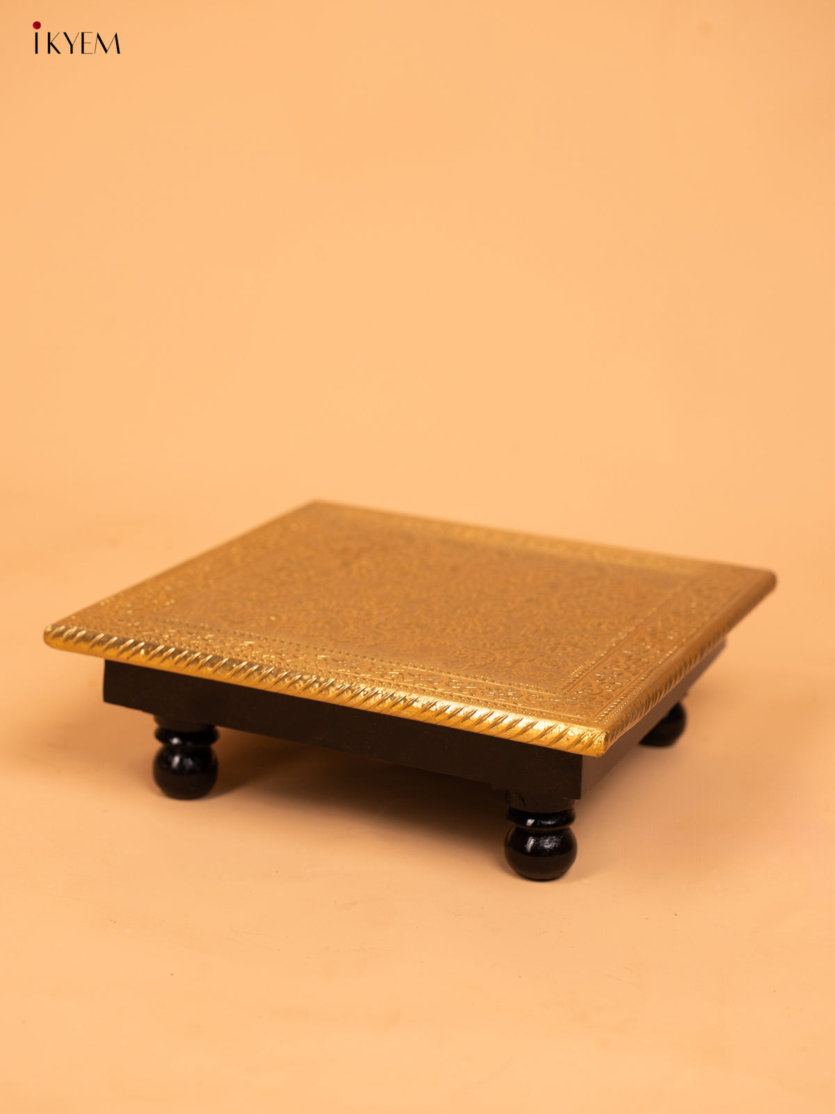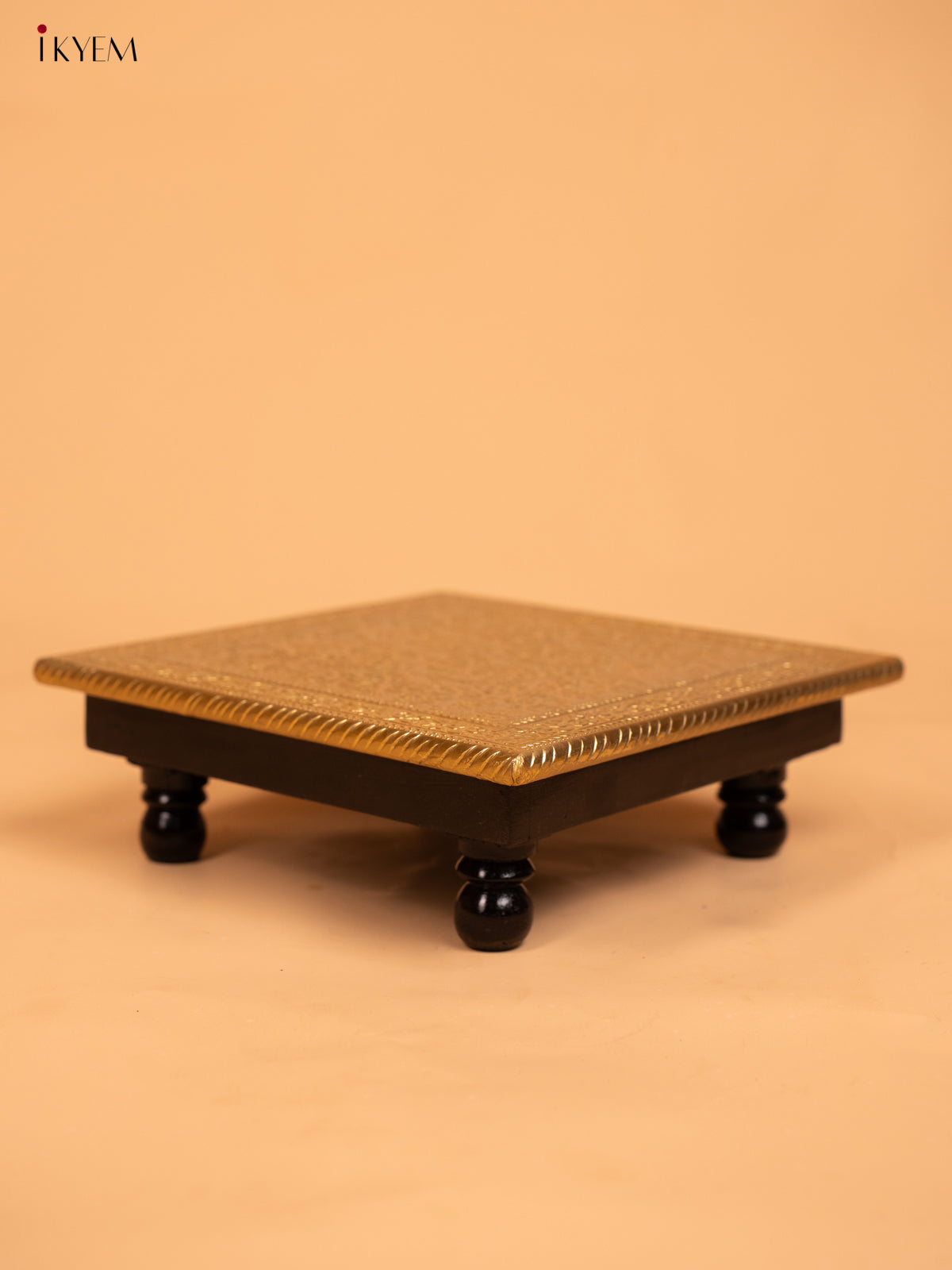 Wooden Brass Work Pooja Bajot Stool (10×10) - KD01142