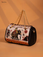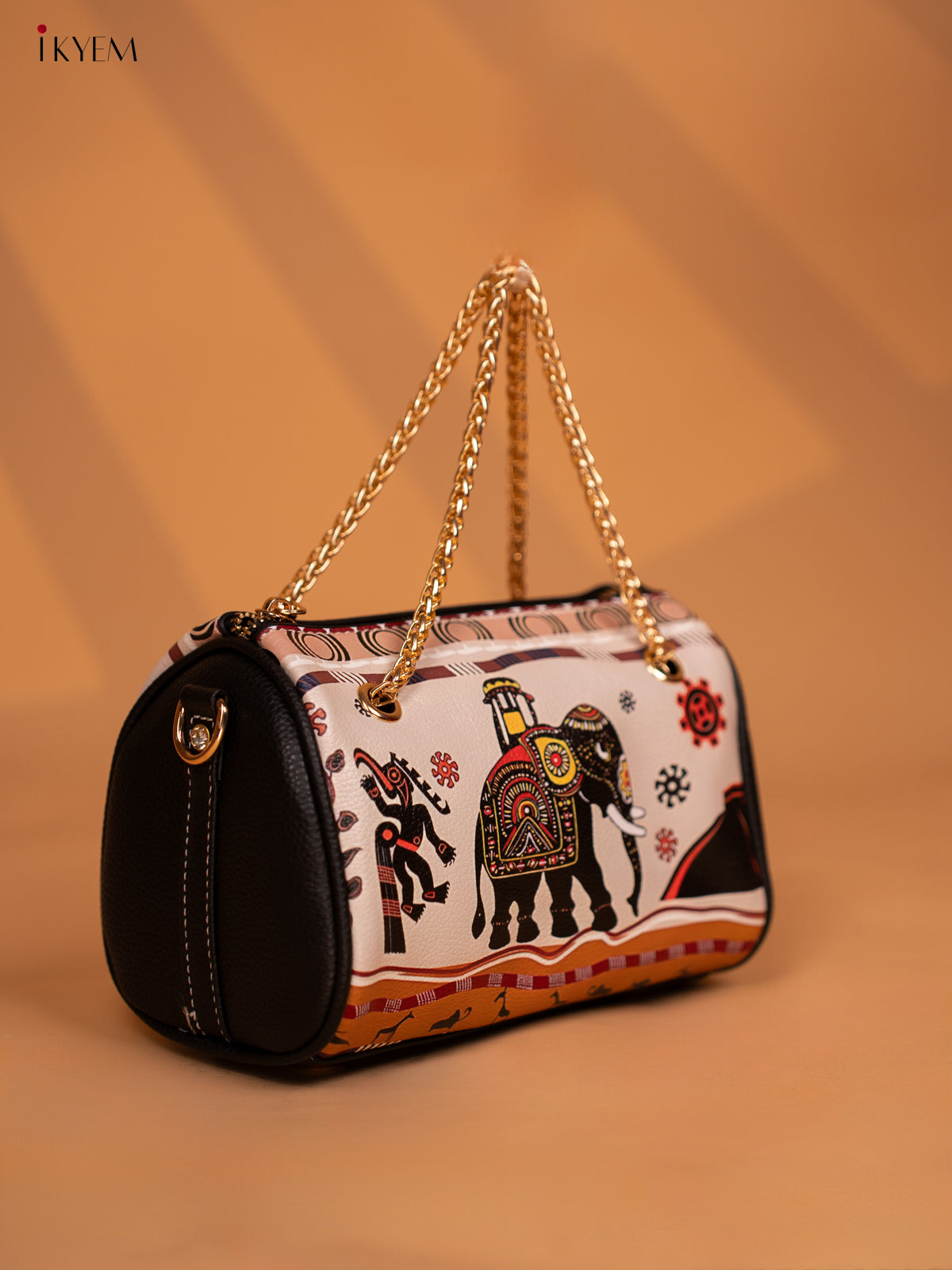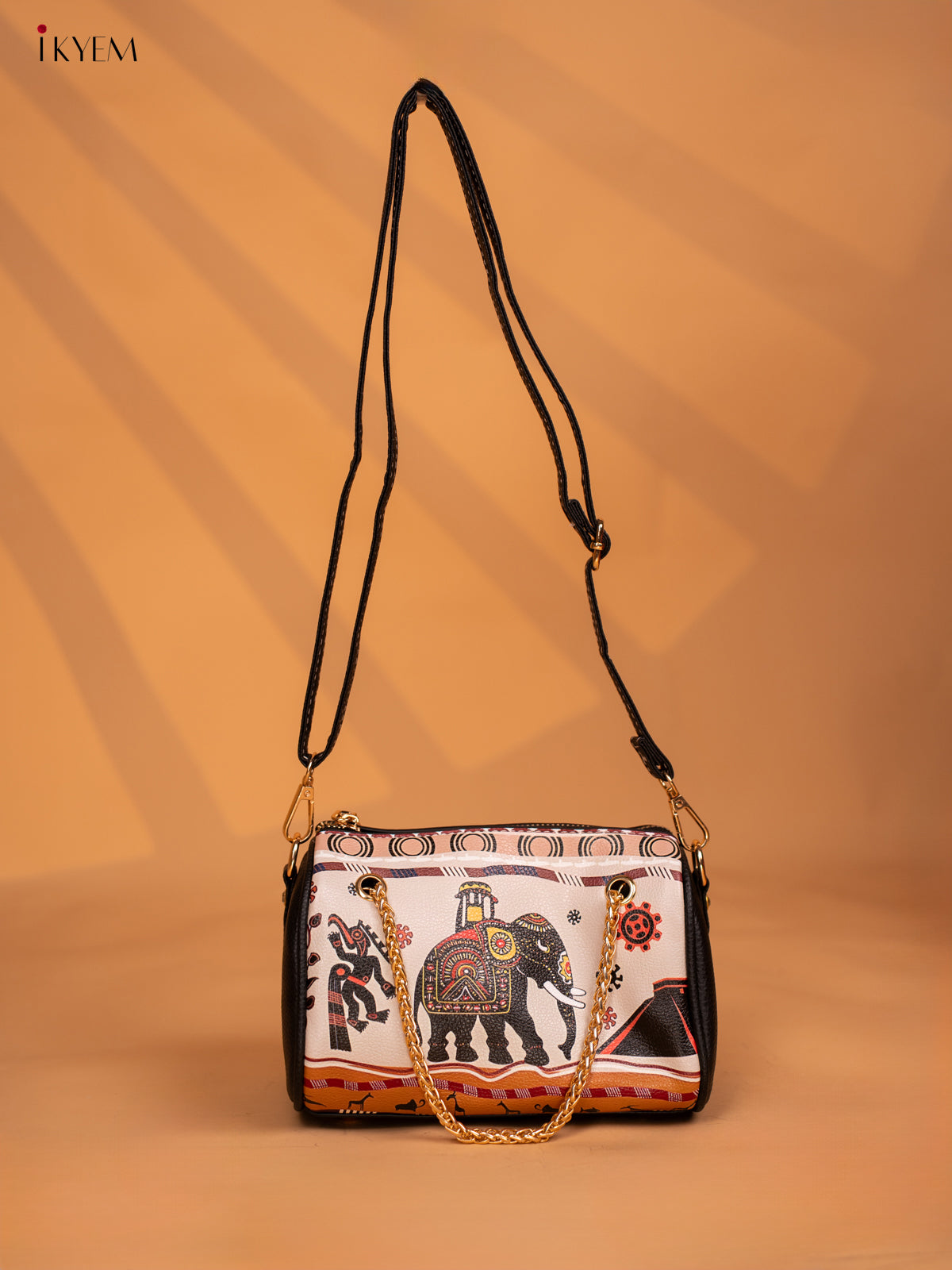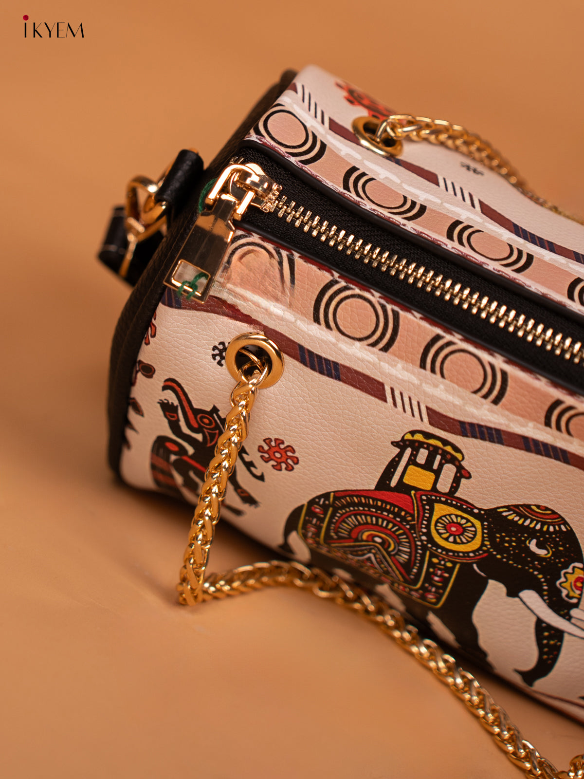 Printed Elephant Design Leather Sling Bag - Cream - KD05153