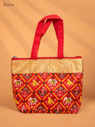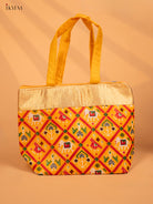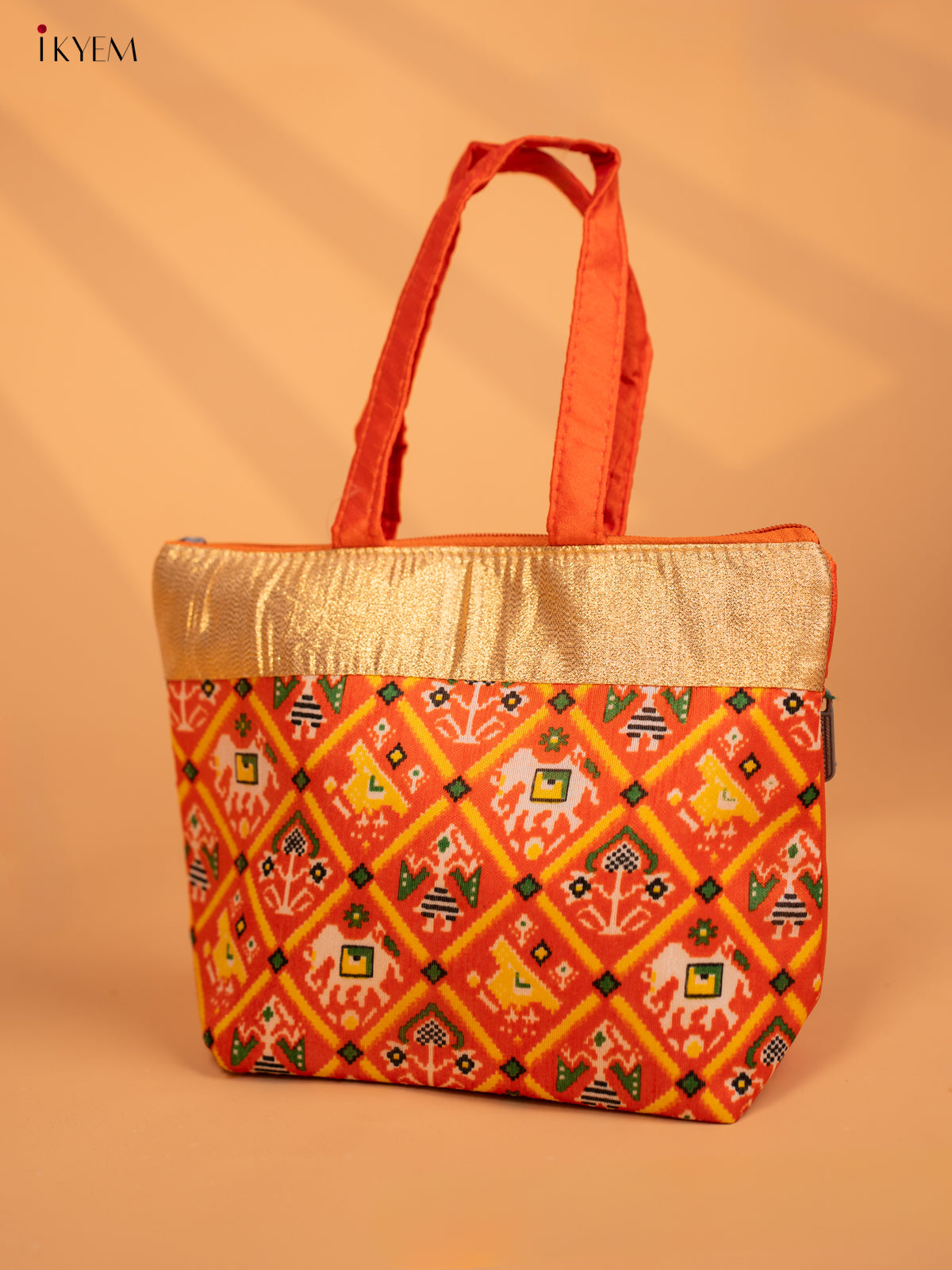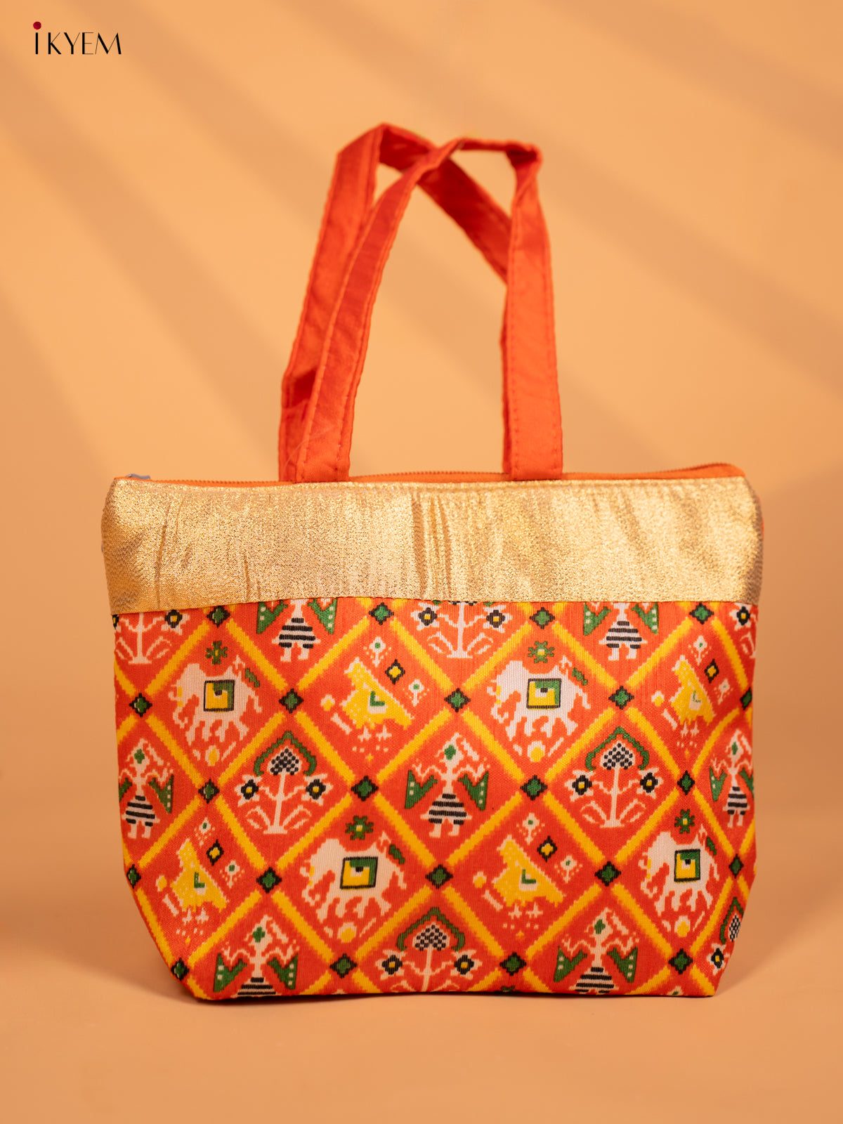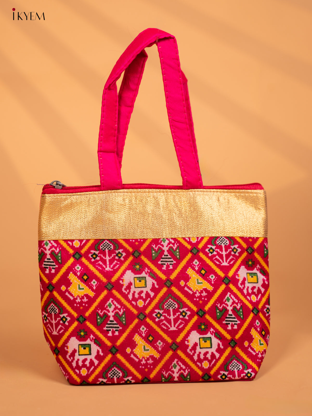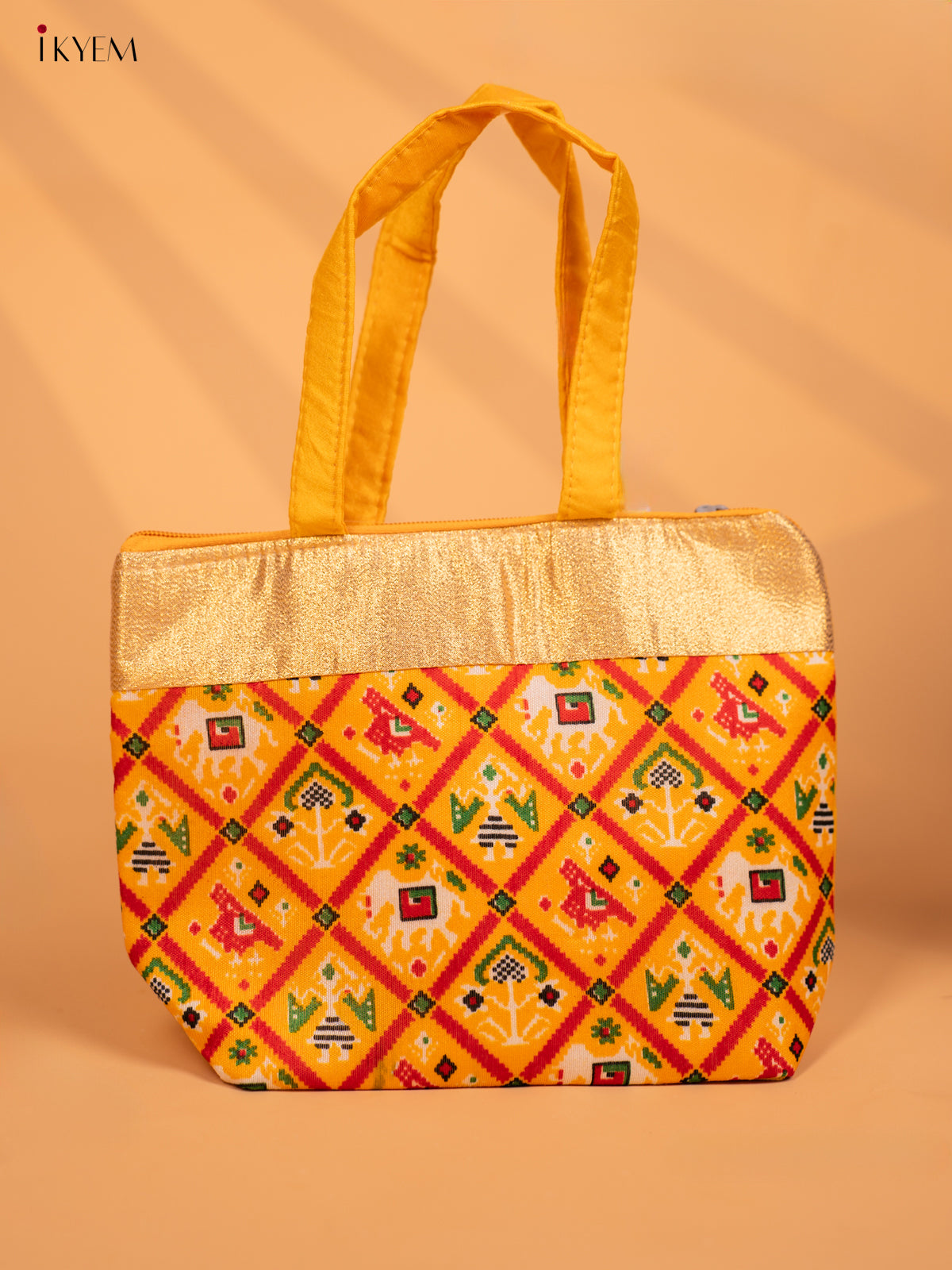 - Expertly crafted for the festive season, this Return Gift Handbag with Golden Border is perfect for Navaratri celebrations.
