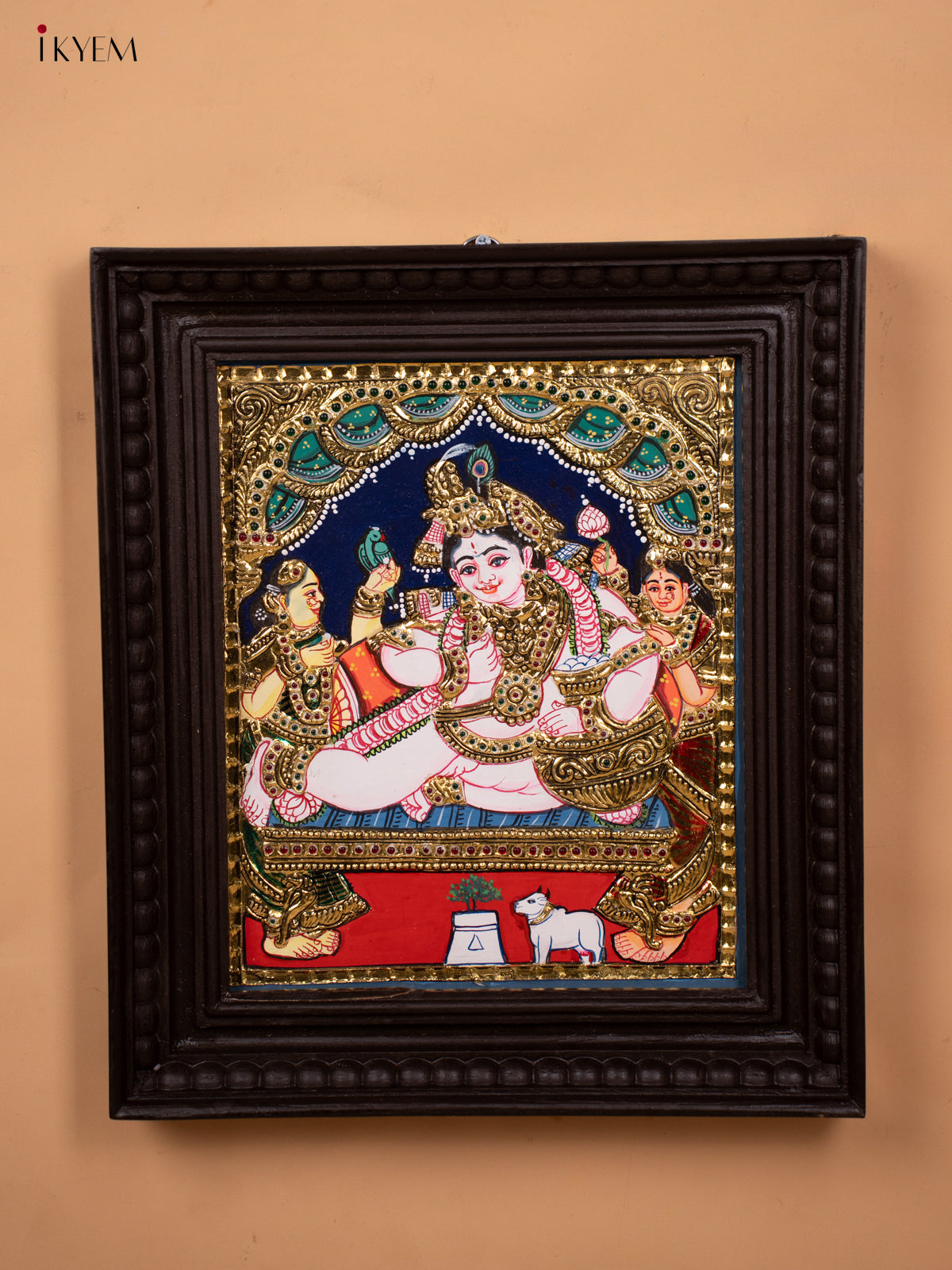 - Enhance the ambiance of your pooja room with our exquisite Butter Krishna Tanjore Painting (15x 13).