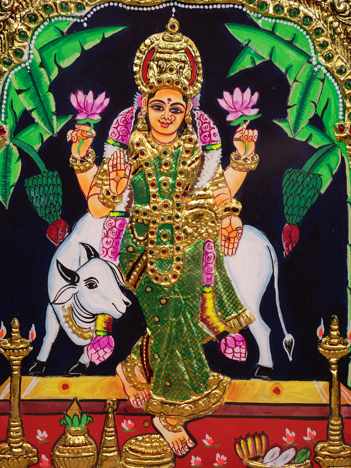 Garuda Lakshmi and Cow - Tanjore Painting (15x13) - KD17134