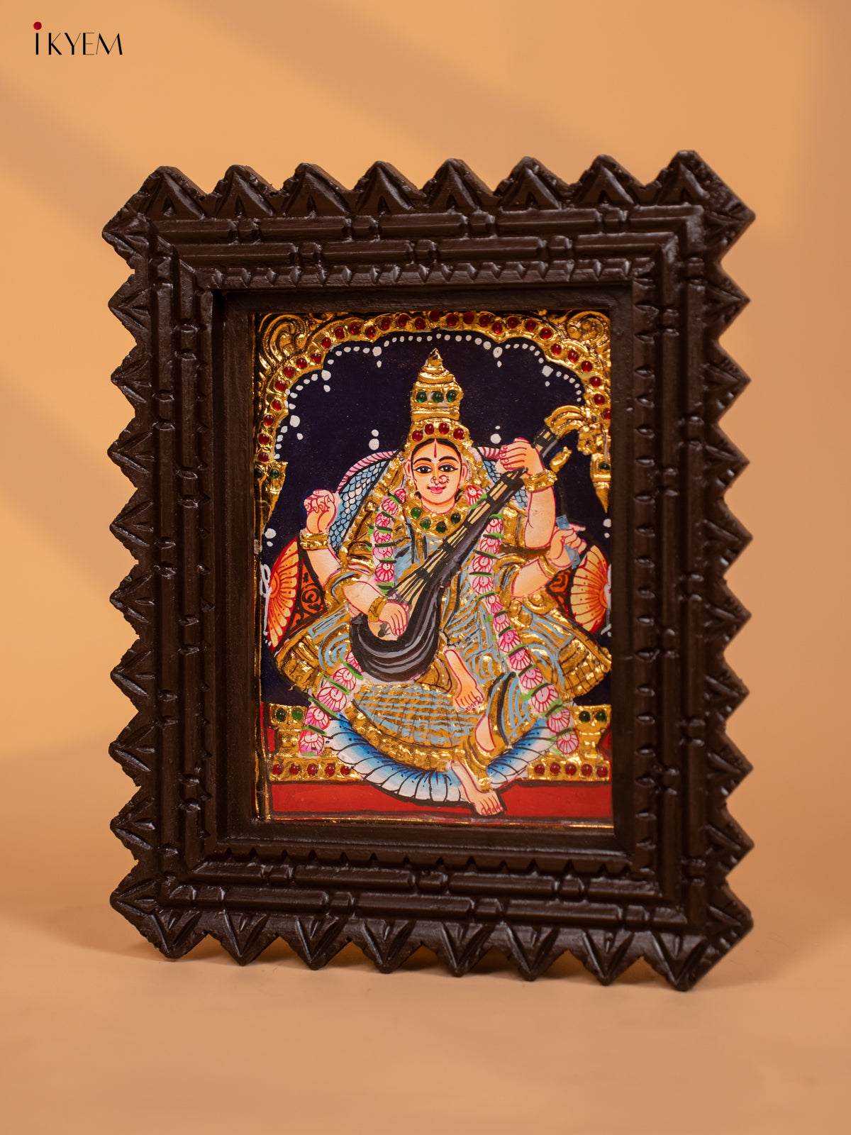 - This authentic Saraswati - Tanjore Painting is perfect for any pooja room, adding a touch of tradition to your home.