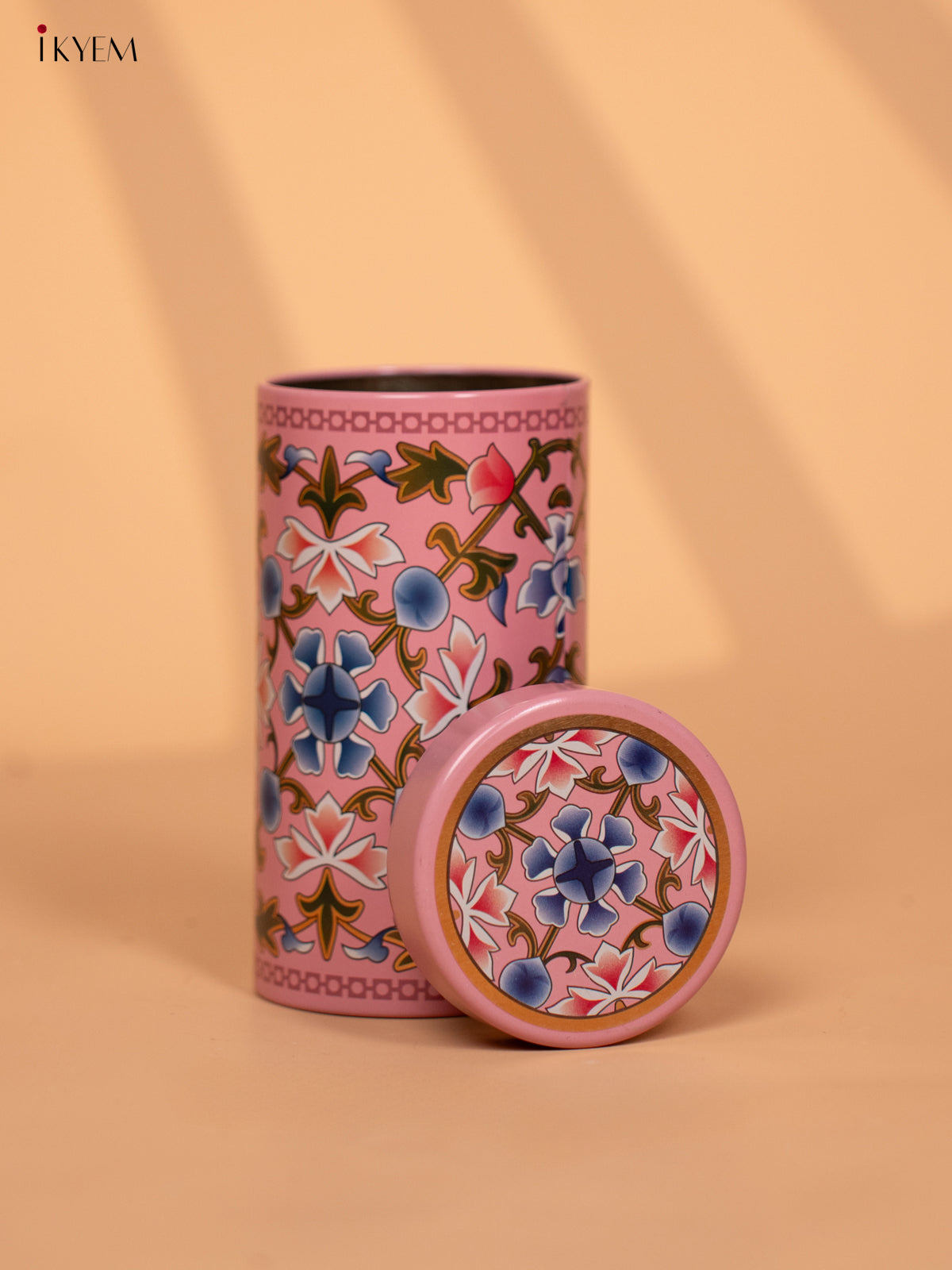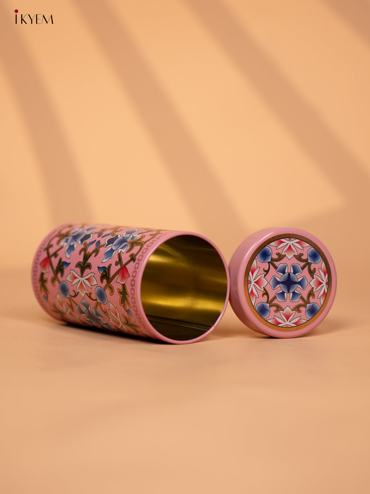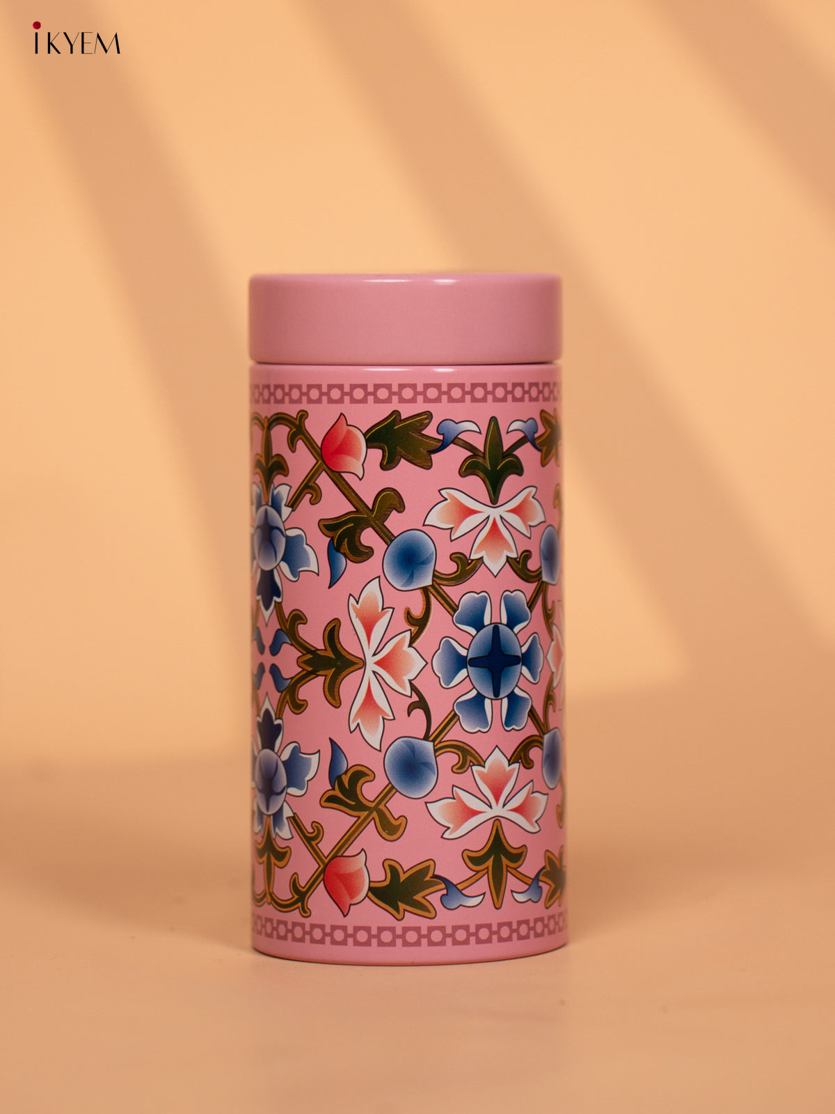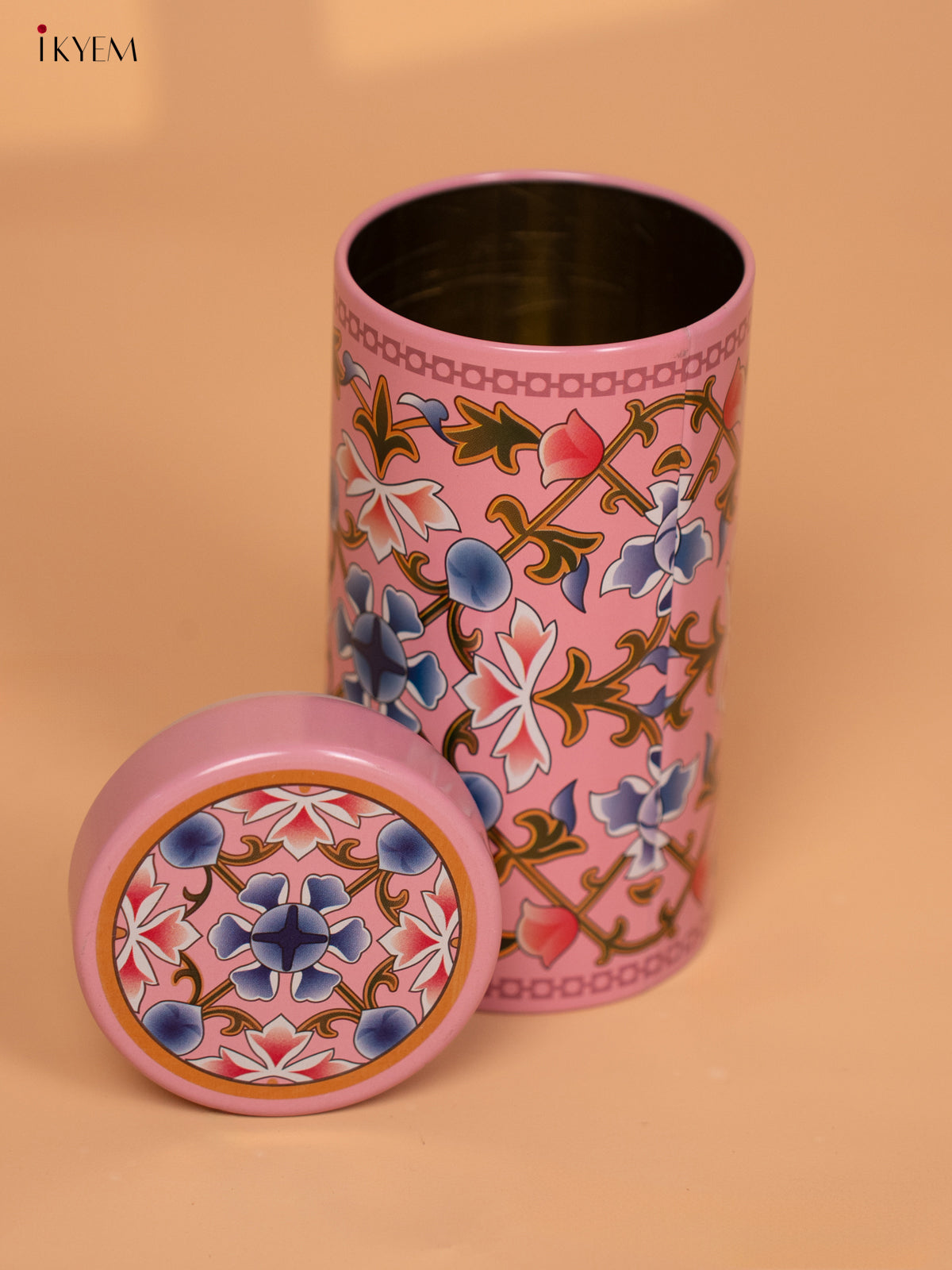 Digital Printed Dry Fruit & Snacks Tin Jar Cylinder - 6 inch - pink - KD24134