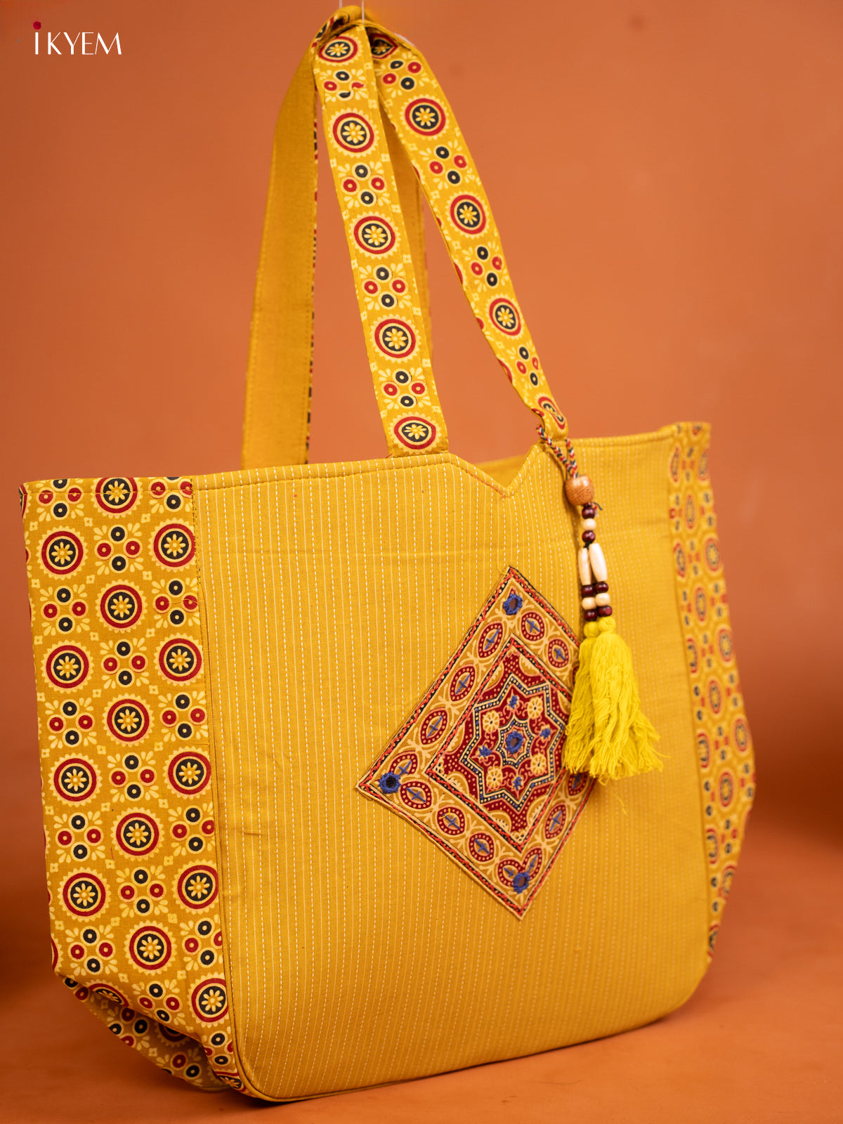 Ajrakh Aari work Hand bag - Yellow