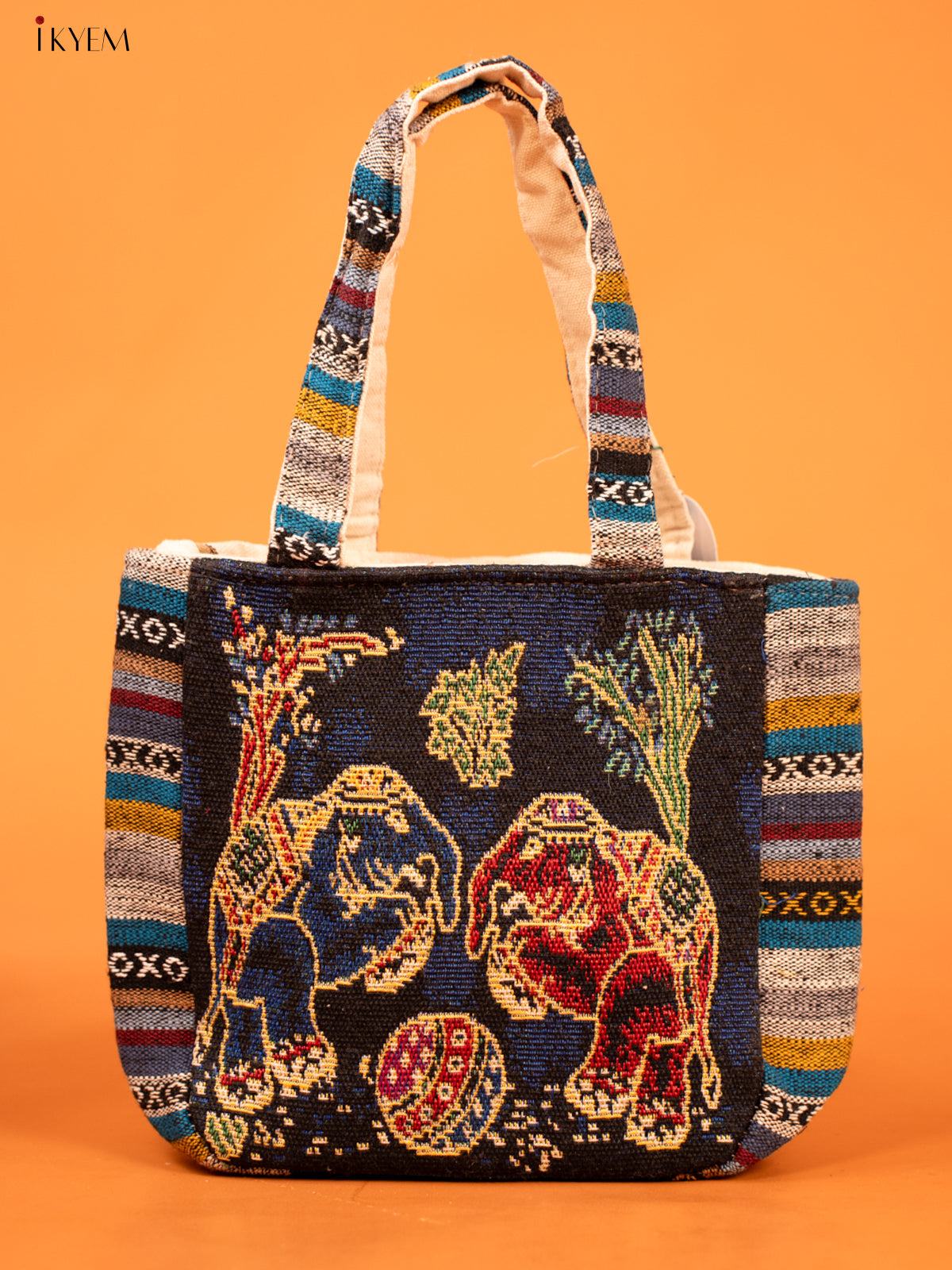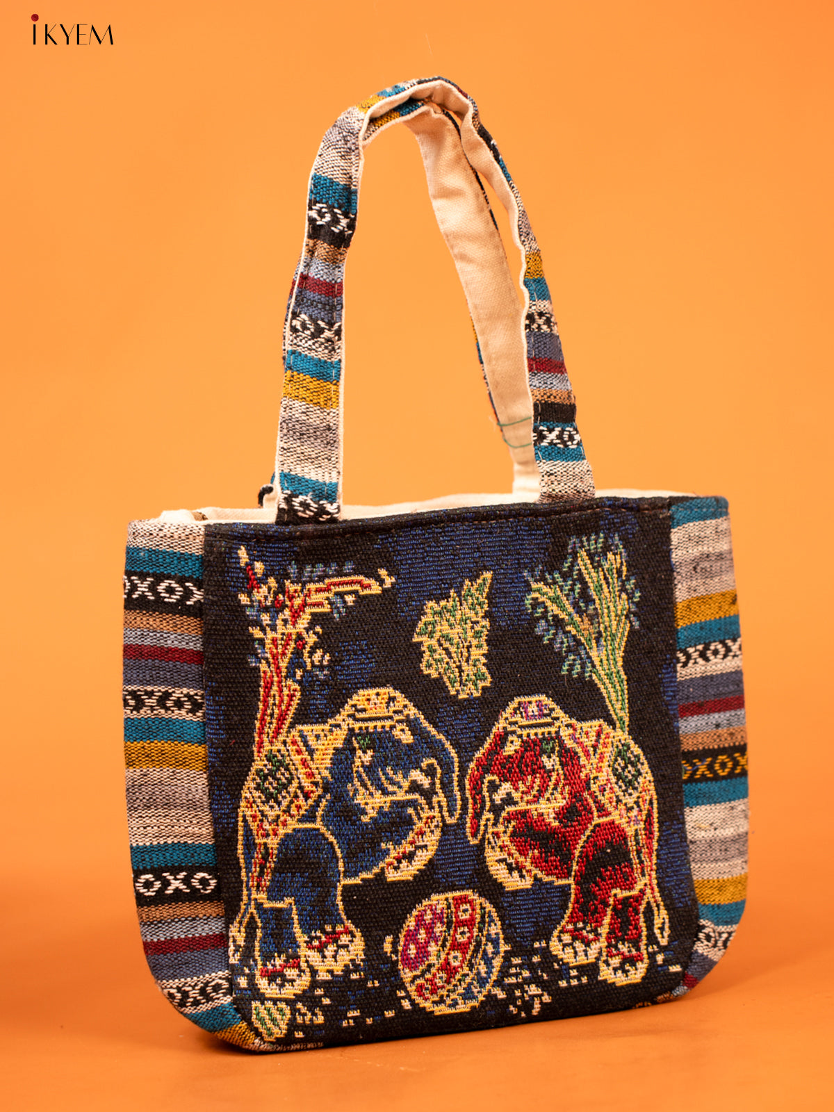 Cotton Zipper Closure tote bag - Elephant Small