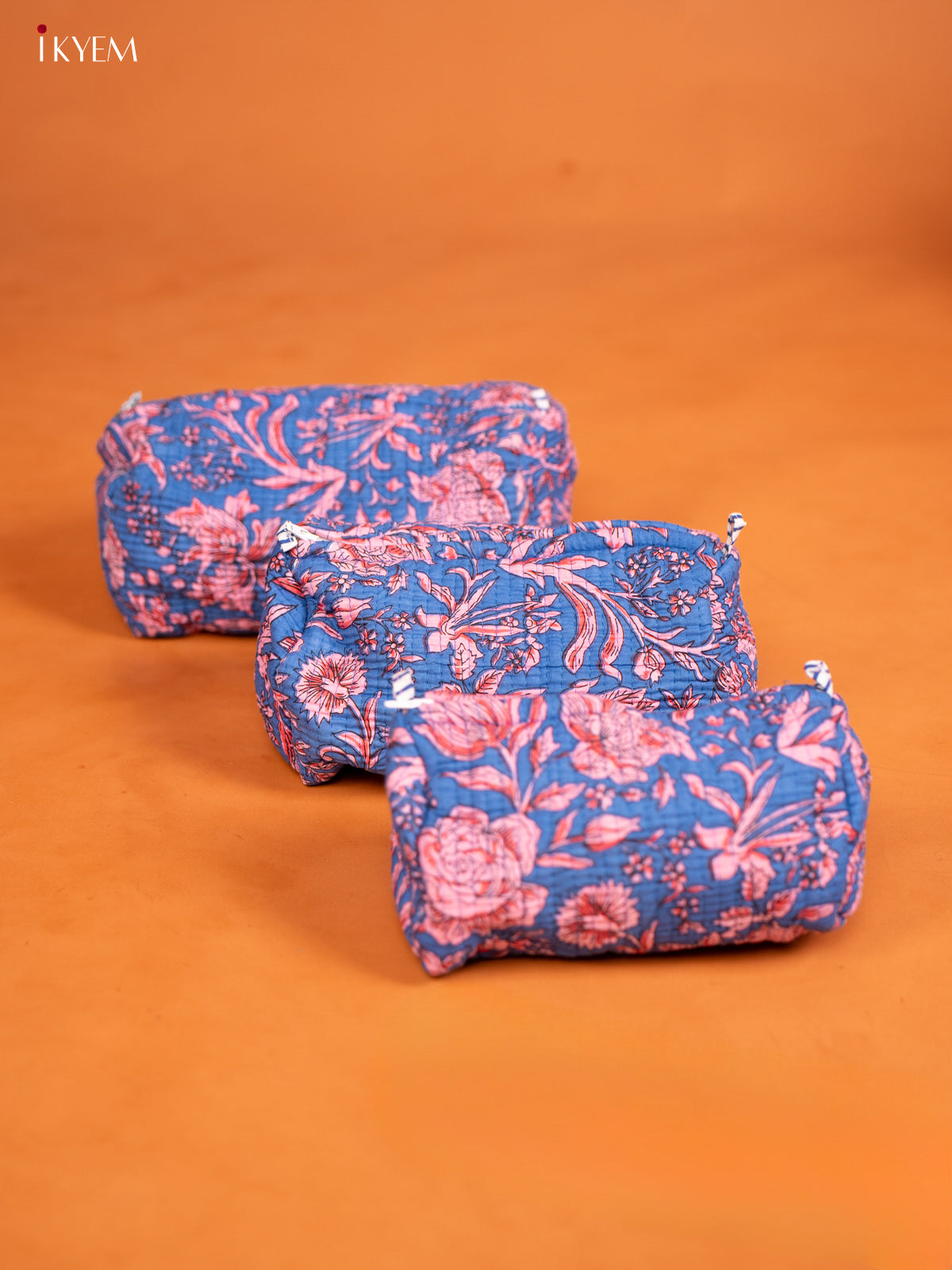 Cotton printed Pouch - Set of 3 - Royal Blue - KD26308