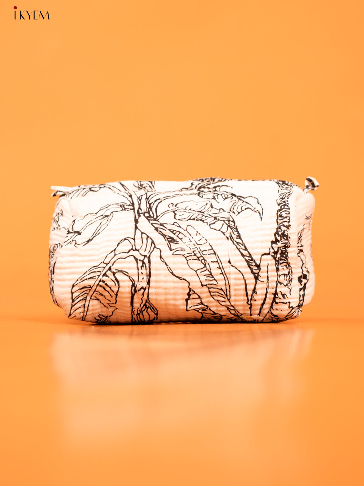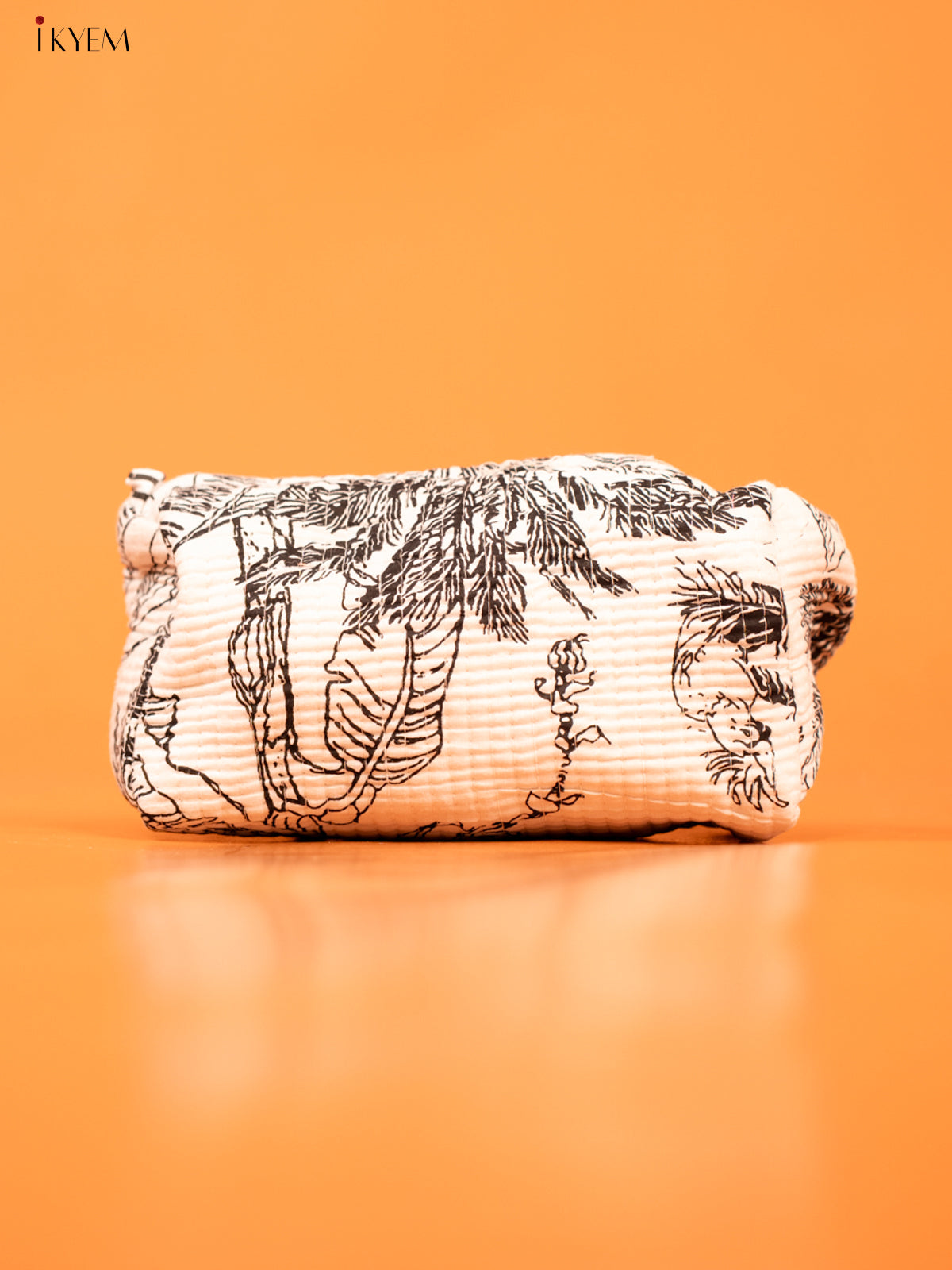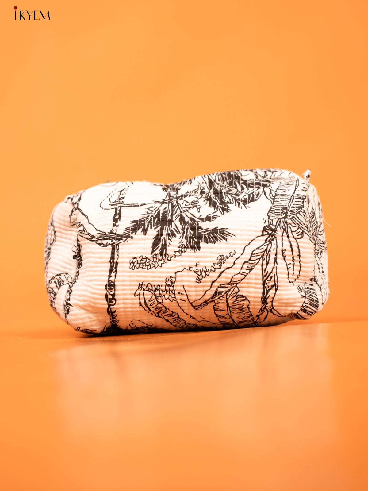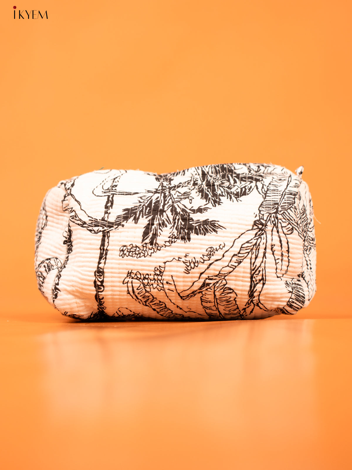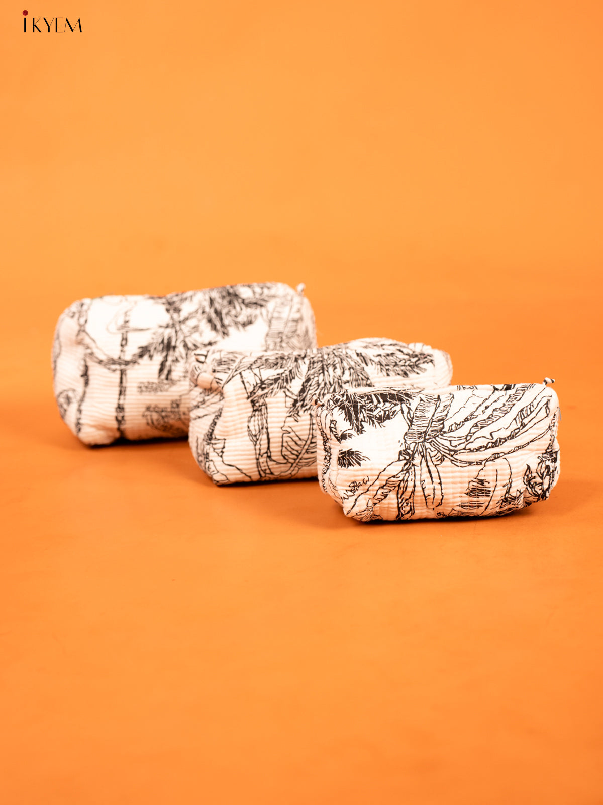 Cotton printed Pouch - Set of 3 - White with Black - KD26312