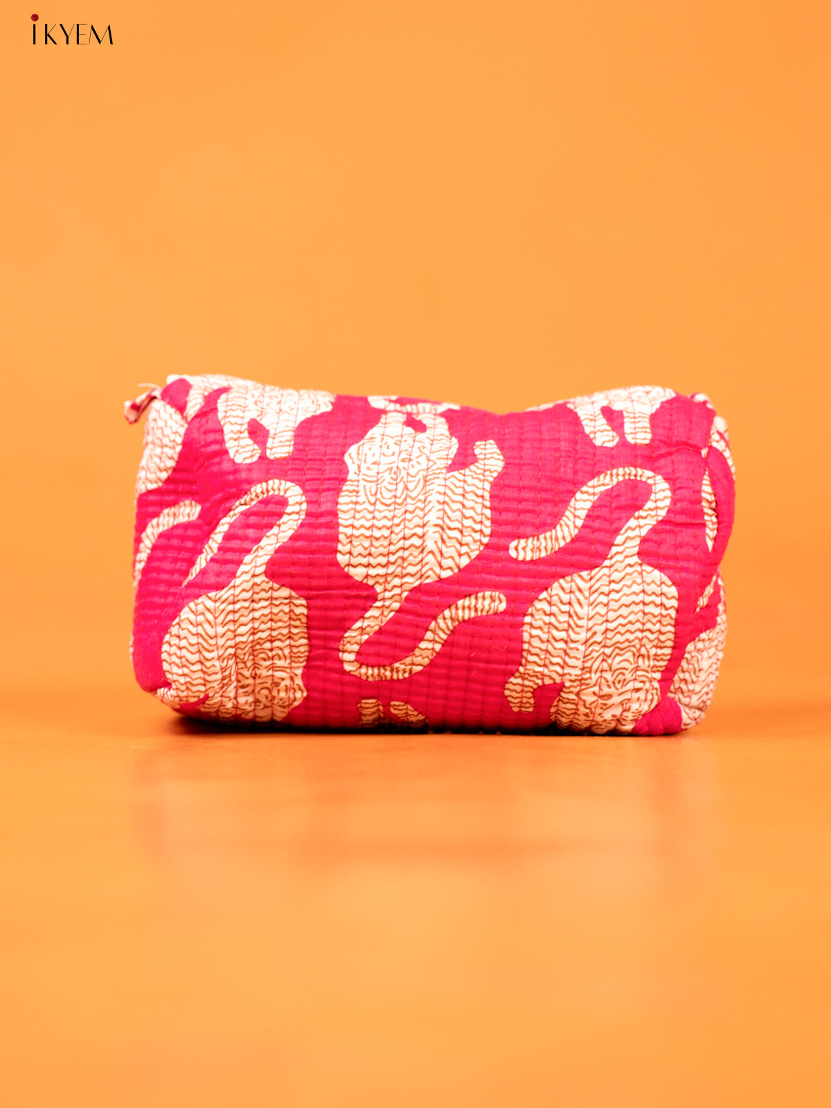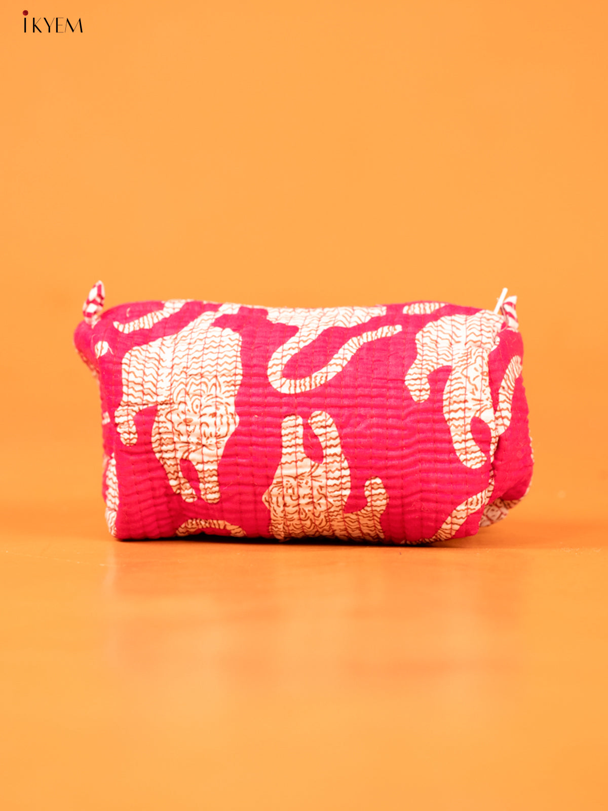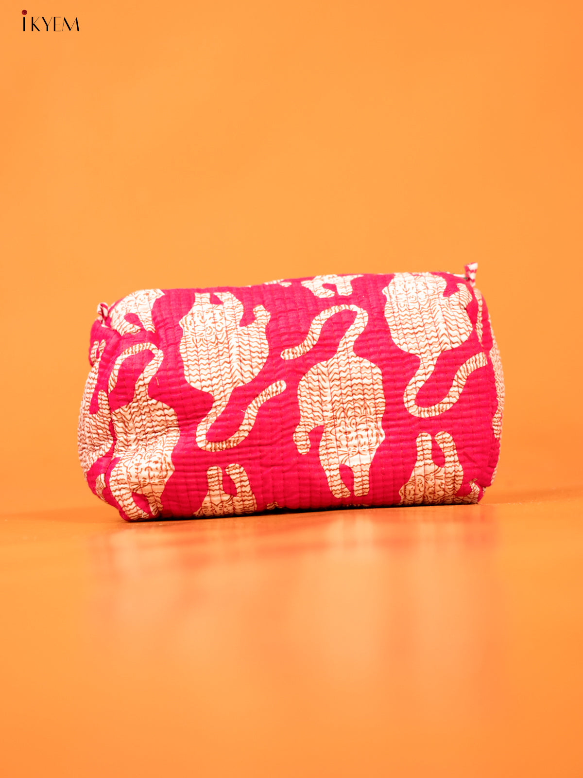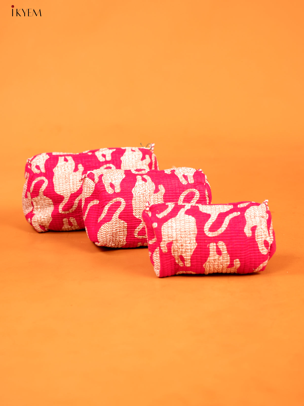 Cotton printed Pouch - Set of 3 - Pink with White - KD26313