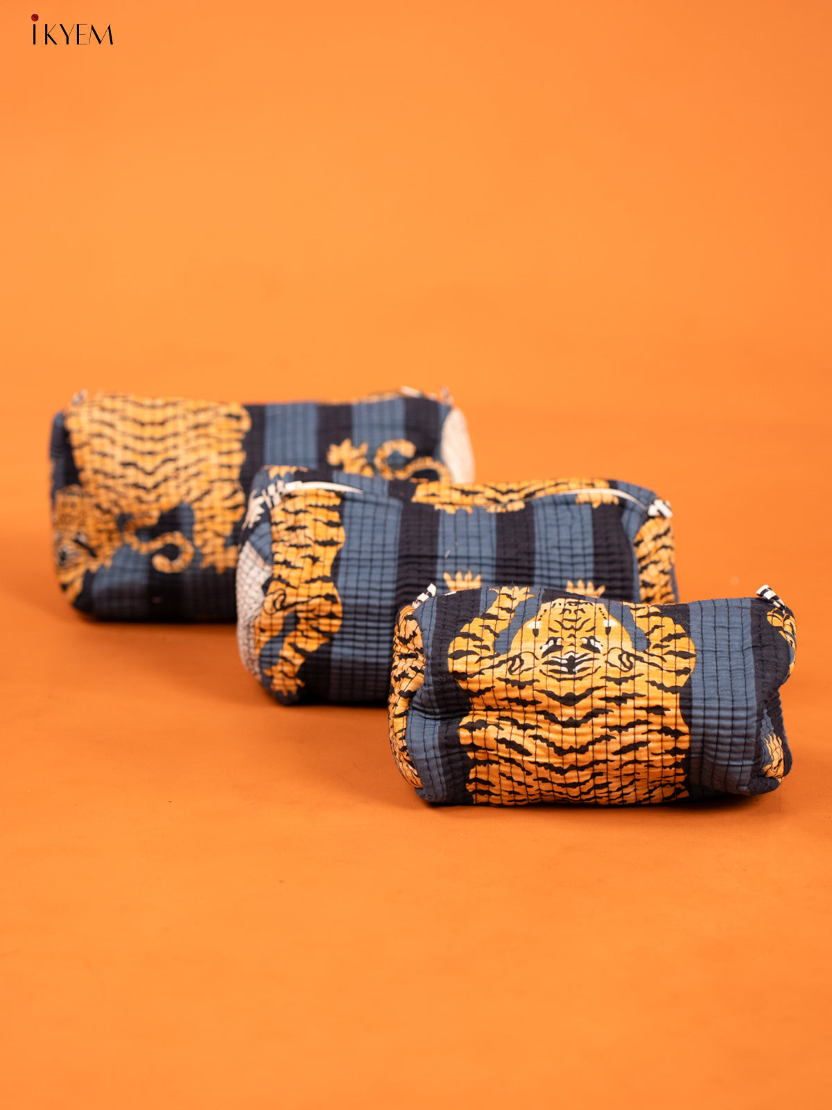 Cotton printed Pouch - Set of 3 - Blue - KD26314