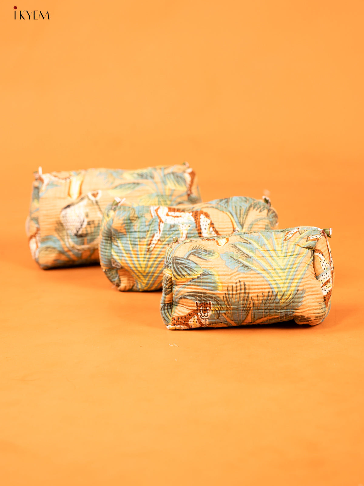 - This set of three cotton printed pouches offers a practical and stylish solution for everyday organization.