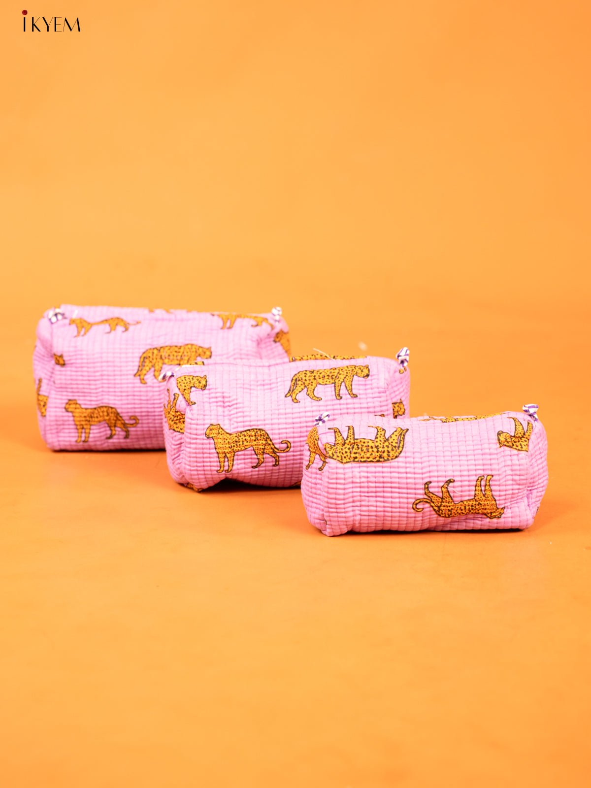 - This set of three cotton printed pouches offers a practical and stylish solution for everyday organization.