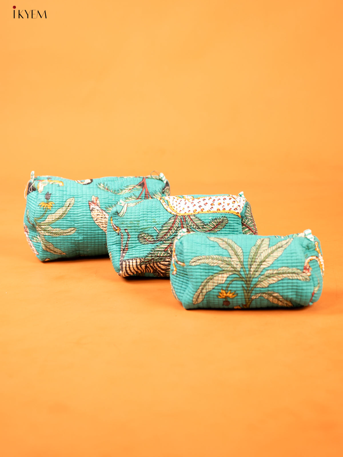 - This set of three cotton printed pouches offers a practical and stylish solution for everyday organization.