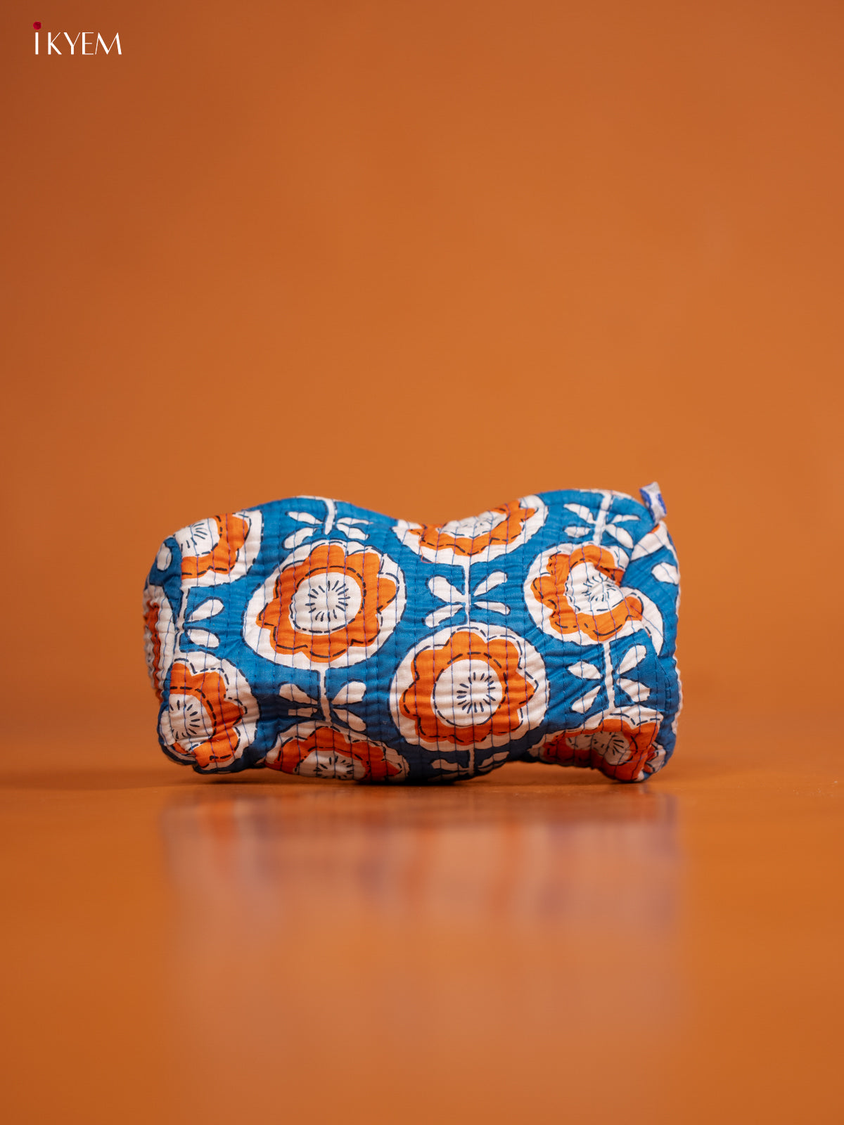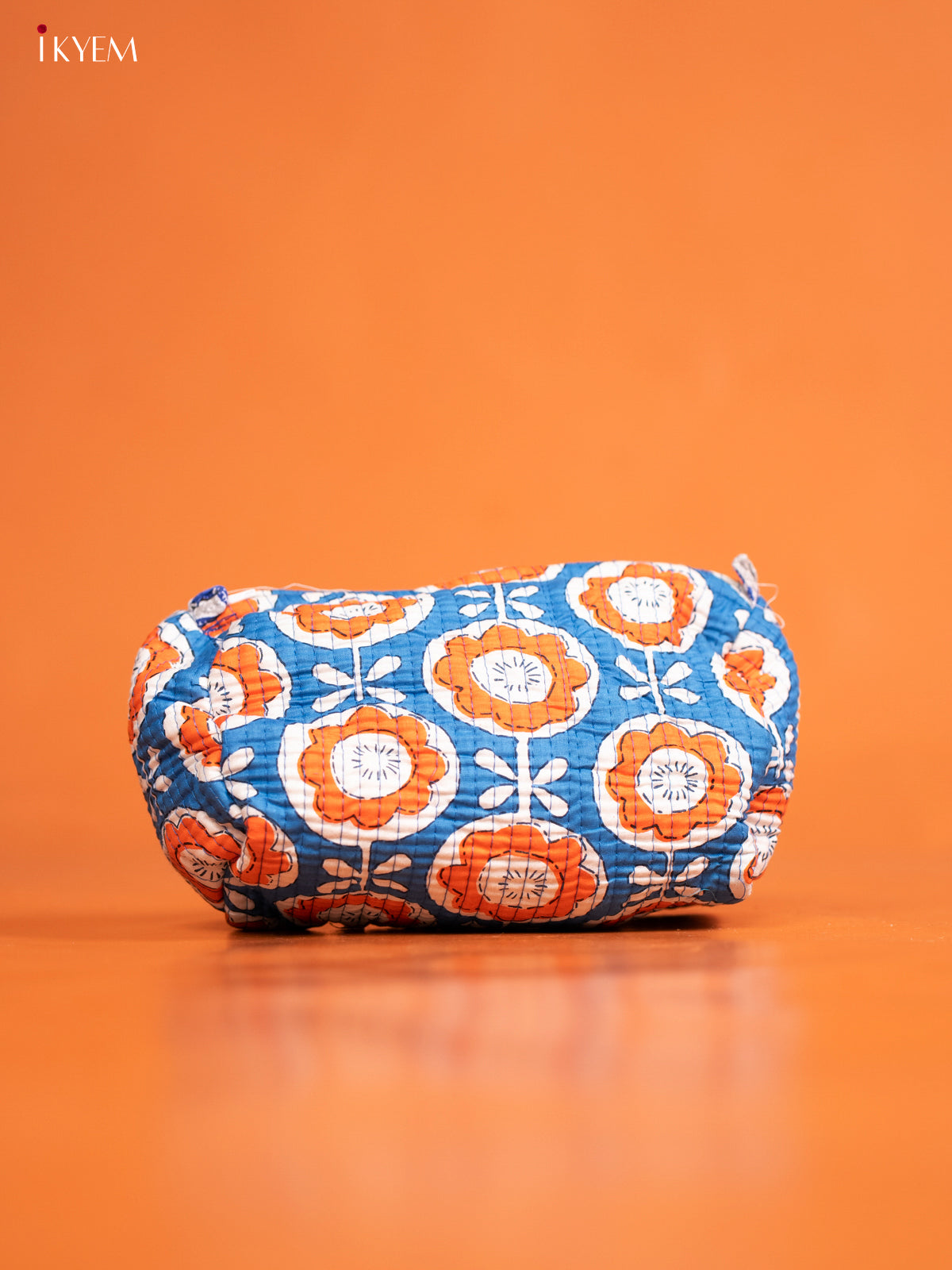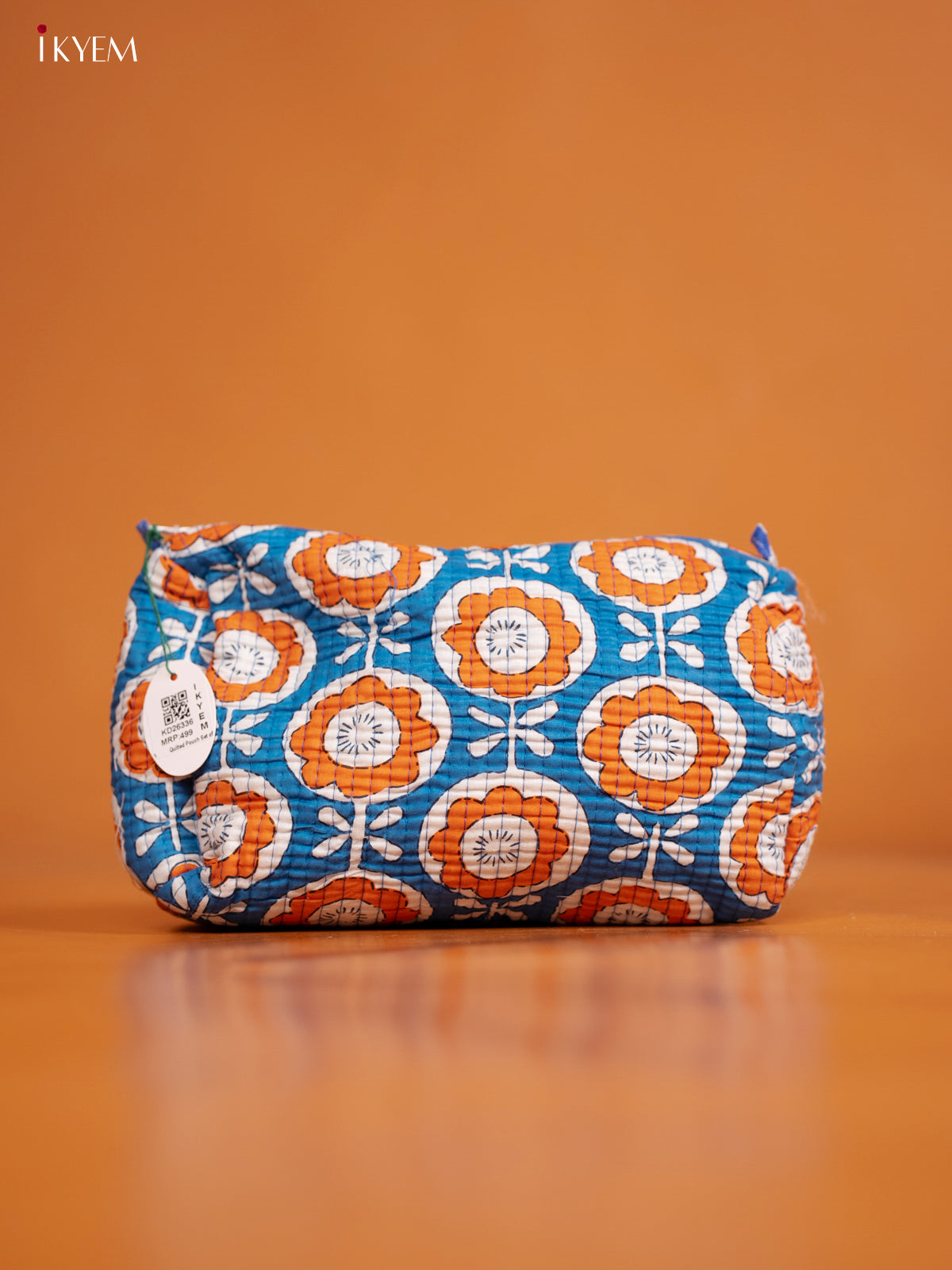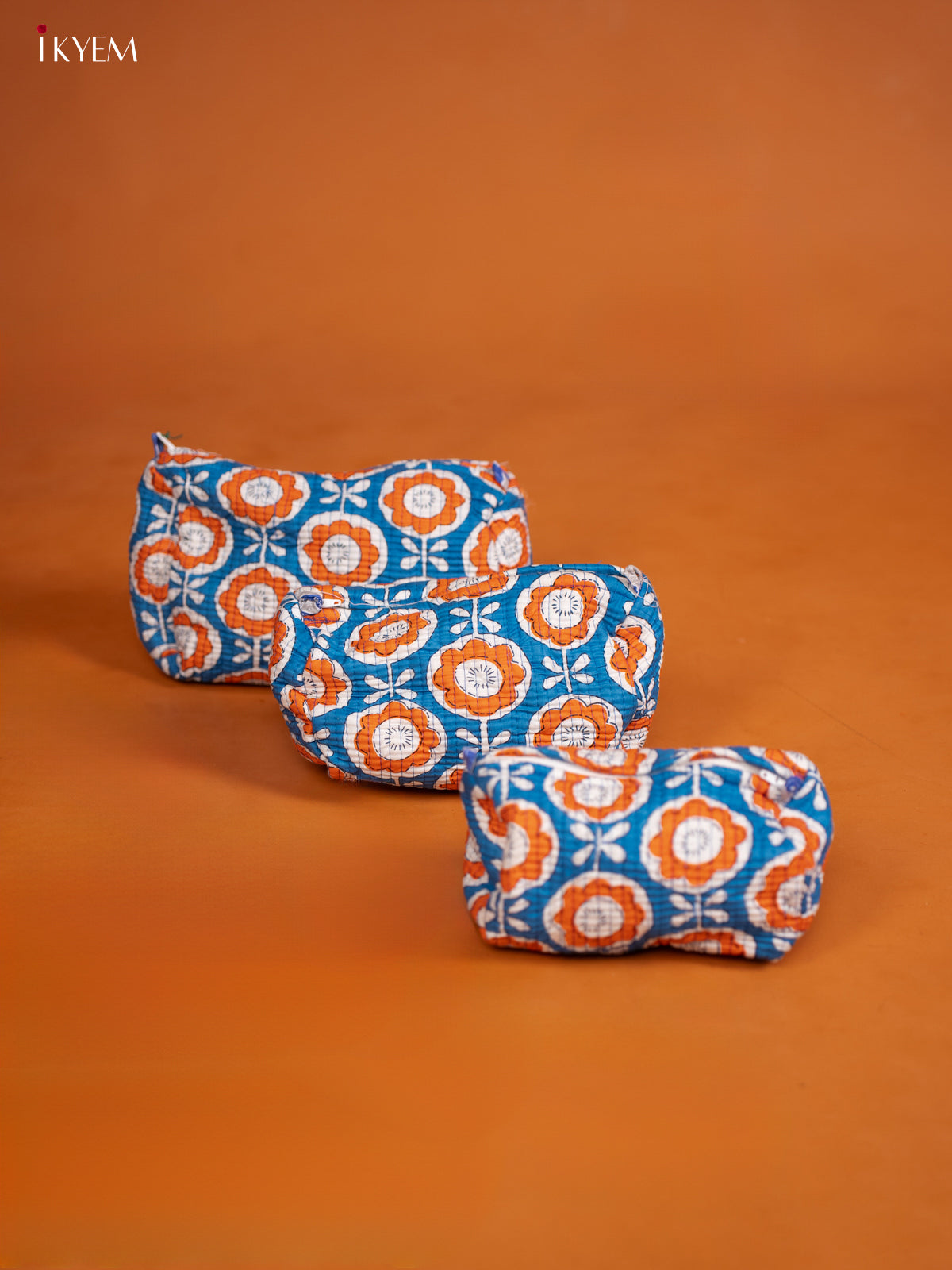 Cotton printed Pouch - Set of 3 - Blue with Orange - KD26336