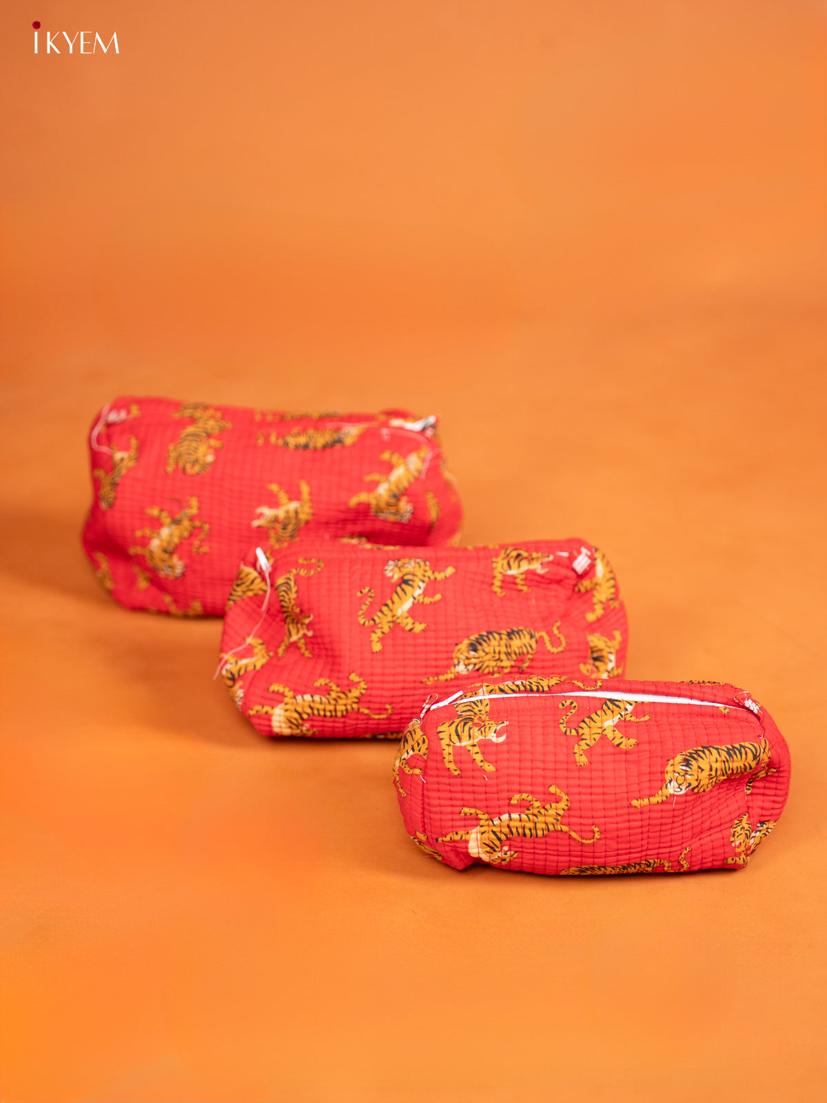 Cotton printed Pouch - Set of 3 - Red - KD26340