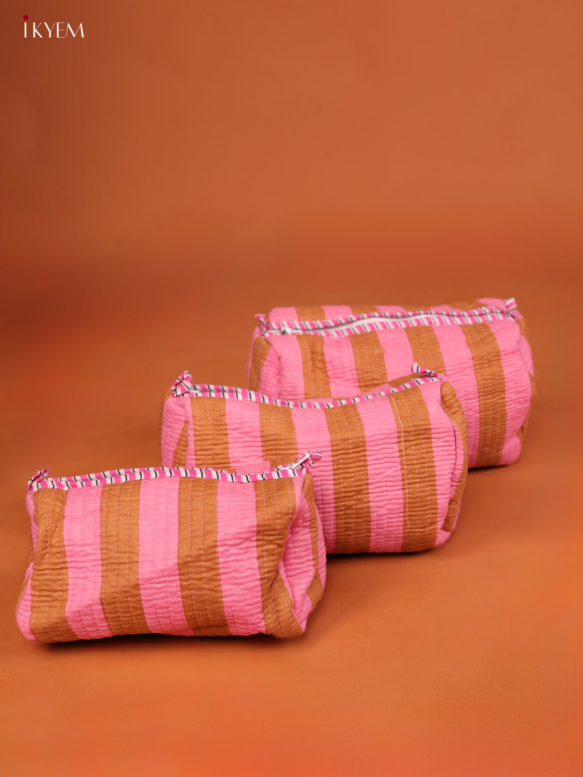 Cotton printed Pouch - Set of 3 - Pink - KD26343