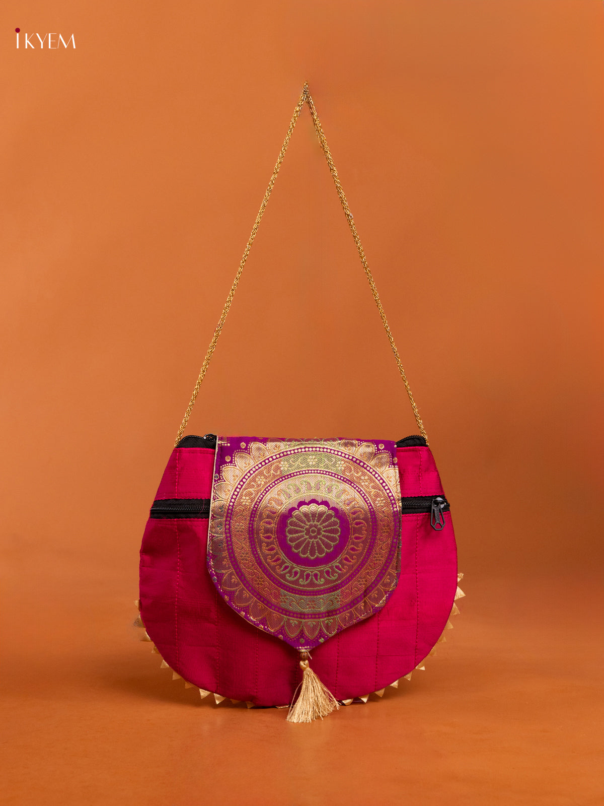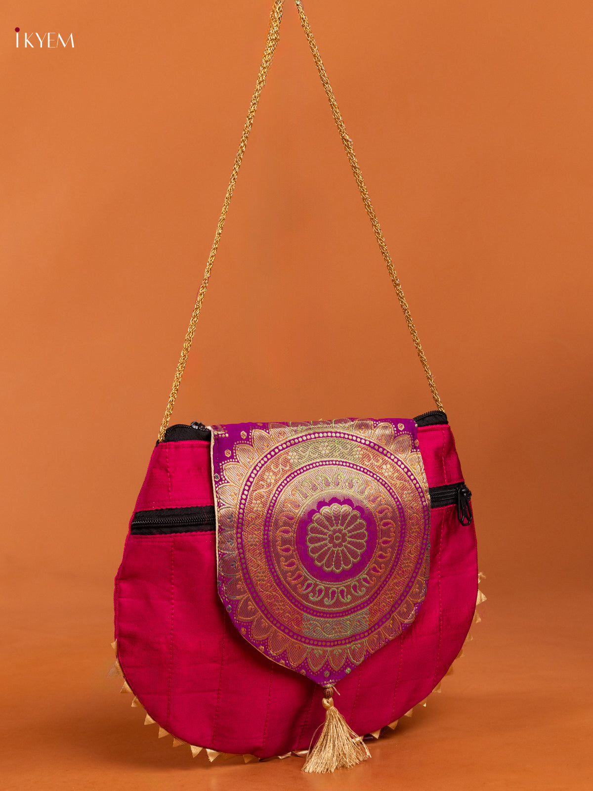 Banarasi Silk Potli Bag Flap with Mandala Design - Purple - KD26413