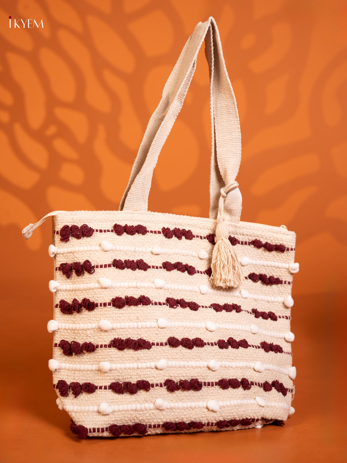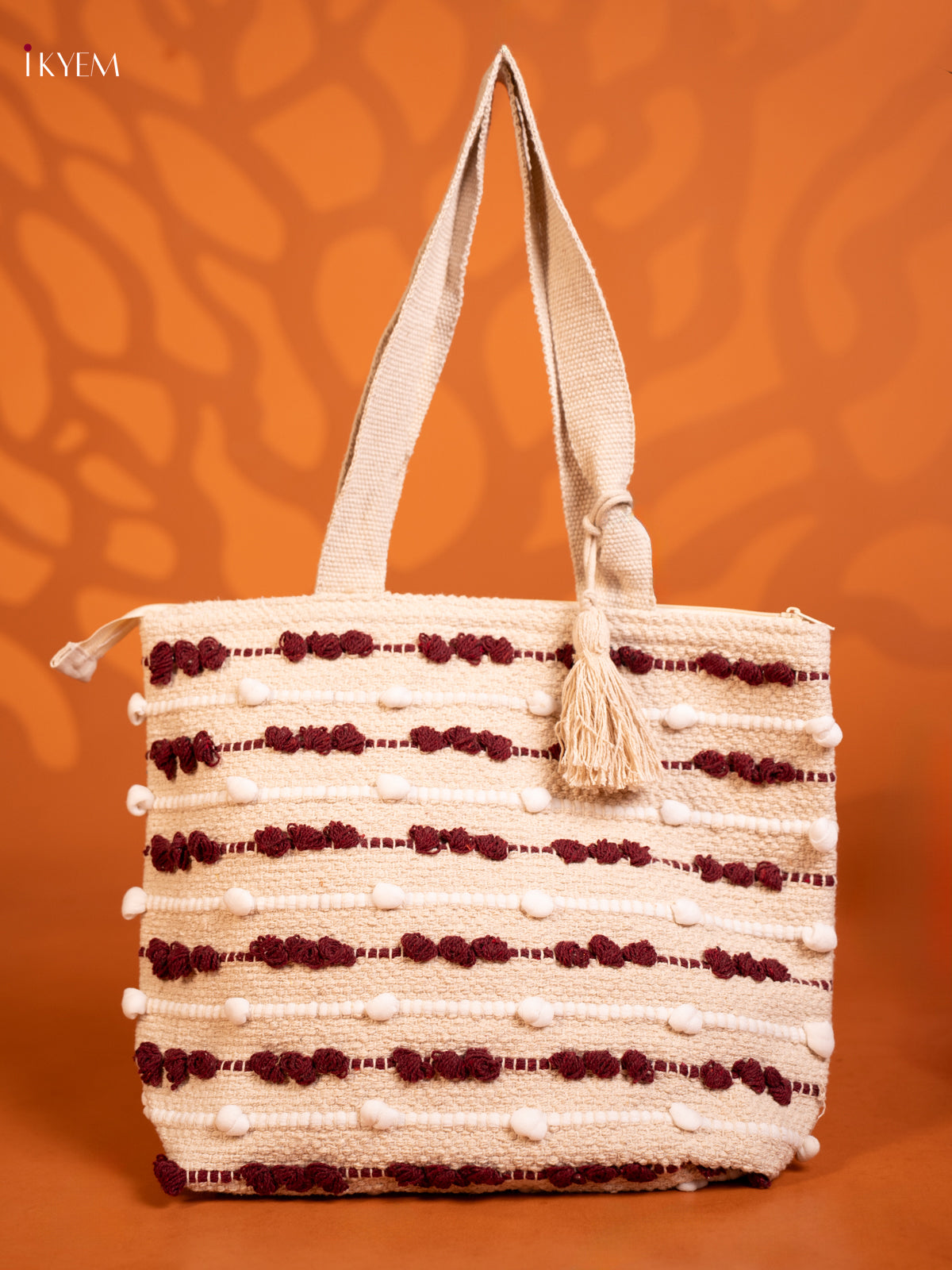 Boho Tote Cloth Bag White With Red