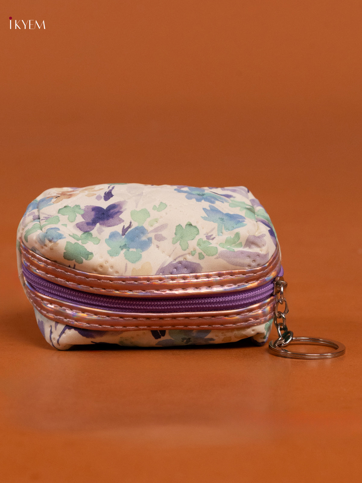 Floral Printed Small Coin Pouch with 1 Compartments - Purple - KD26570