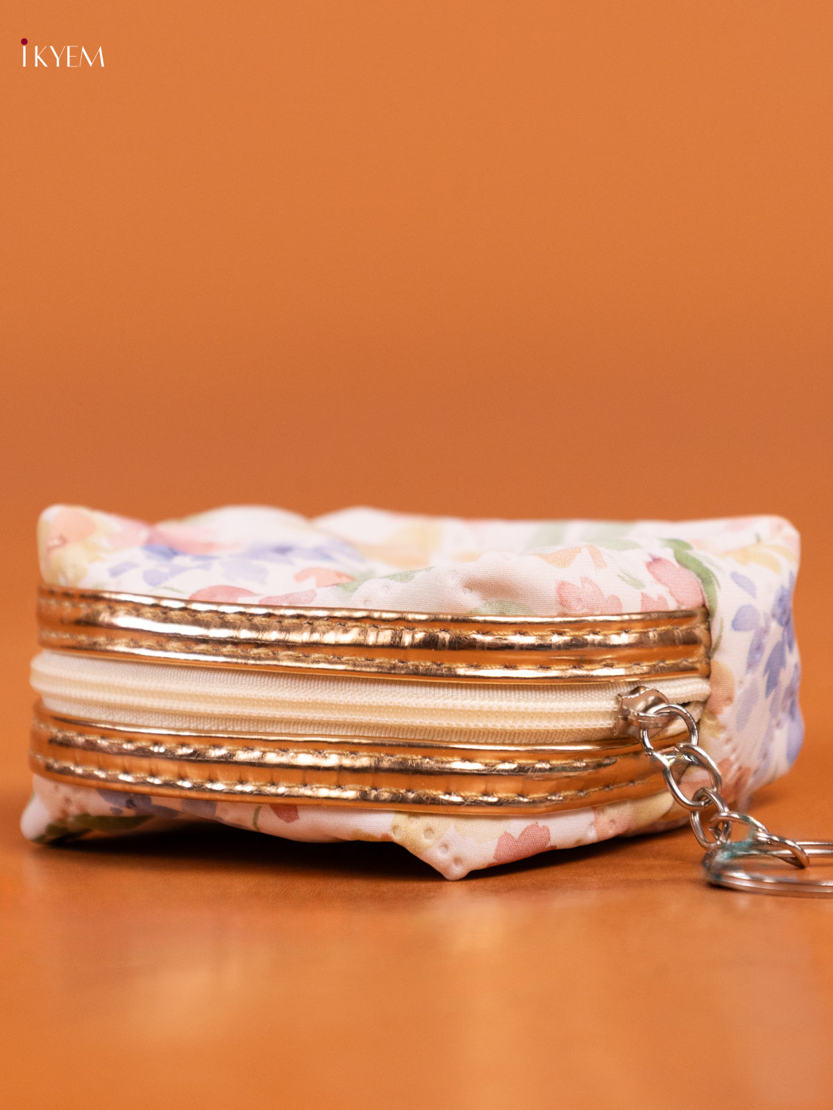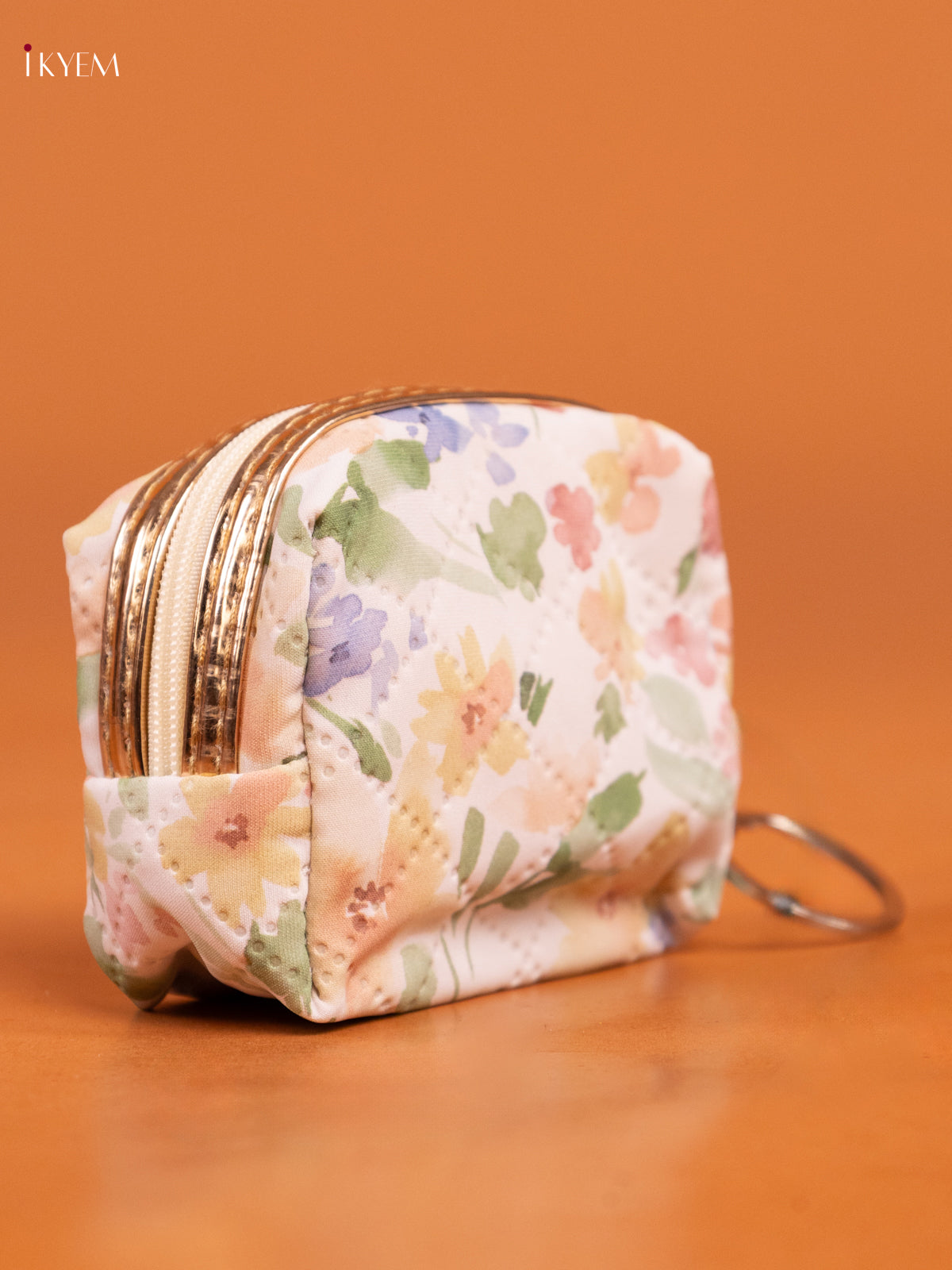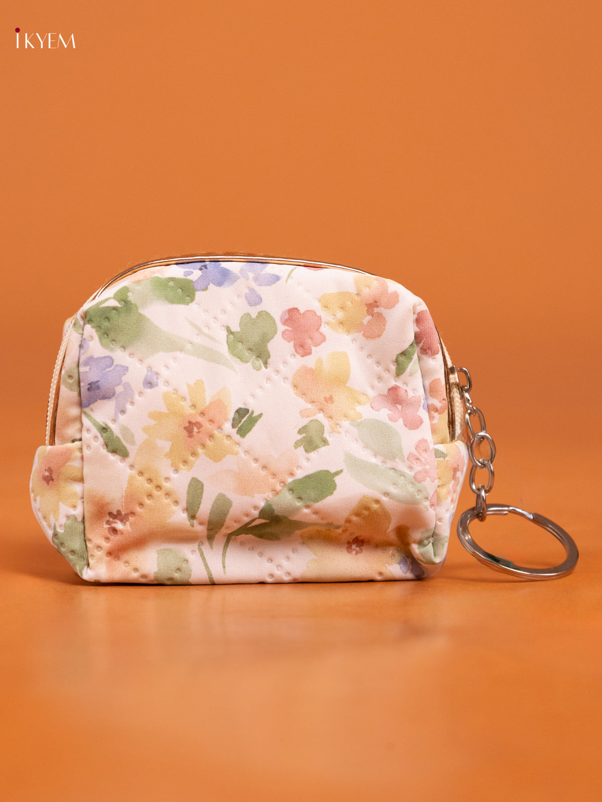 - Compact Cream coin pouch with 2 spacious compartments adorned with floral prints.