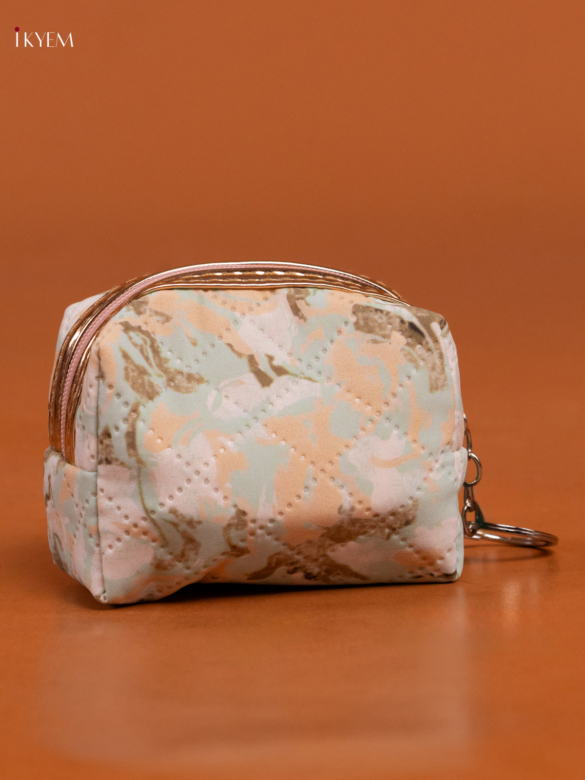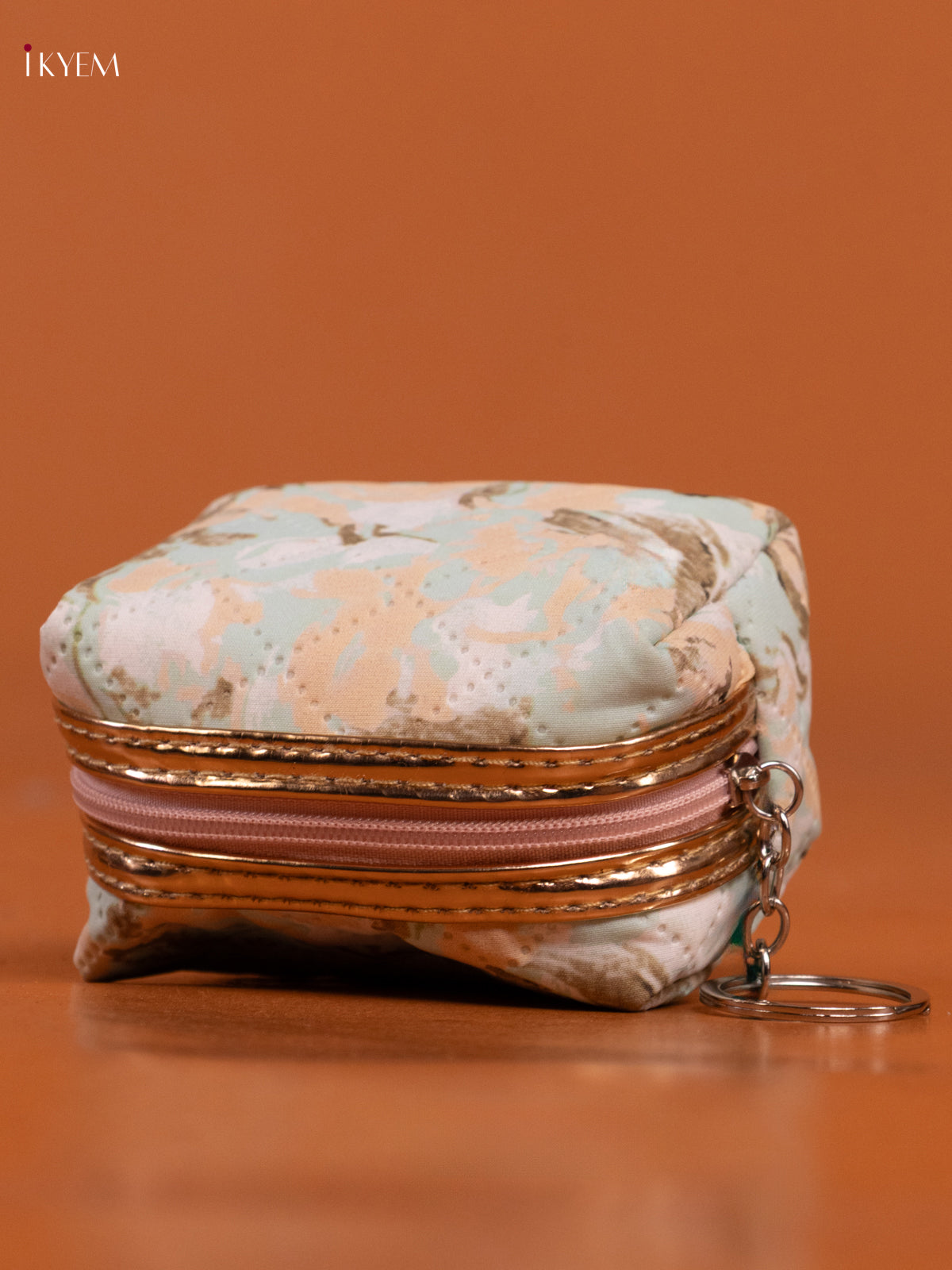 - Compact light green coin pouch with 1 spacious compartment adorned with floral prints.