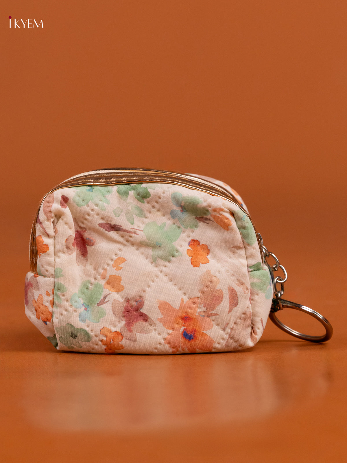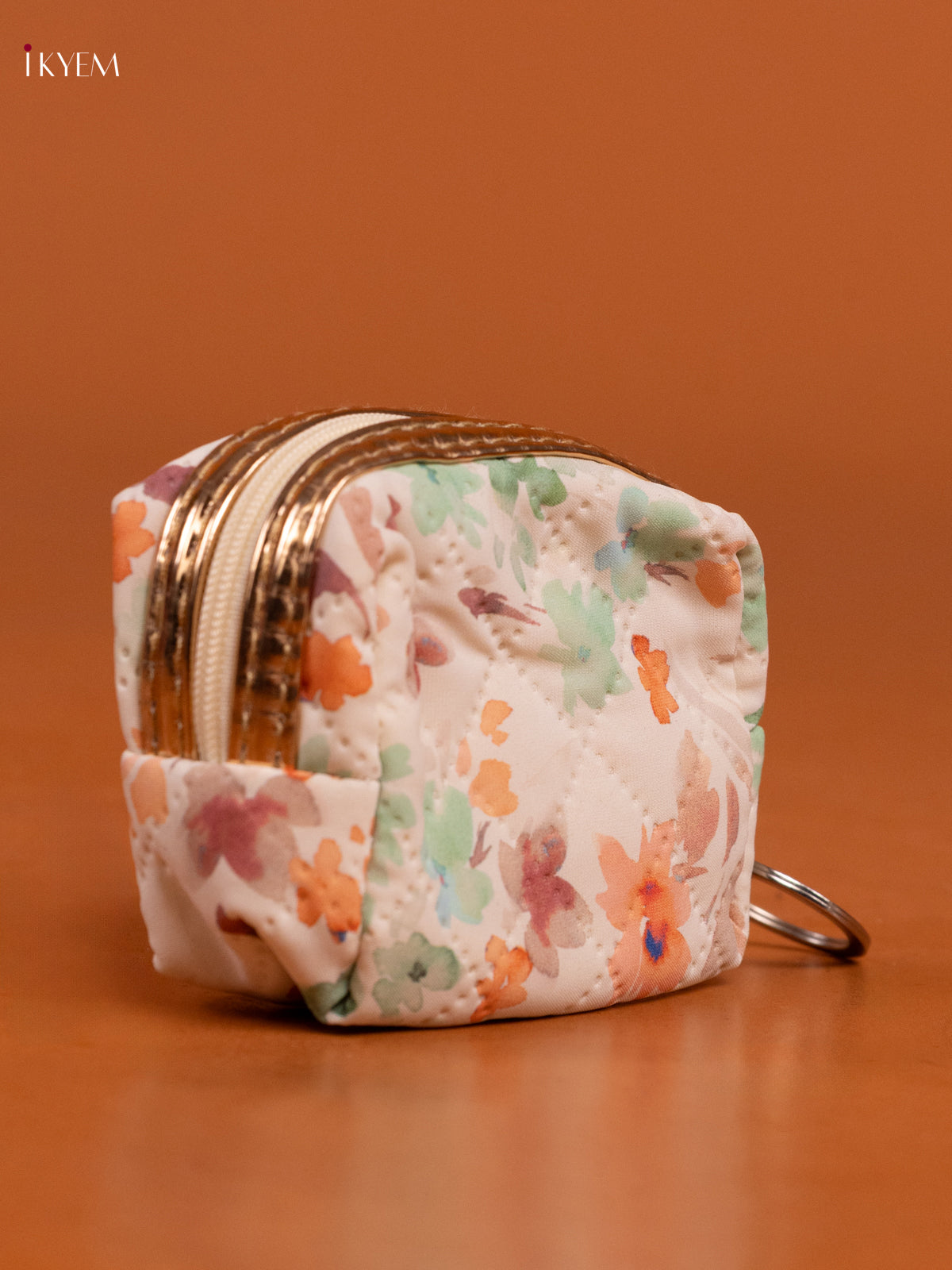 - Compact Orange coin pouch with 2 spacious compartments adorned with floral prints.