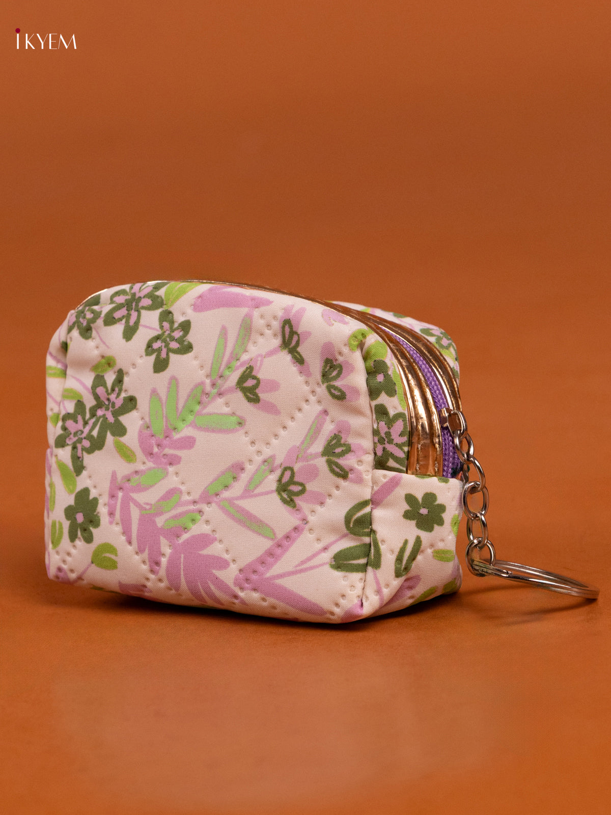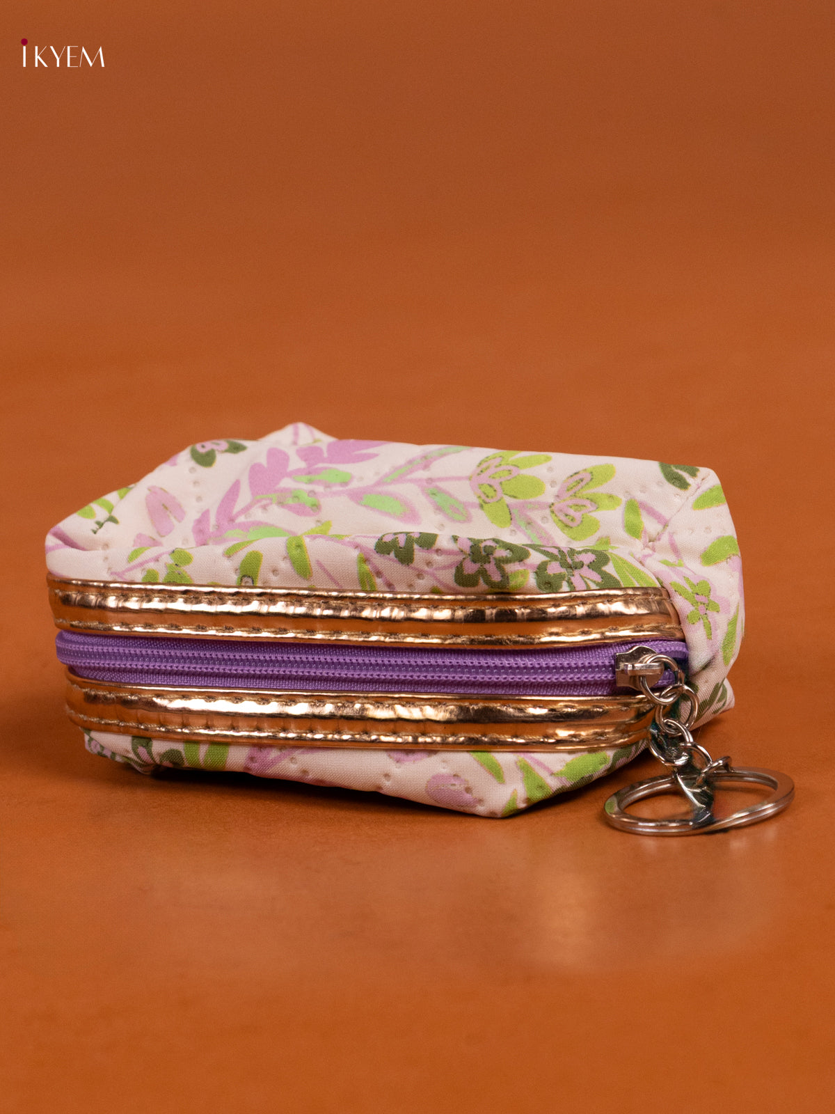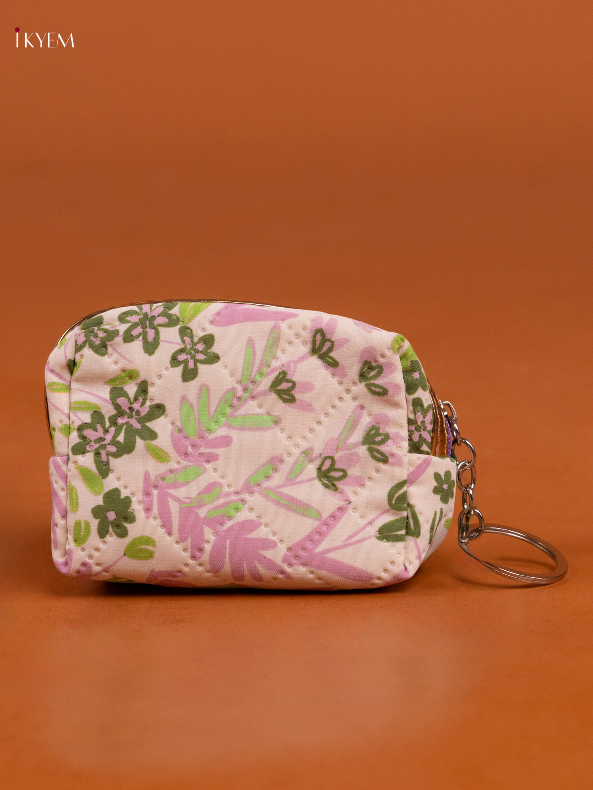 - Compact Cream coin pouch with 1 spacious compartment adorned with floral prints.